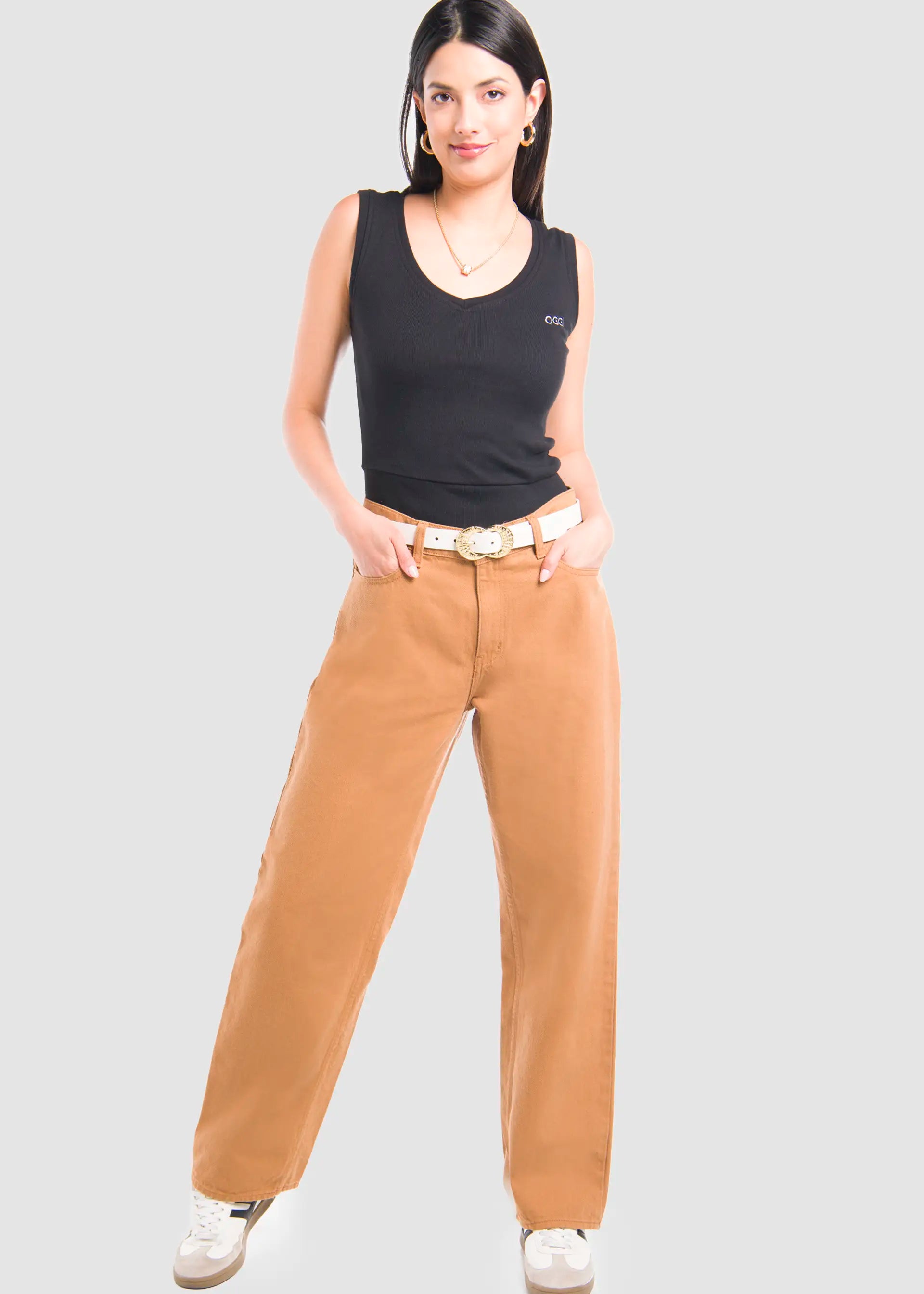 Jeans Amplio Camel para Mujer - Happiness