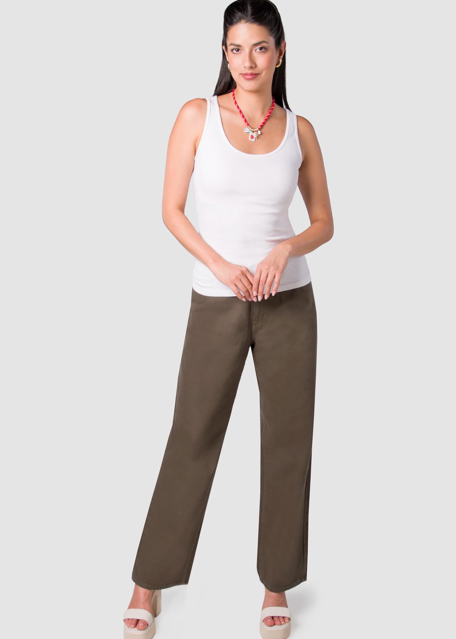 Jeans Amplio Olivo para Mujer - Happiness