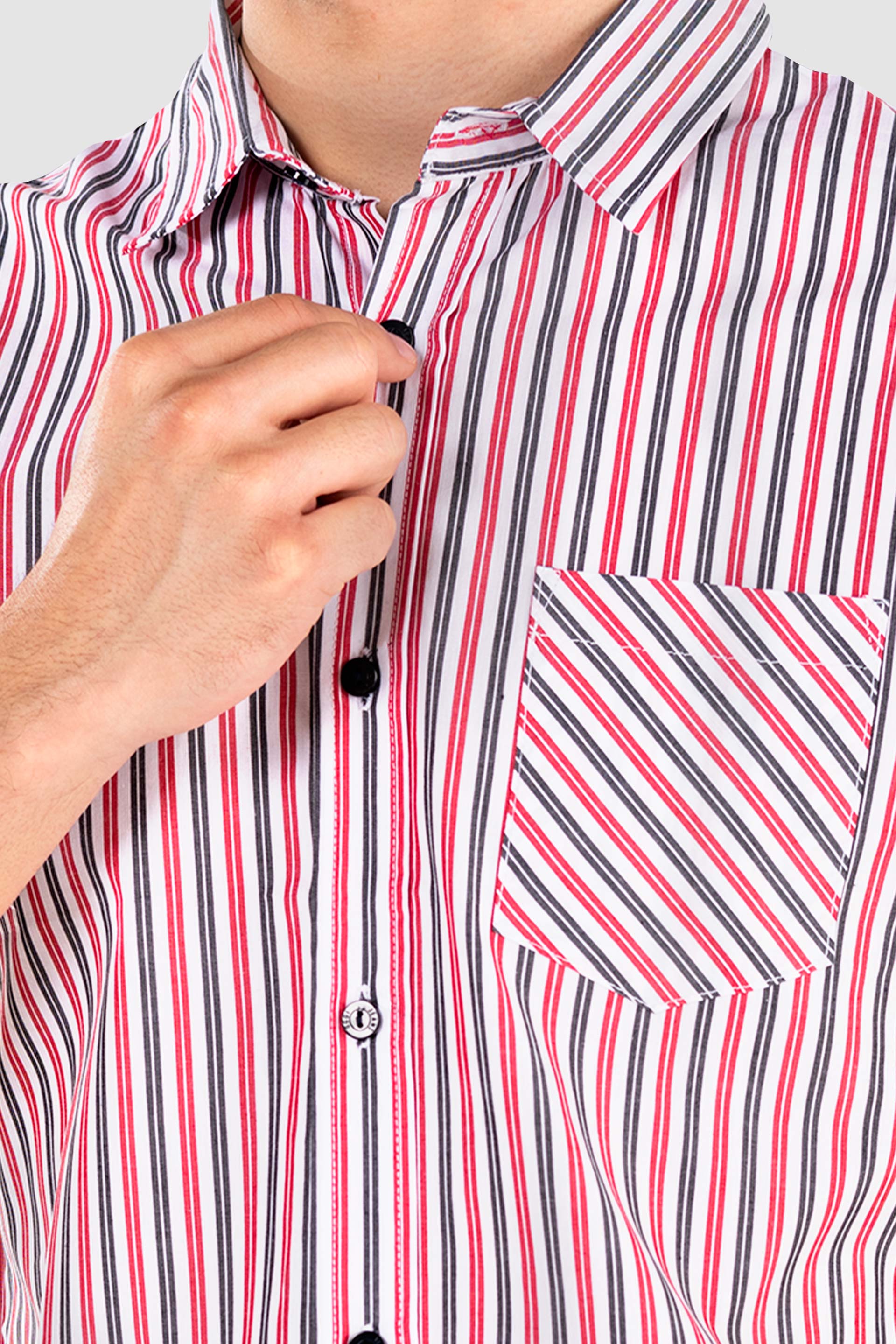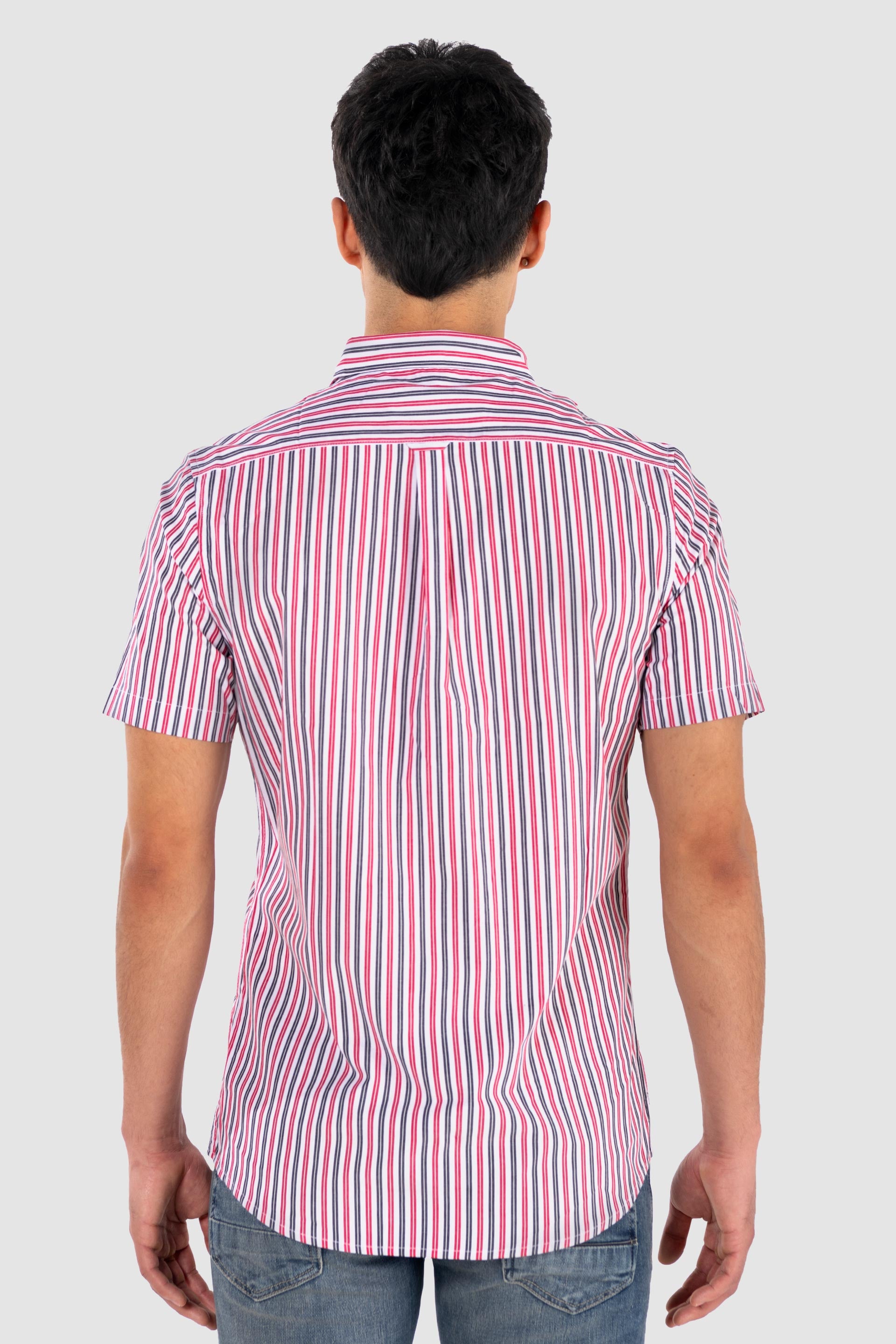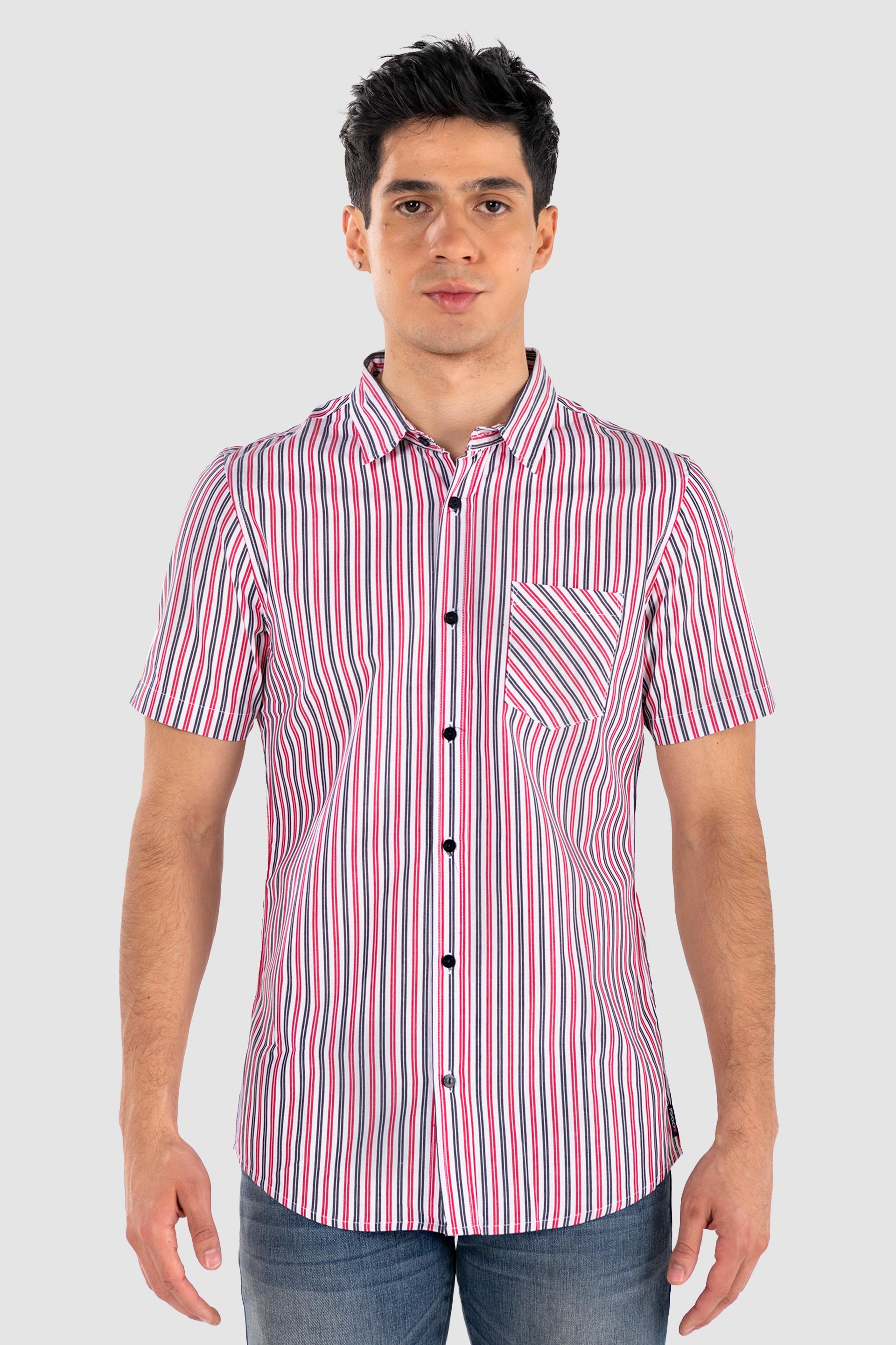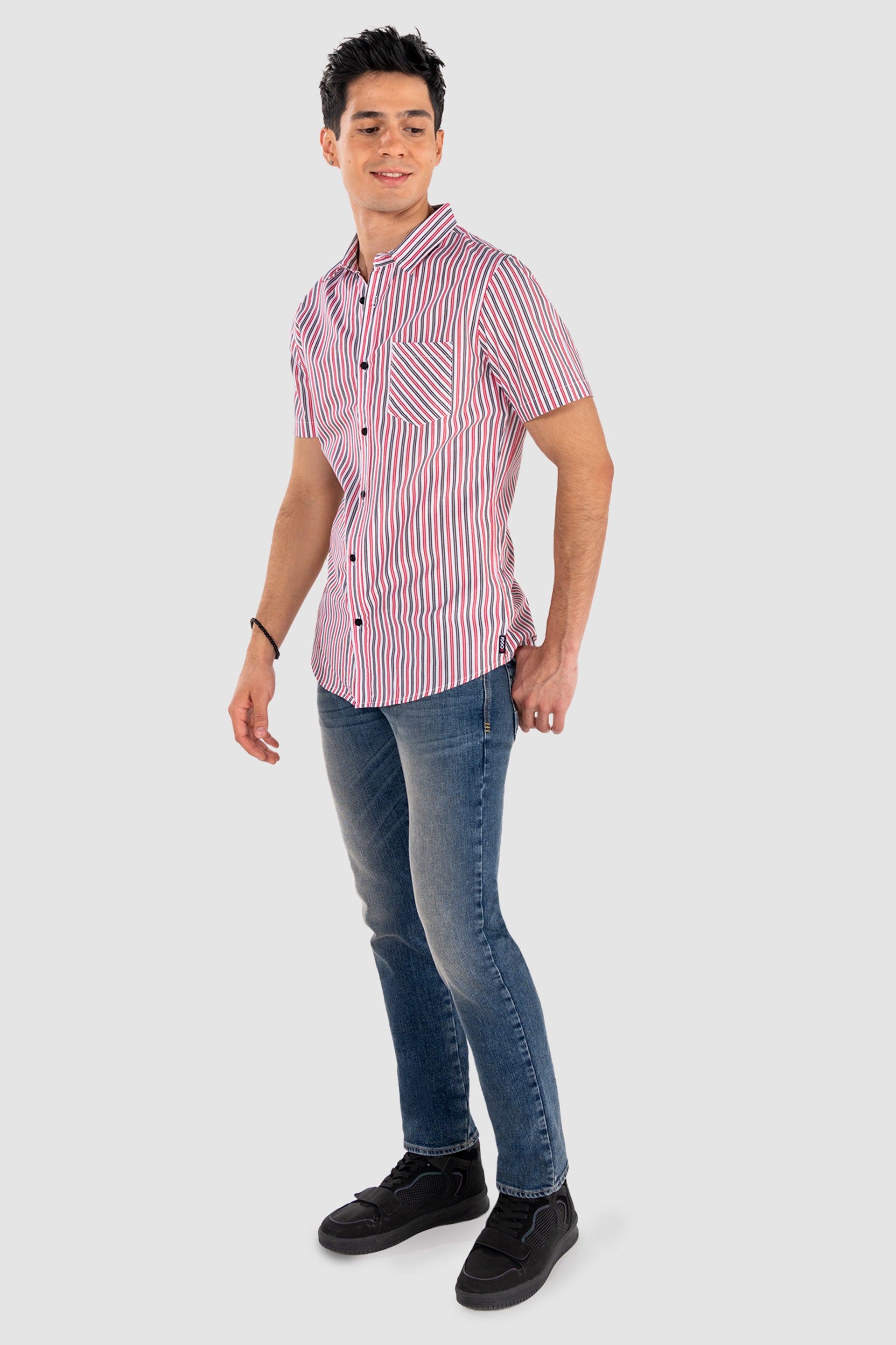 Camisa manga corta Slim Fit, botones de pasta, frente liso y bolsillo en la parte superior izquierda.
