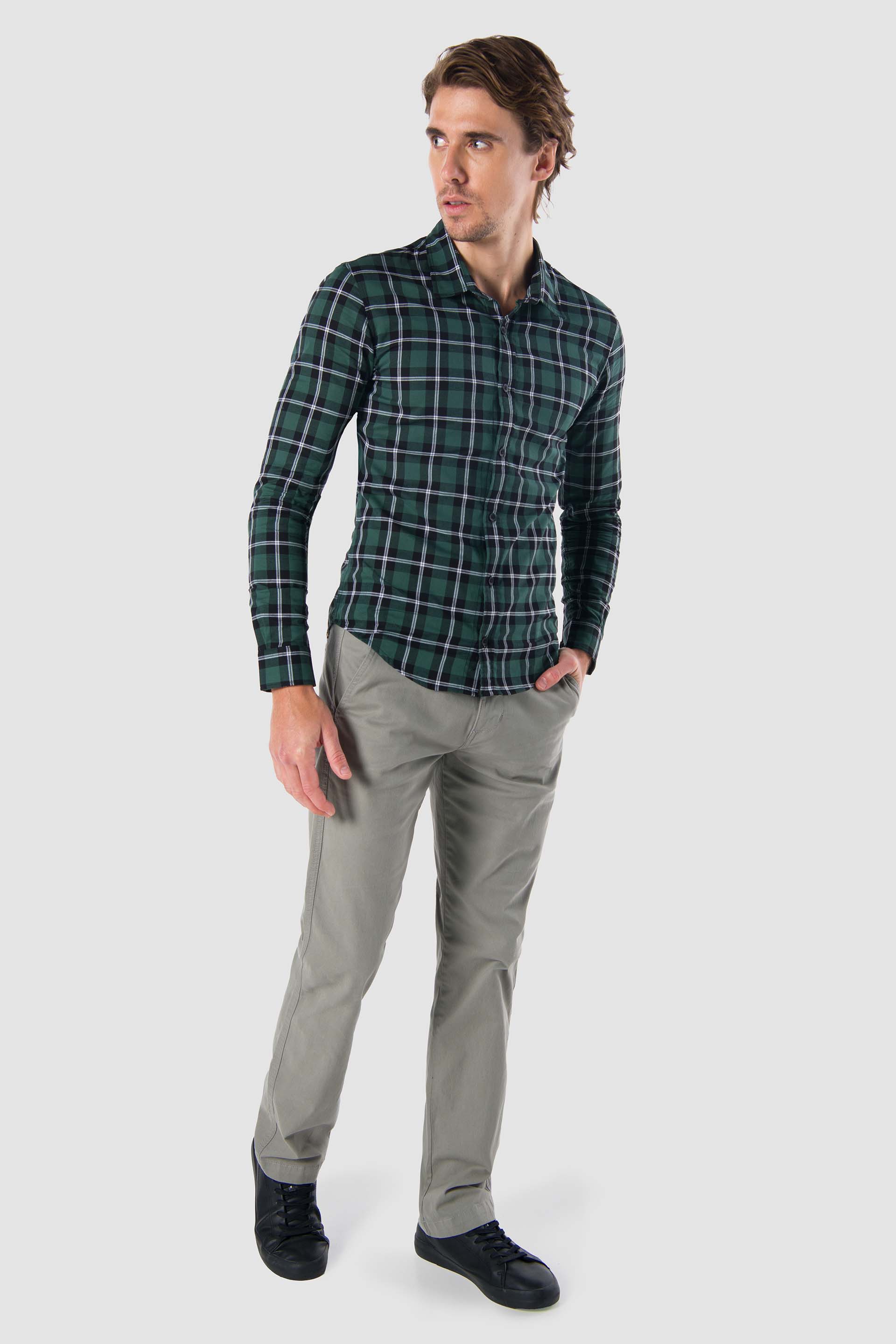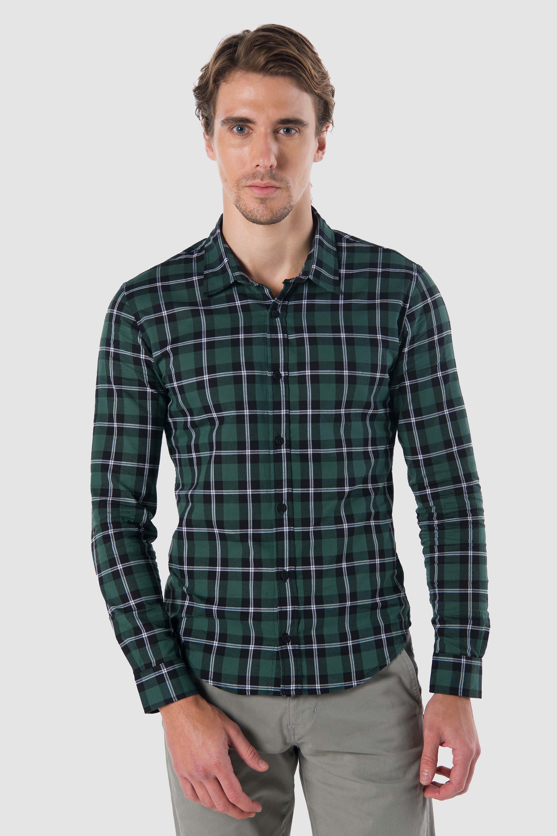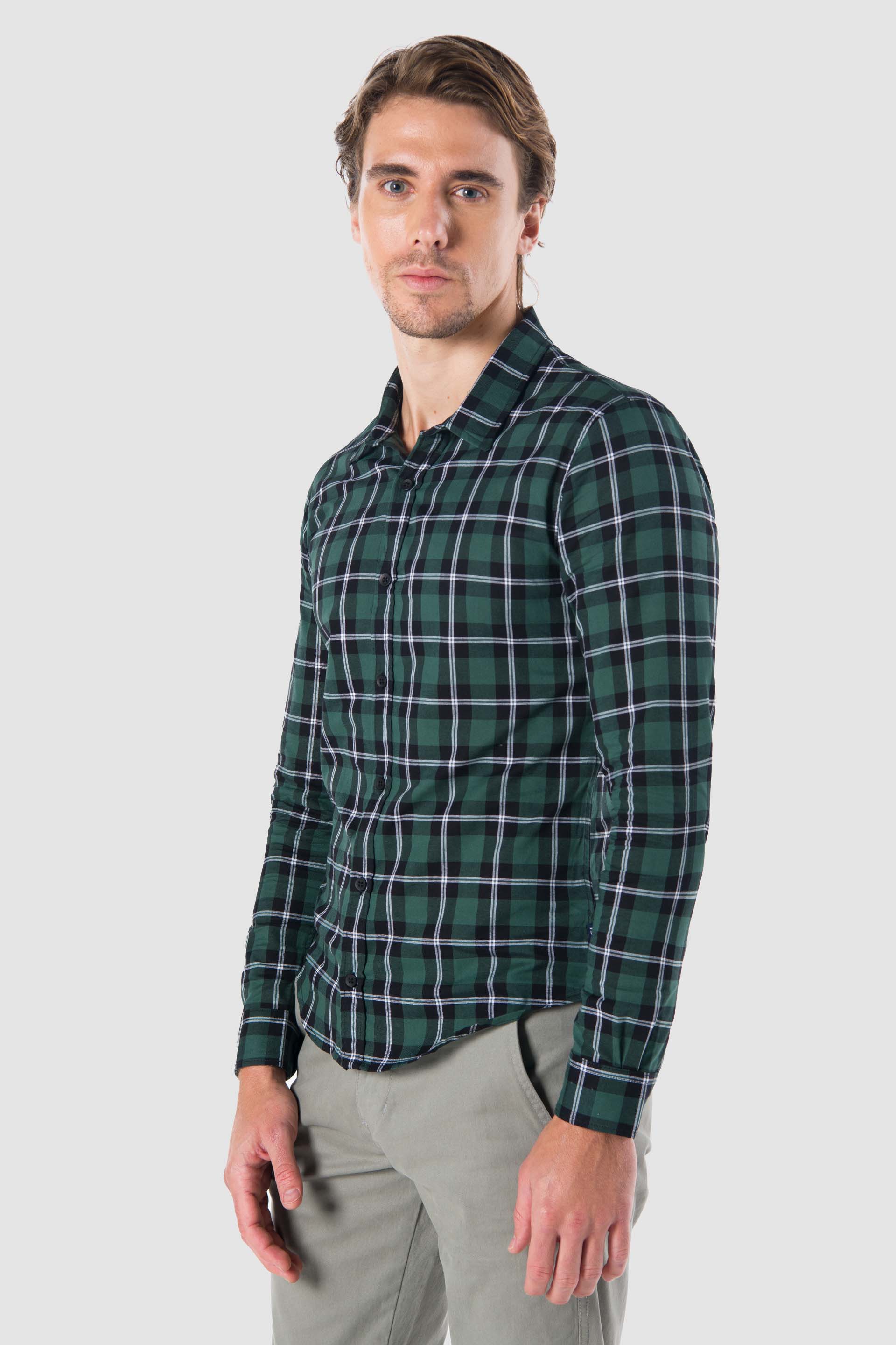 Camisa manga larga Slim Fit, botones de pasta y frente liso.