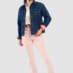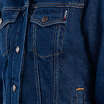 Chamarra Vaquera Fit Regular, botones metálicos, bolsillos frontales con tapa y diagonales e interior capitonado.
