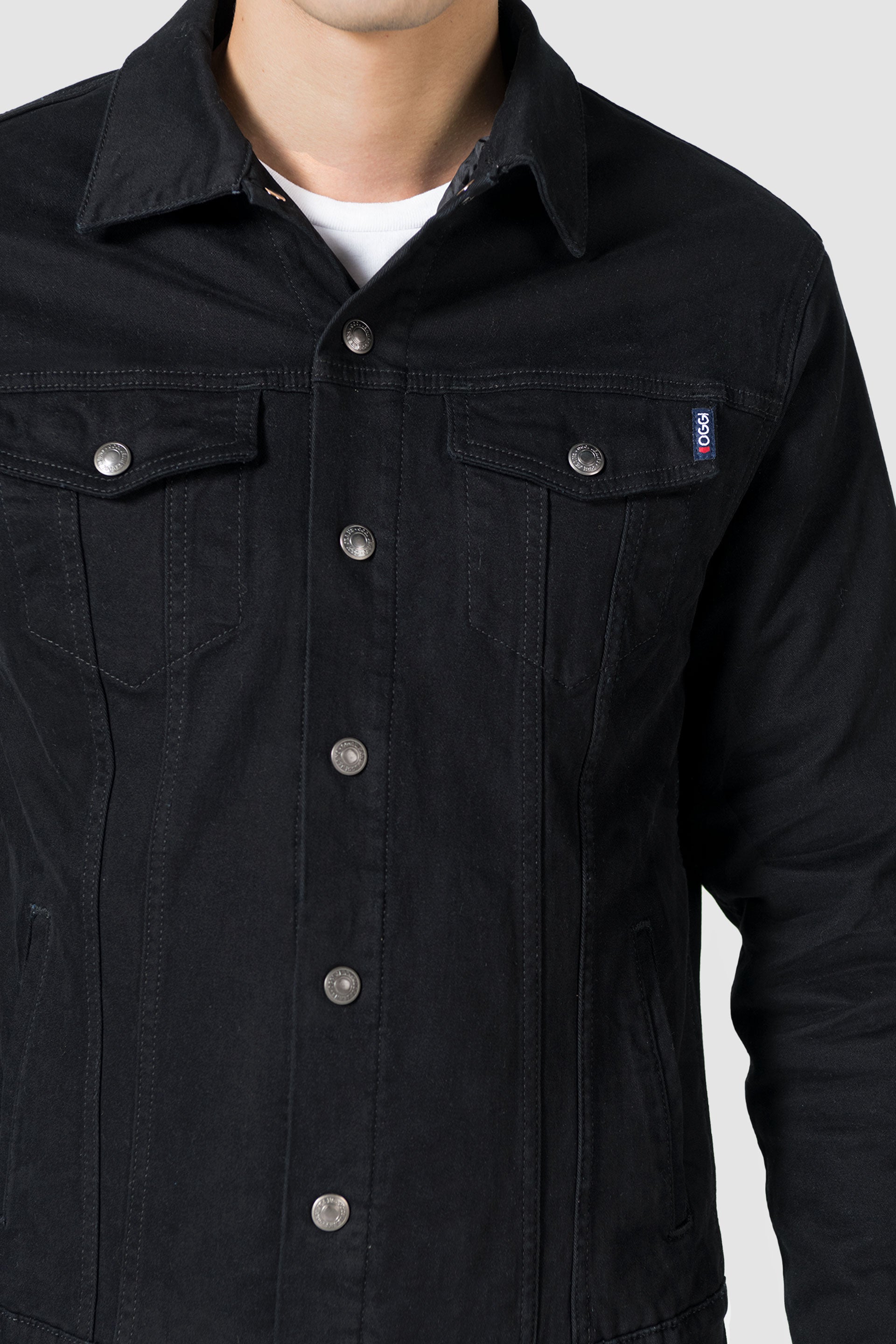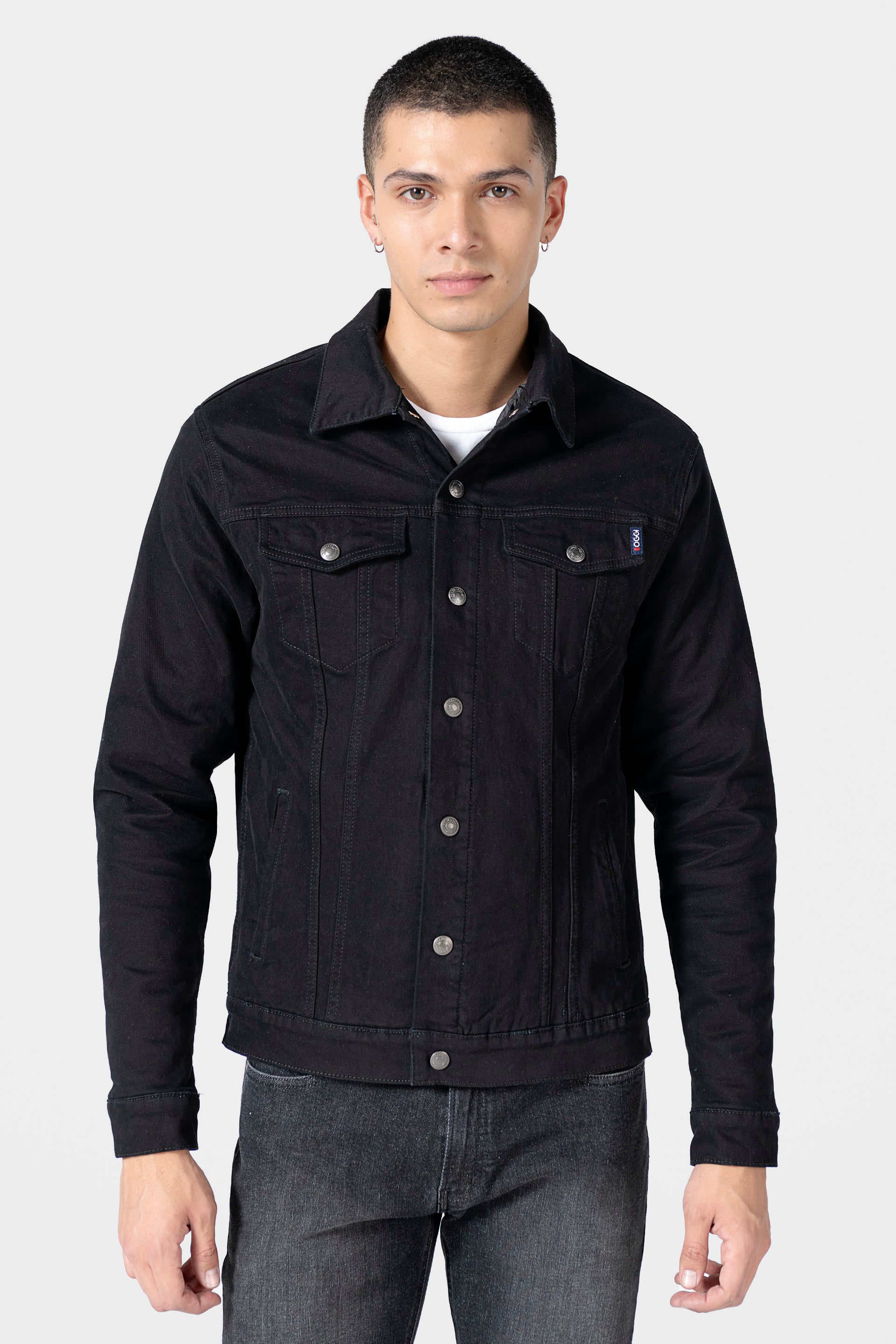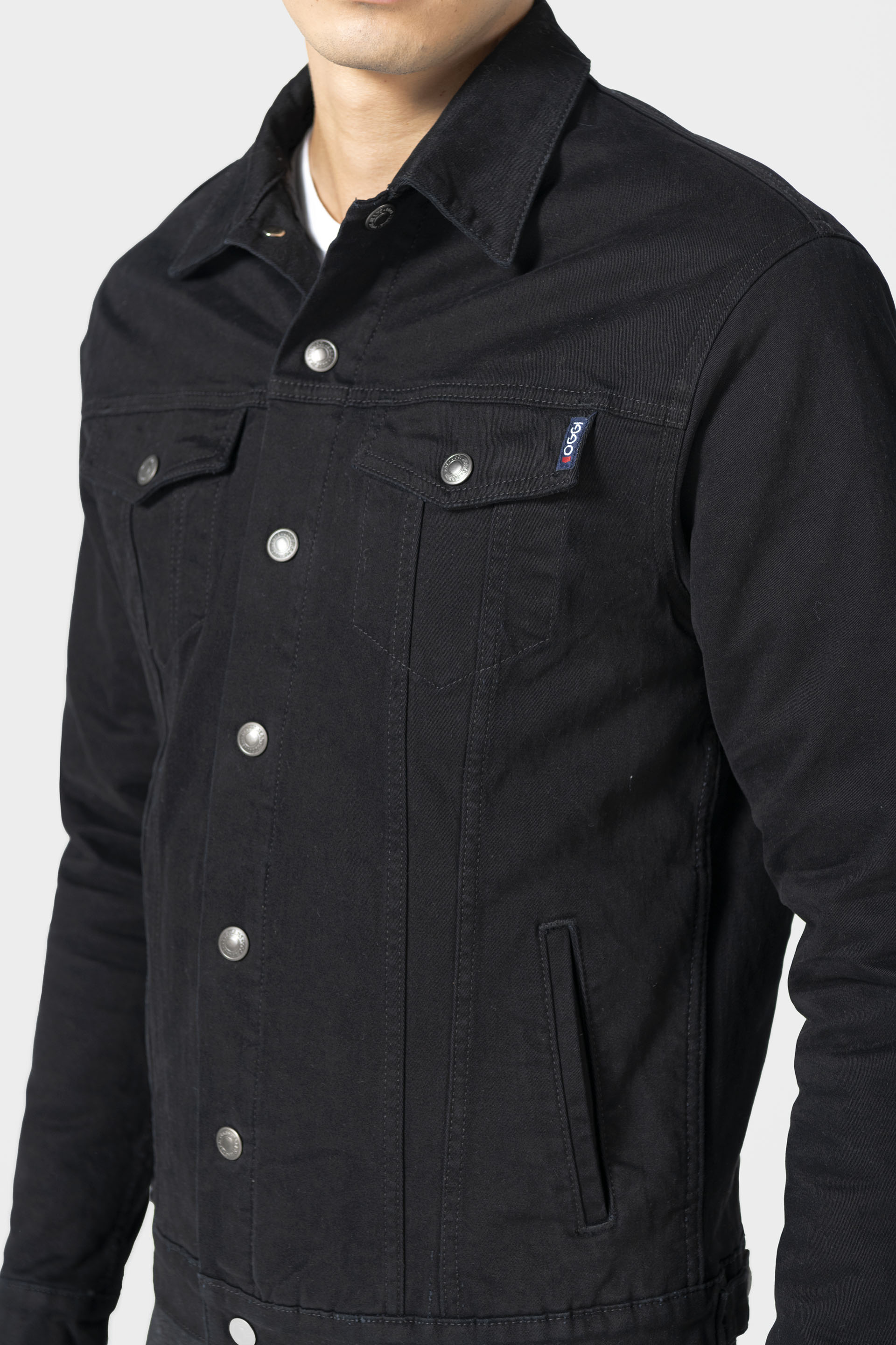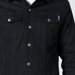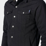 Chamarra Gabardina Fit Slim, botones metálicos, bolsillos frontales con tapa, diagonales, broche ajuste de charretera y capitonado negro.