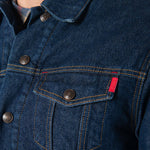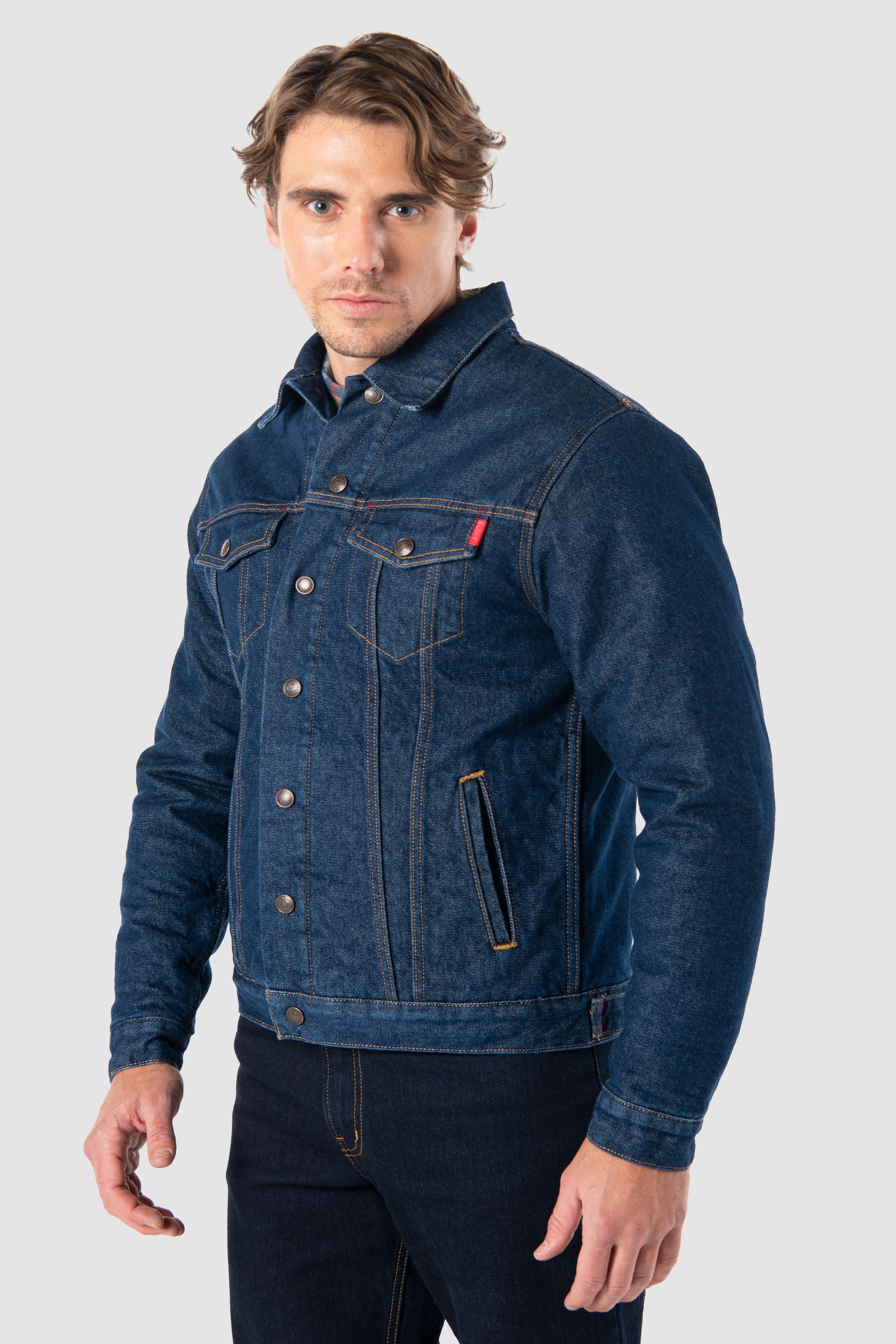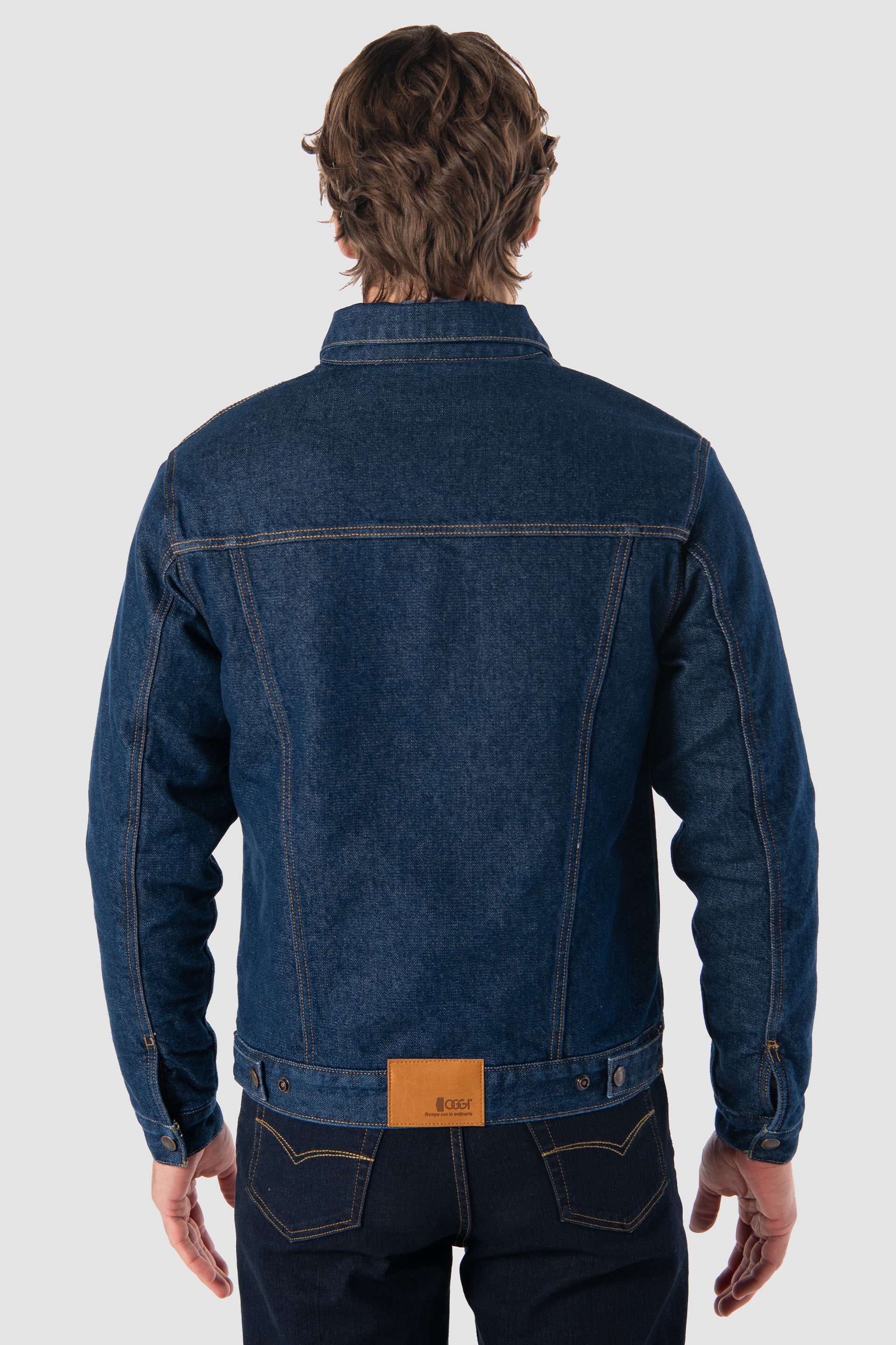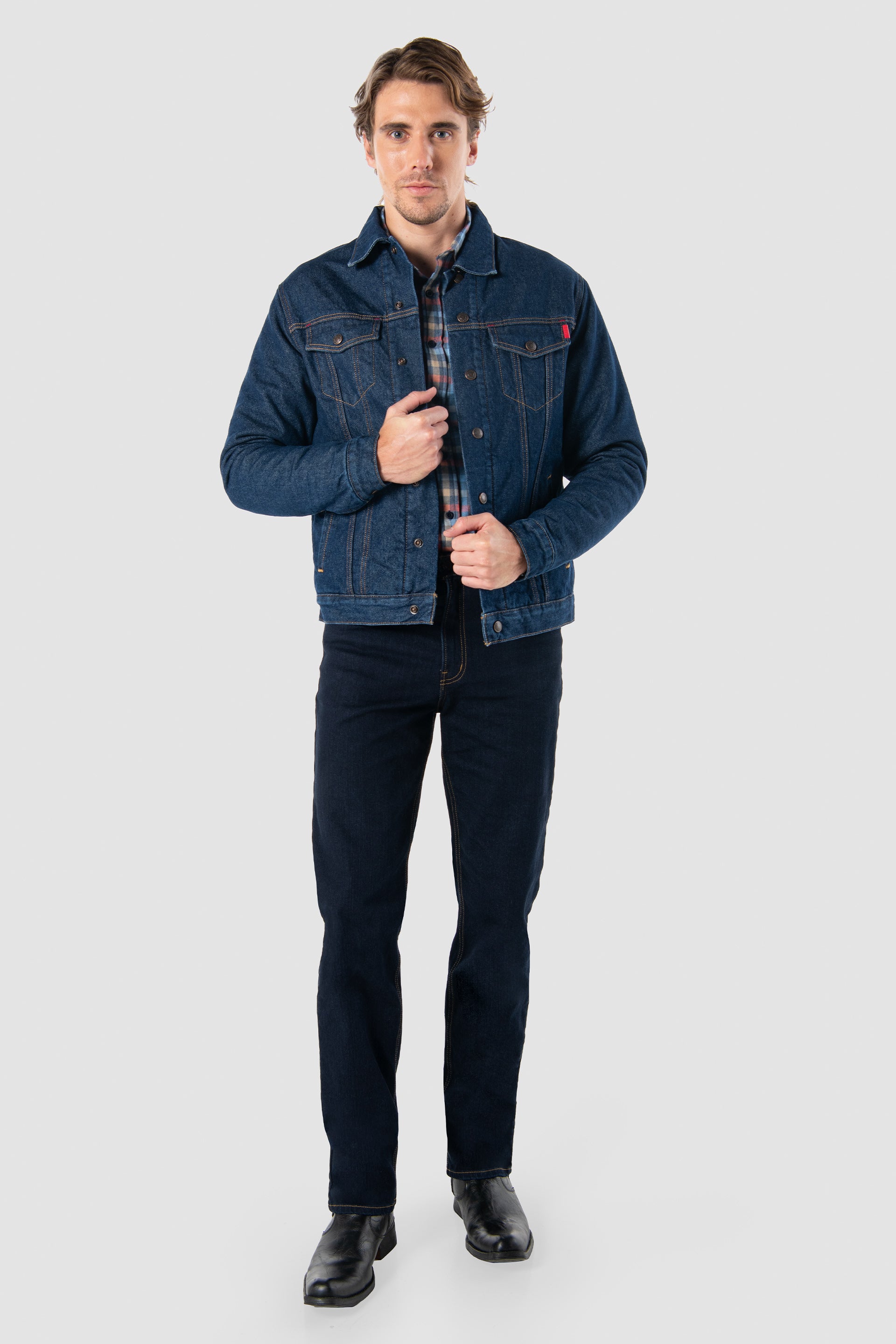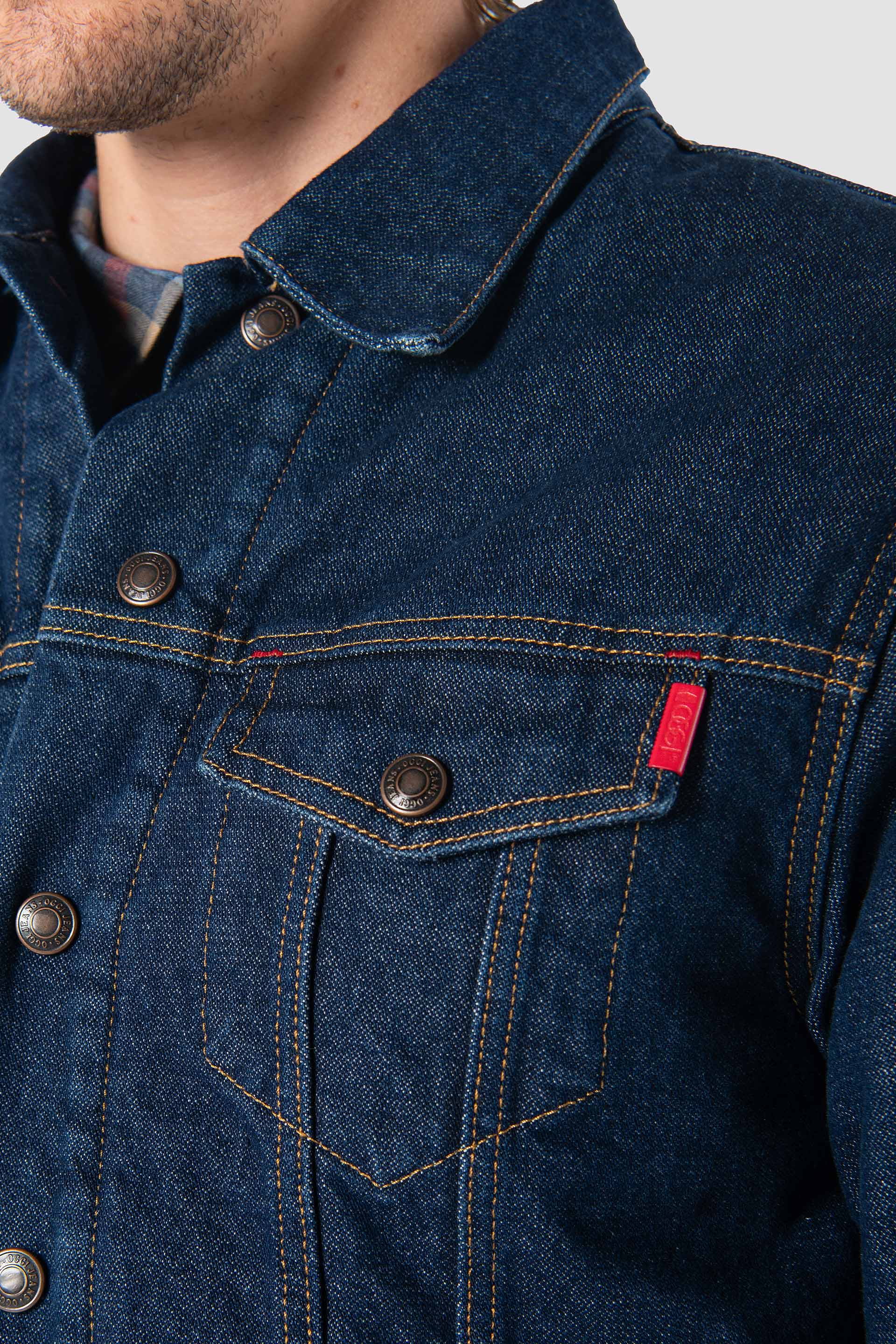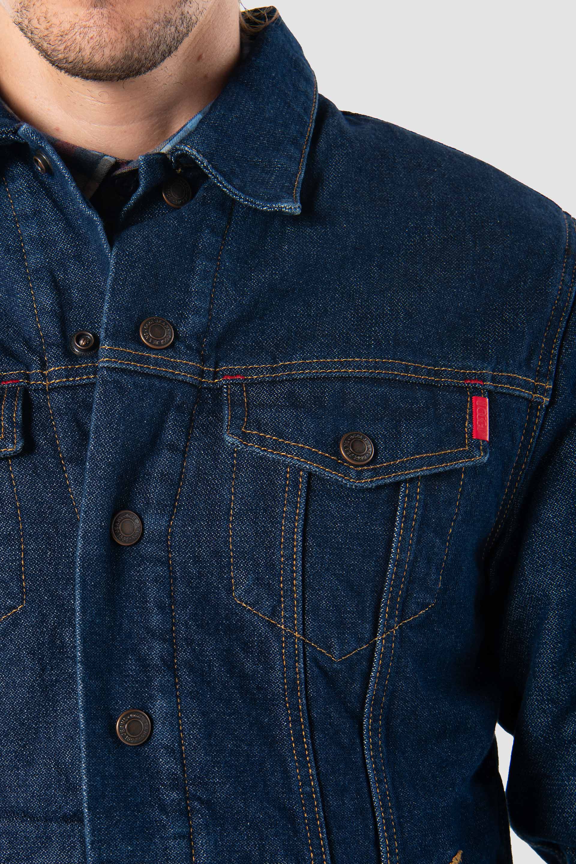 Chamarra Vaquera Fit Regular, botones metálicos, bolsillos frontales con tapa y diagonales e interior capitonado.