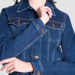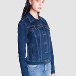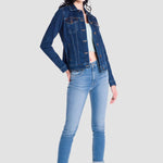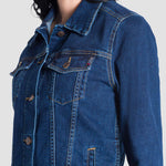 Chamarra Vaquera Slim Fit, botones metálicos, bolsillos diagonales y bolsillos frontales con tapa.