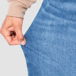 En cuanto a su confección, están elaborados en mezclilla stretch con fibra Repreve, un material reciclado que contribuye al cuidado del medio ambiente. Además, su composición de 77% algodón, 22% poliéster y 1% elastano ofrece suavidad y resistencia, permitiendo moverte con libertad sin perder la forma del jean. Por esta razón, resultan cómodos durante toda la jornada.