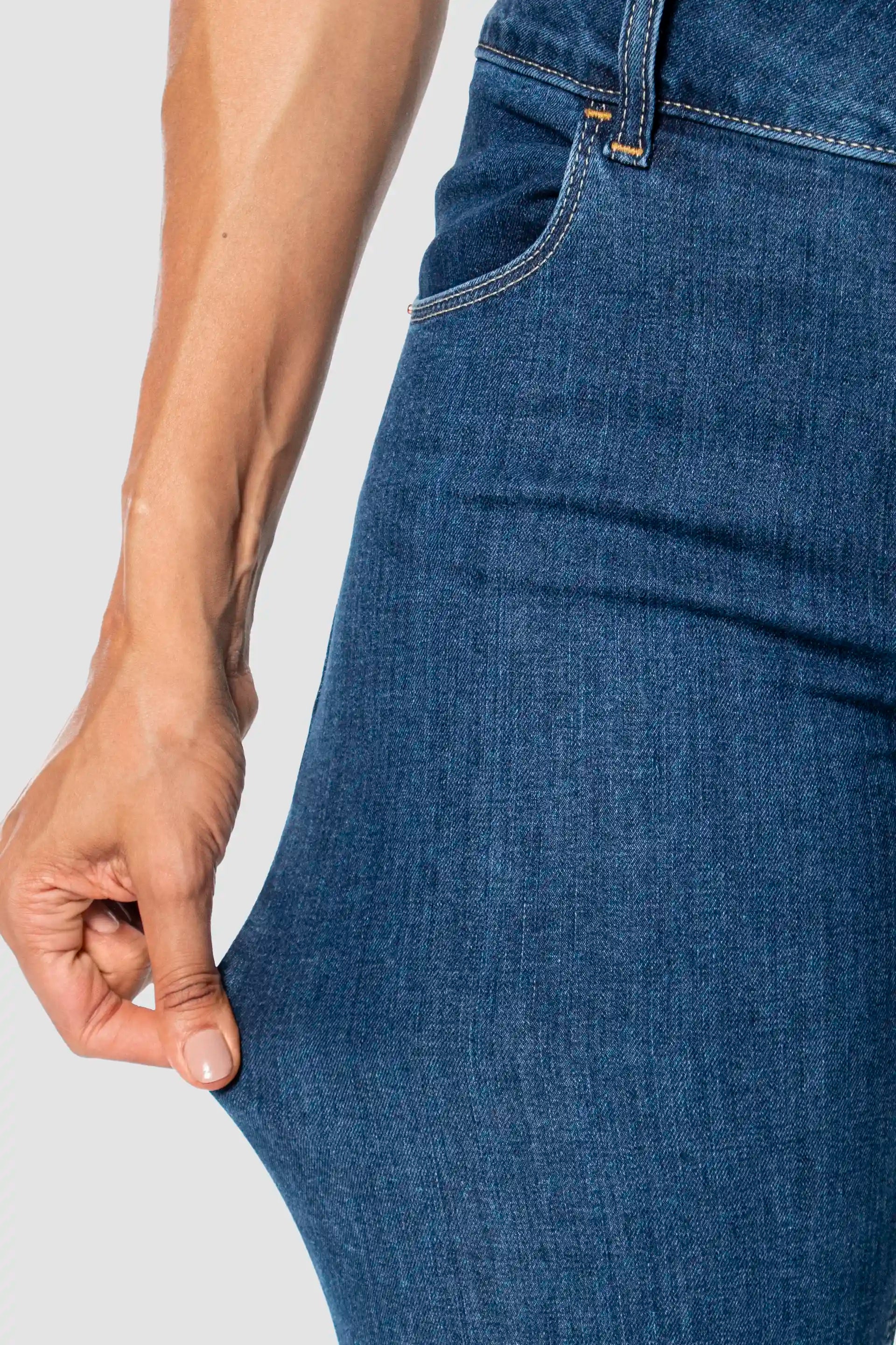 Confeccionados en mezclilla stretch, estos jeans brindan comodidad y libertad al moverte. Gracias a su composición de 87% algodón, 11% poliéster y 2% lycra, la tela se ajusta suavemente sin perder firmeza. Por otra parte, la cintura súper alta ayuda a definir la figura, mientras que el corte ajustado en la parte superior aporta un ajuste favorecedor.
