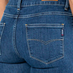 Asimismo, los detalles funcionales elevan su diseño. Cuenta con cinco bolsillos prácticos para el uso diario. Los remaches en los bolsillos delanteros refuerzan su estilo clásico, mientras que los bolsillos traseros con bordado añaden identidad. Finalmente, la etiqueta sintética en la pretina completa el acabado.