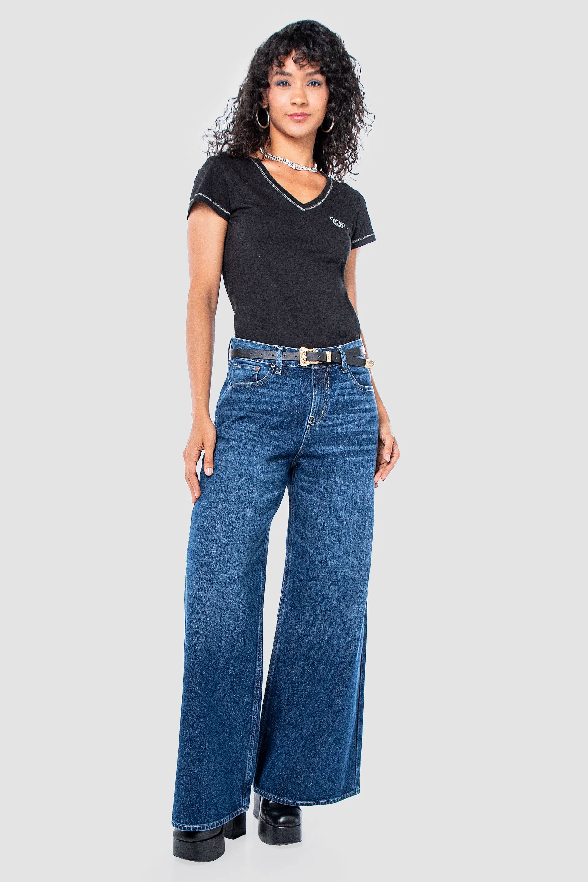 Corte Wide Leg Amplio que brinda una silueta moderna y con movimiento.
