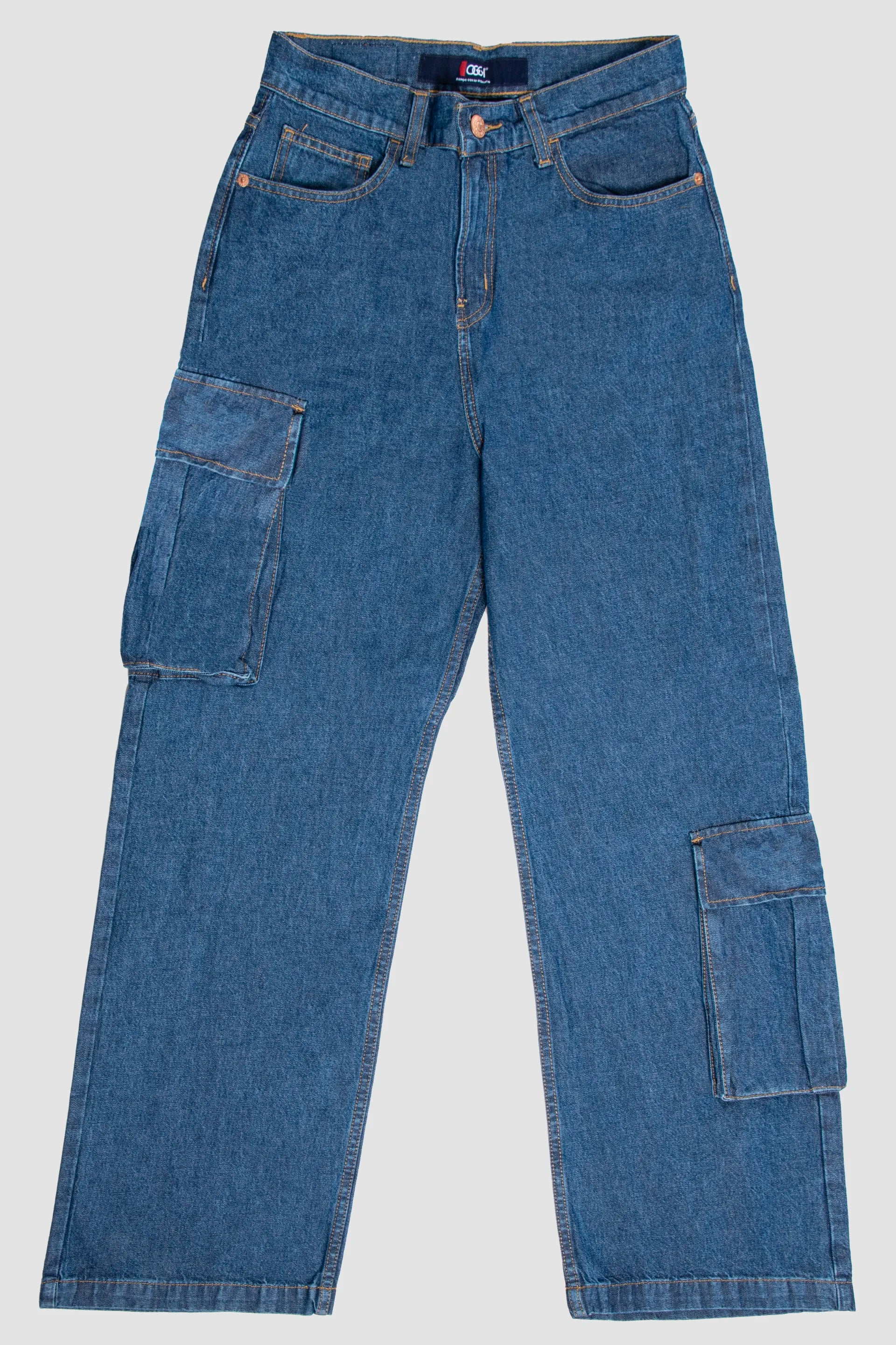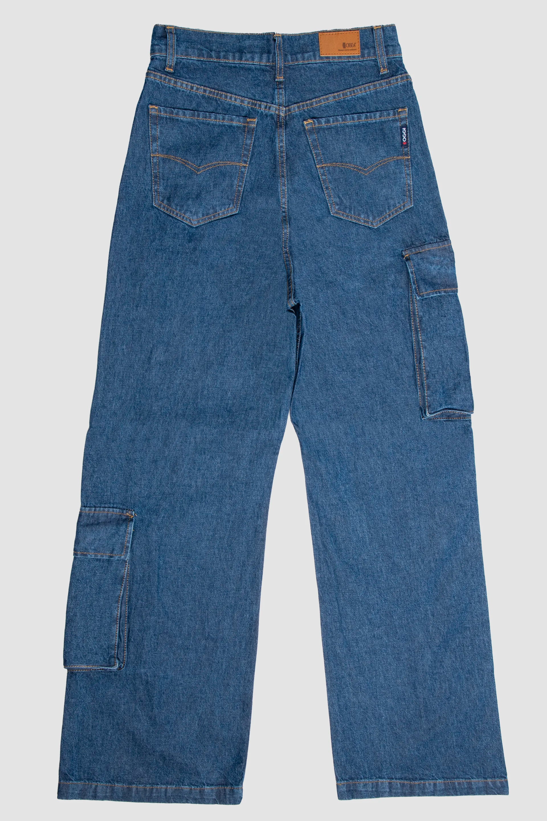 Además, los bolsillos cargo a los costados añaden un detalle práctico y actual que suma carácter sin complicar el look. Gracias a todo esto, los Jeans Amplio Azul para Mujer - Wide Leg se convierten en una opción ideal para quienes buscan un estilo cómodo, moderno y con un toque distintivo.