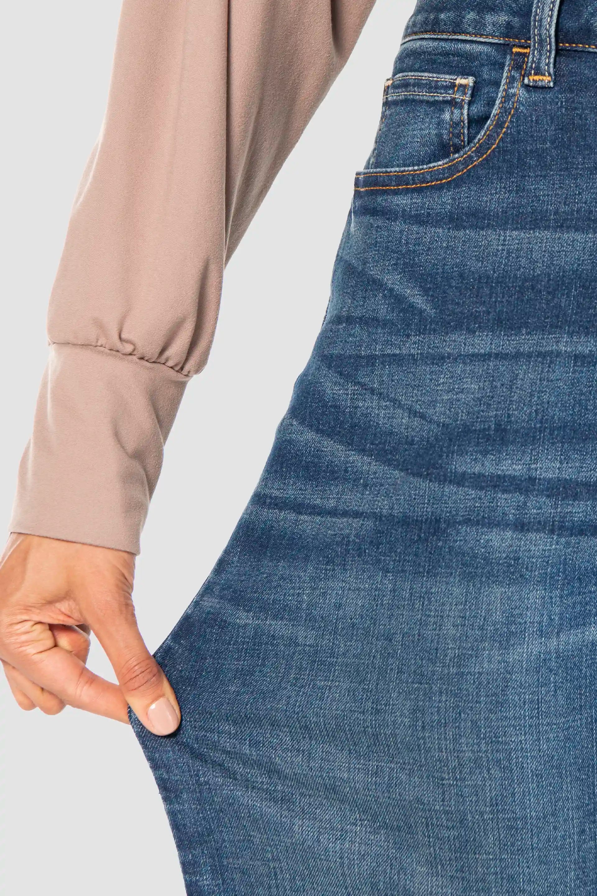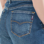 Además, están confeccionados en mezclilla stretch con fibra Repreve, lo que los convierte en una opción más responsable con el medio ambiente. Gracias a su composición de 74% algodón, 24% poliéster y 2% spandex, ofrecen suavidad, resistencia y una ligera elasticidad que acompaña cada movimiento. Asimismo, la cintura media brinda un ajuste cómodo y natural.