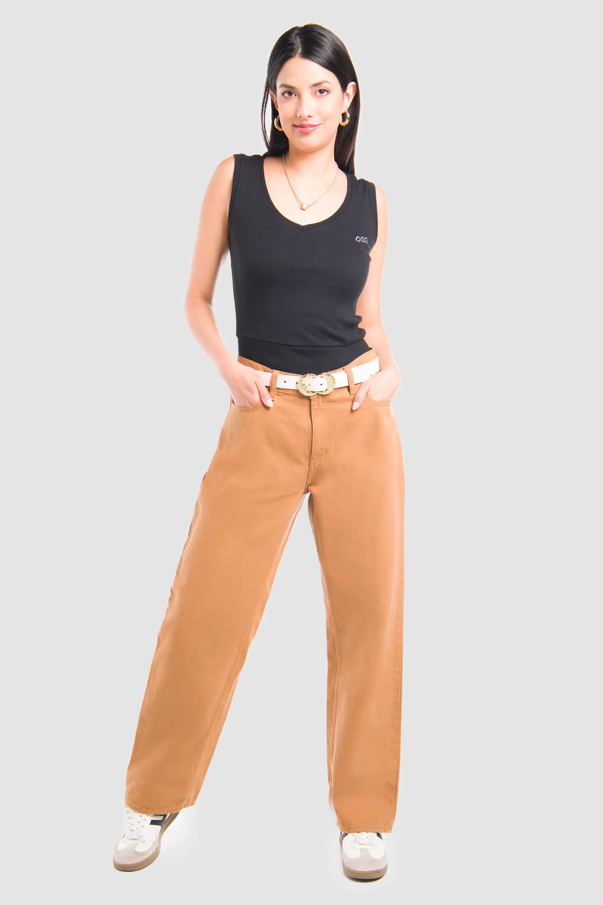 Los Jeans Amplio Camel para Mujer - Happiness son una prenda pensada para quienes buscan un estilo relajado con un toque moderno. Su tono camel aporta un look diferente y fácil de combinar. Además, puedes usarlos con playeras, blusas o tops para crear outfits casuales sin complicarte.