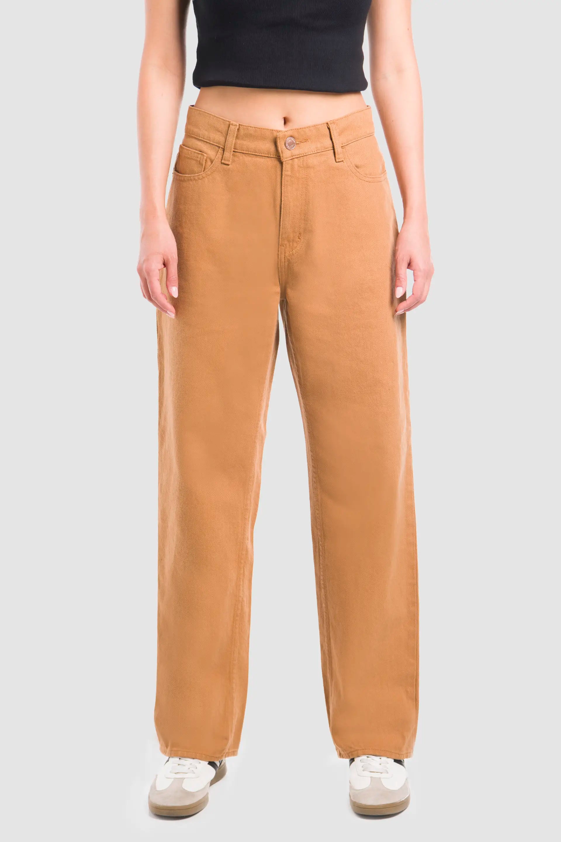 Los Jeans Amplio Camel para Mujer - Happiness son una opción cómoda y fácil de combinar. En resumen, son ideales para crear looks casuales con un estilo actual y relajado.