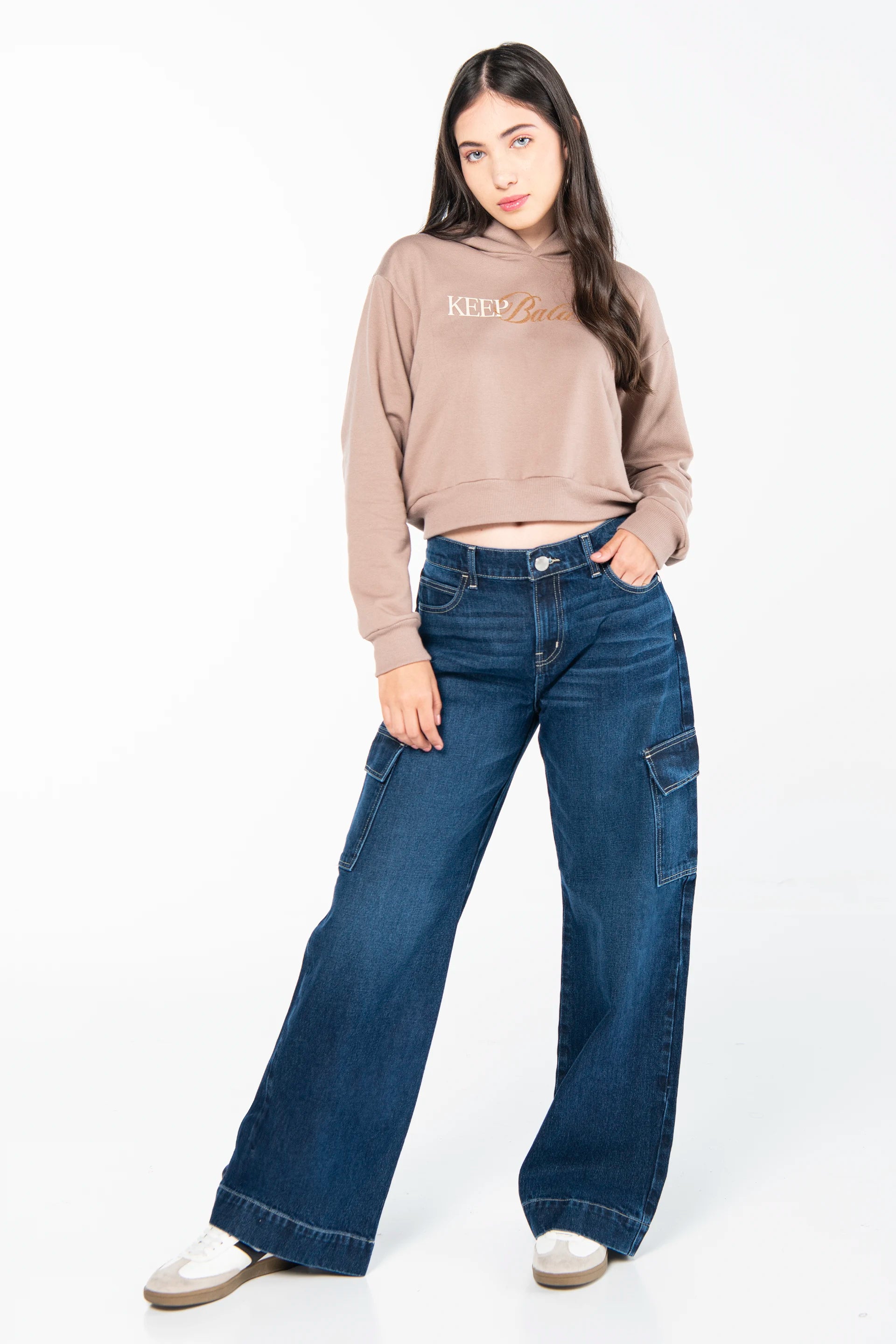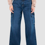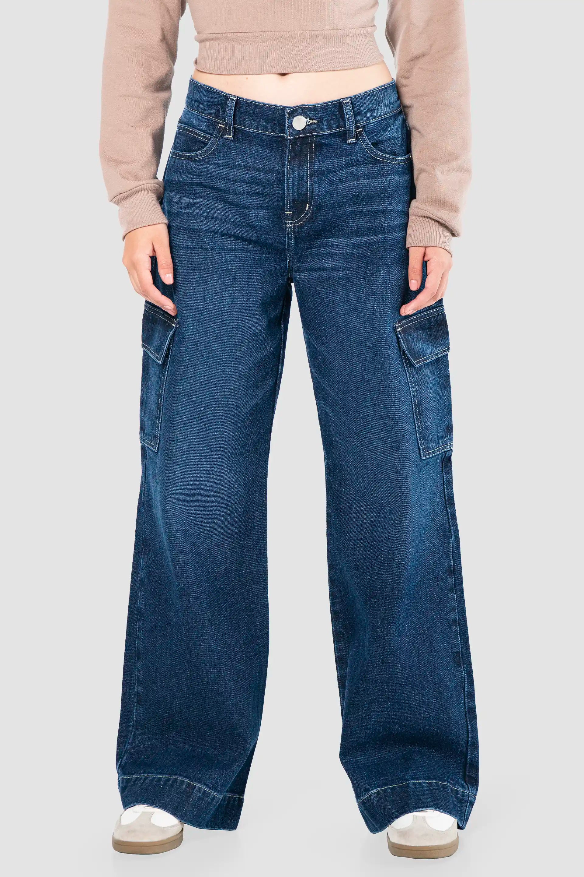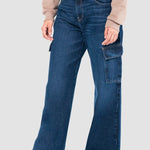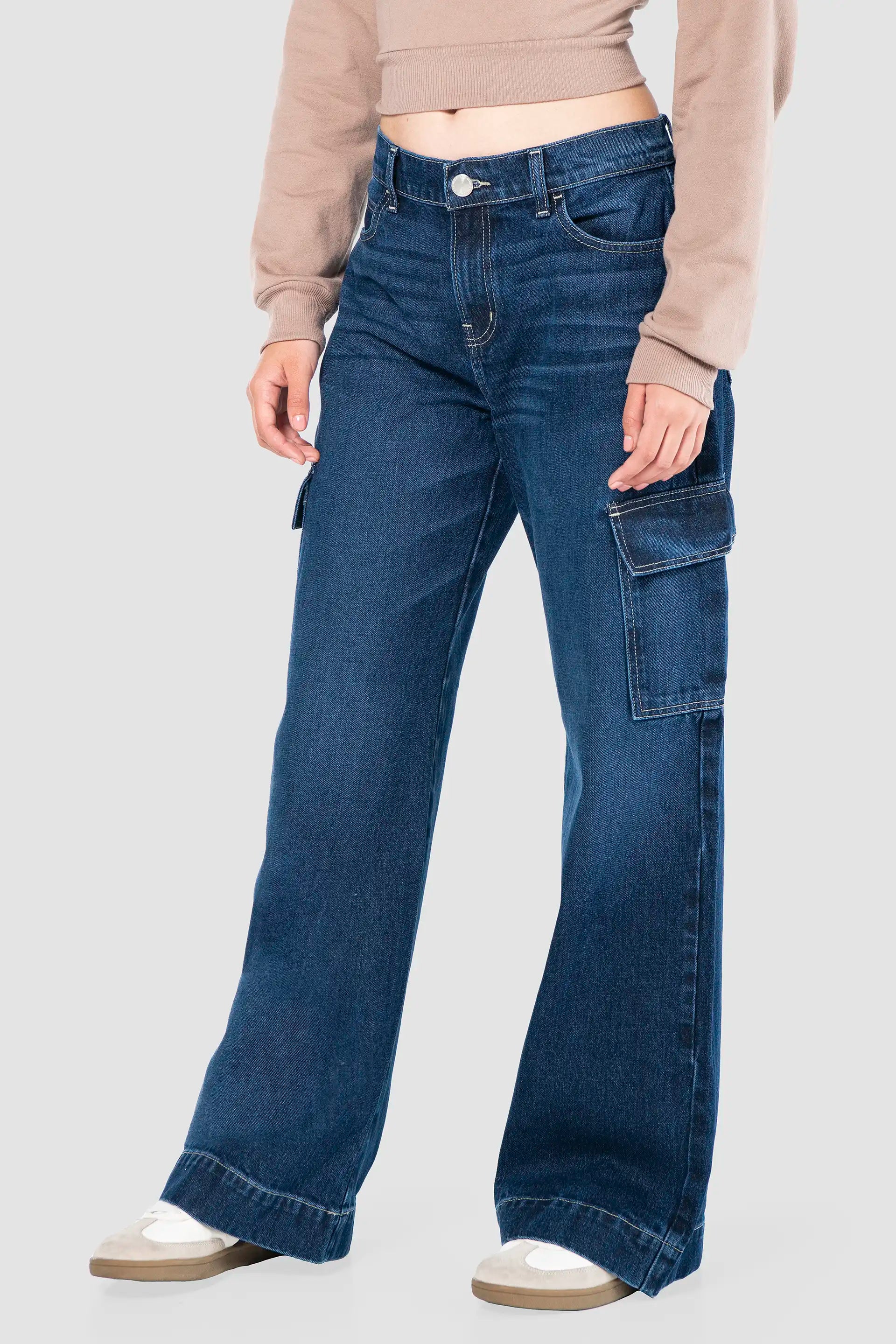 Asimismo, destacan por sus bolsas tipo cargo a los costados, que aportan funcionalidad y un toque contemporáneo. Los detalles de whiskers completan el diseño, ofreciendo una apariencia auténtica inspirada en el denim clásico. Gracias a estas características, los Jeans Baggy Azul Oscuro para Mujer - Cintura Alta se convierten en una opción versátil que se adapta fácilmente a diferentes estilos, desde los más relajados hasta los más urbanos.