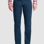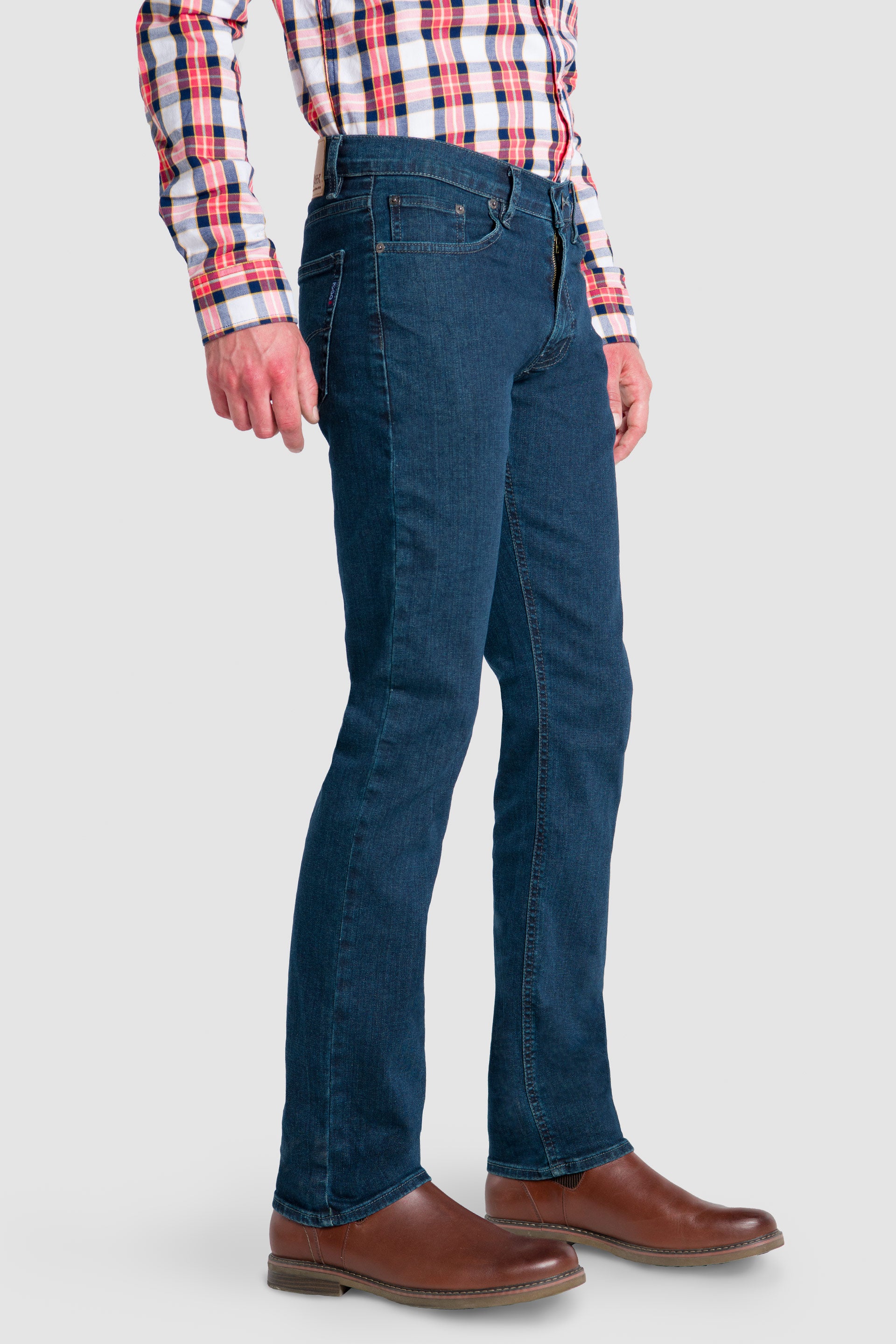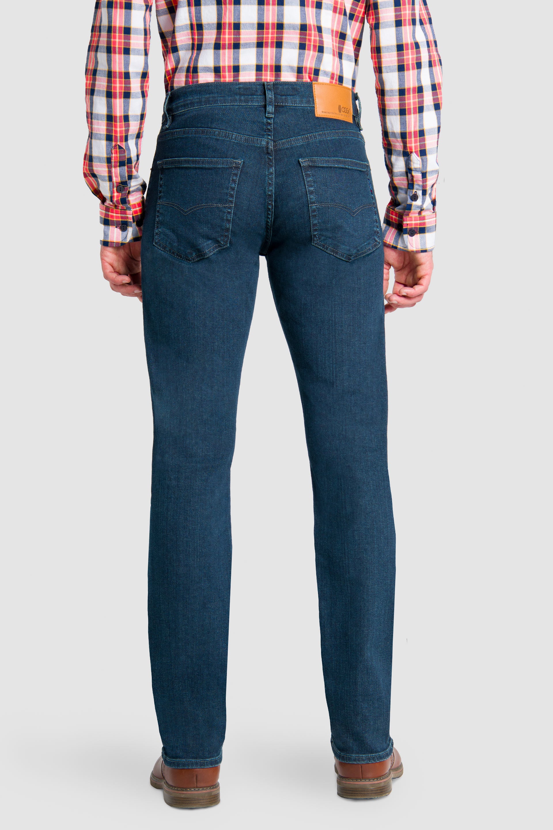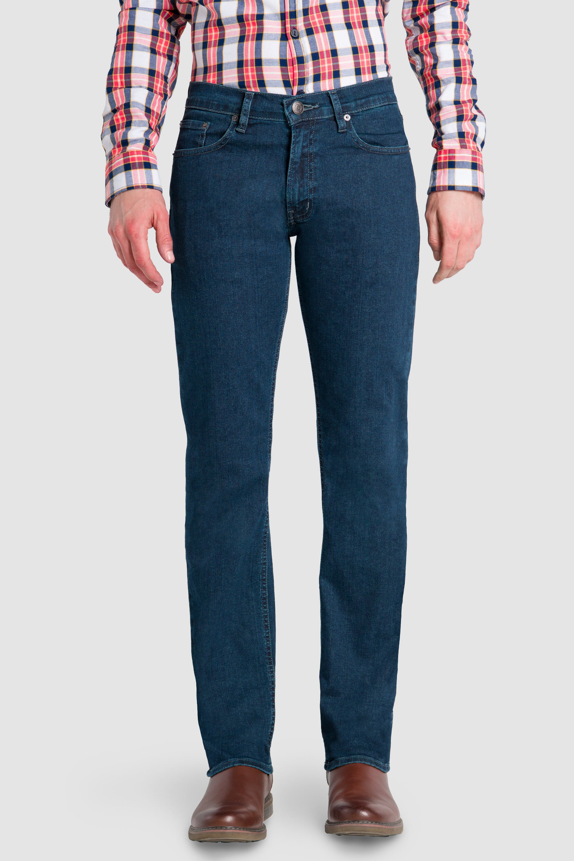 Mezclilla Confort con remaches en bolsas delanteras, bolsas traseras con bordado y etiqueta pretina sintética.