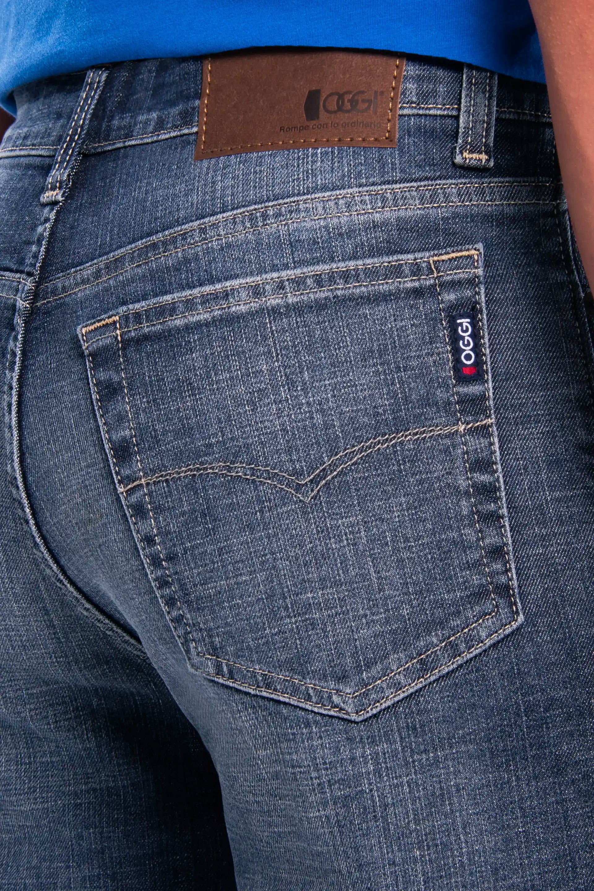 Mezclilla stretch con proceso Azul, remaches en bolsillos delanteros, traseros con bordado tradicional y etiqueta en pretina sintética.