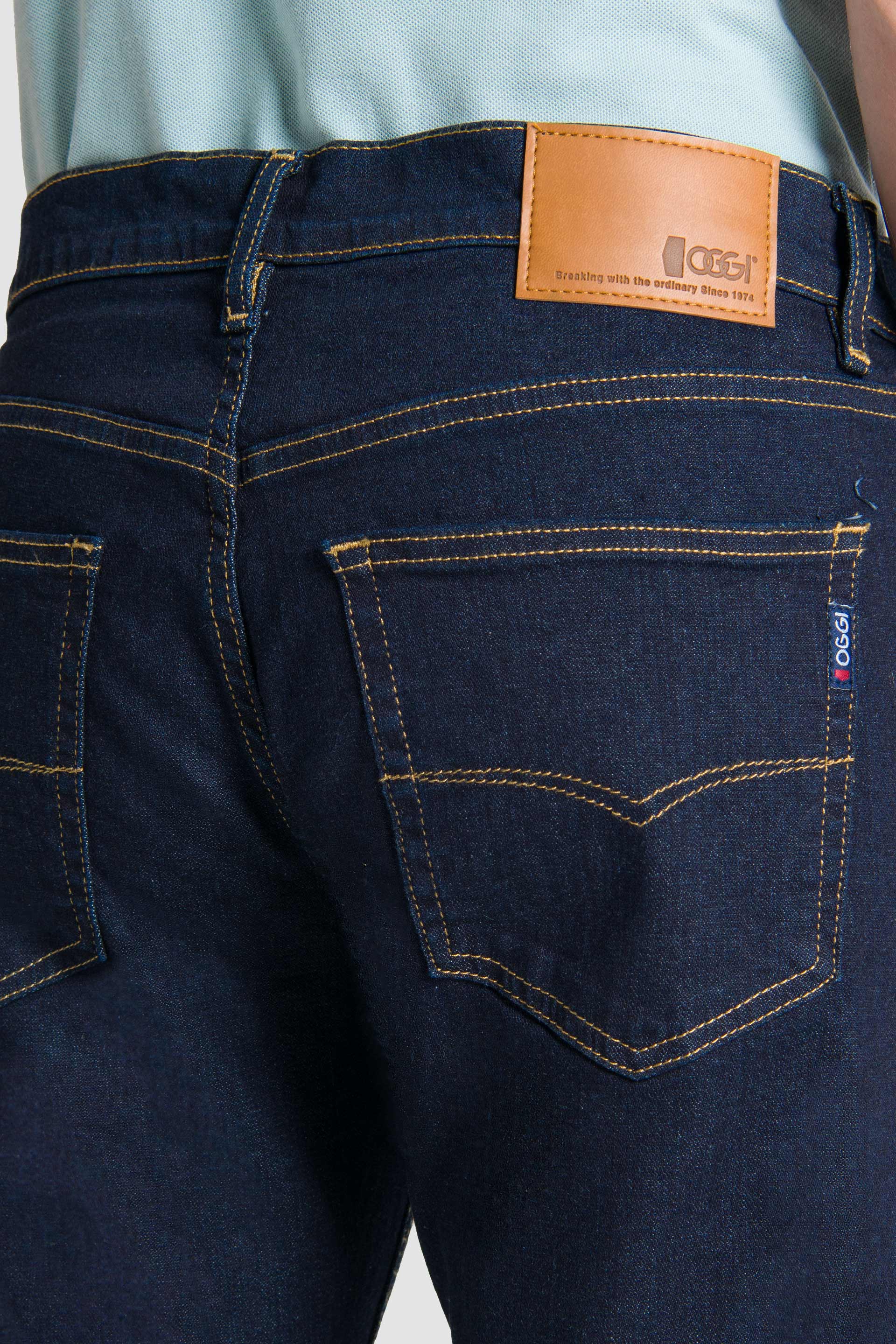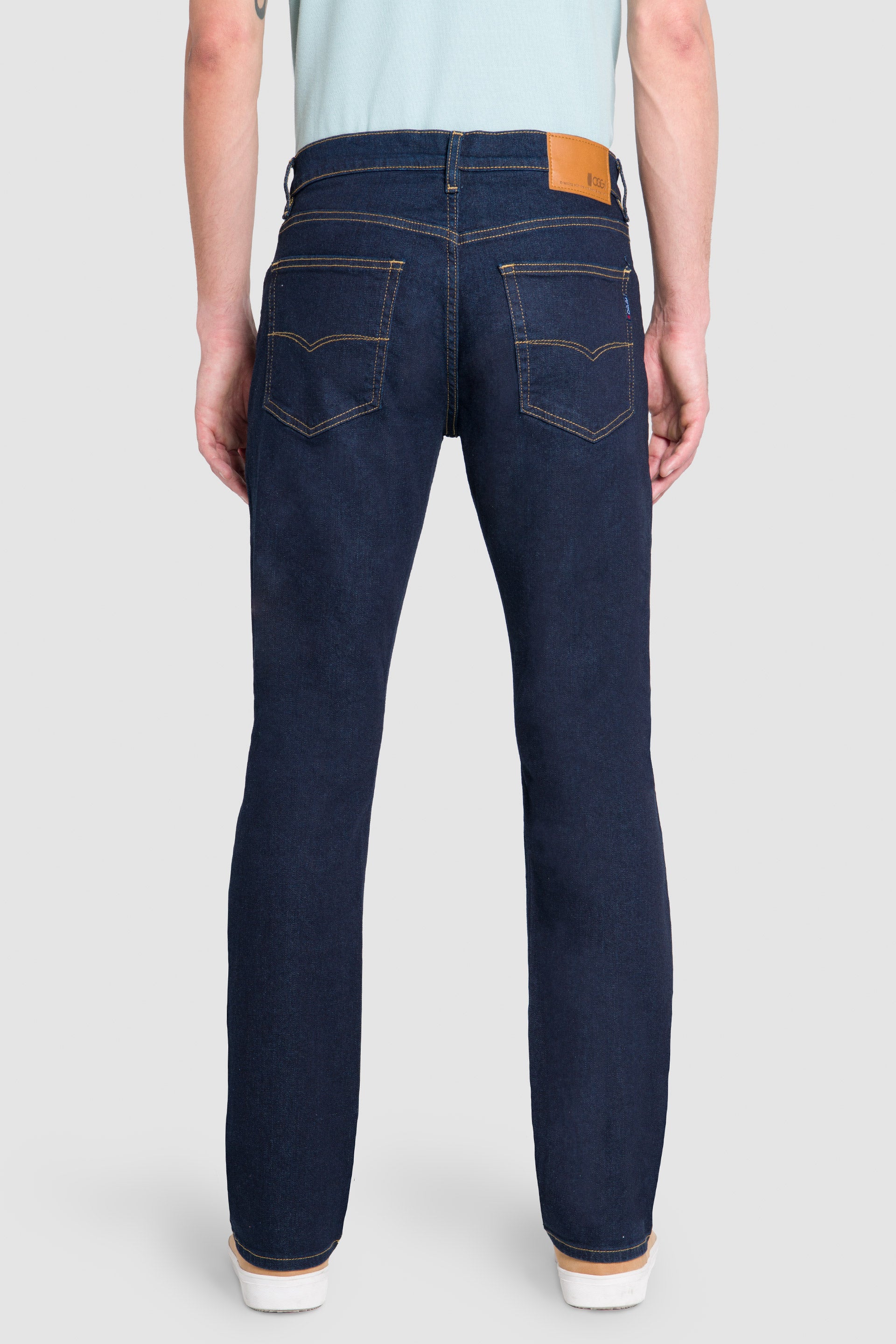 Mezclilla Stretch color Ink, bolsas traseras con bordado, remaches en bolsillos delanteros y etiqueta en pretina sintética.