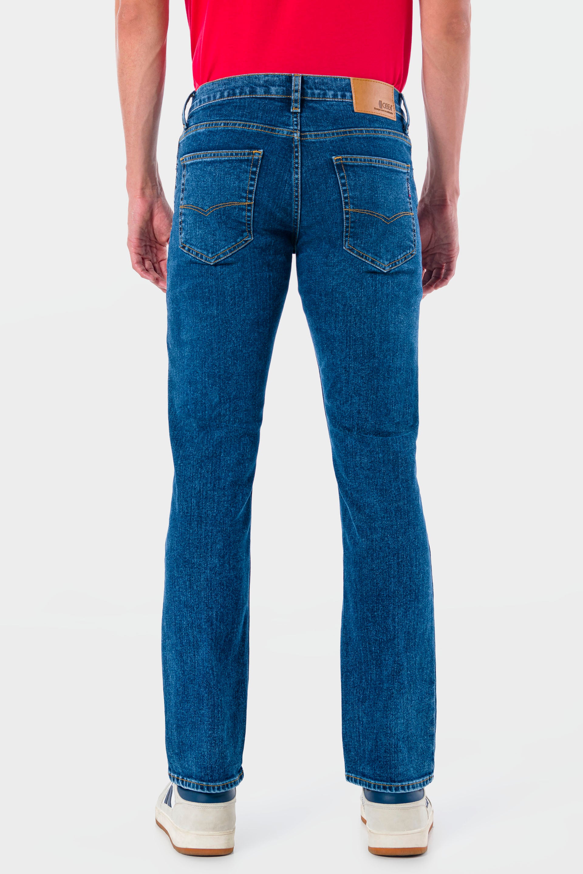 Mezclilla Confort con remaches en bolsillos delanteros, traseros con bordado y etiqueta en pretina sintética. El color puede variar ligeramente por cuestiones de configuración del monitor, brillo y luz.