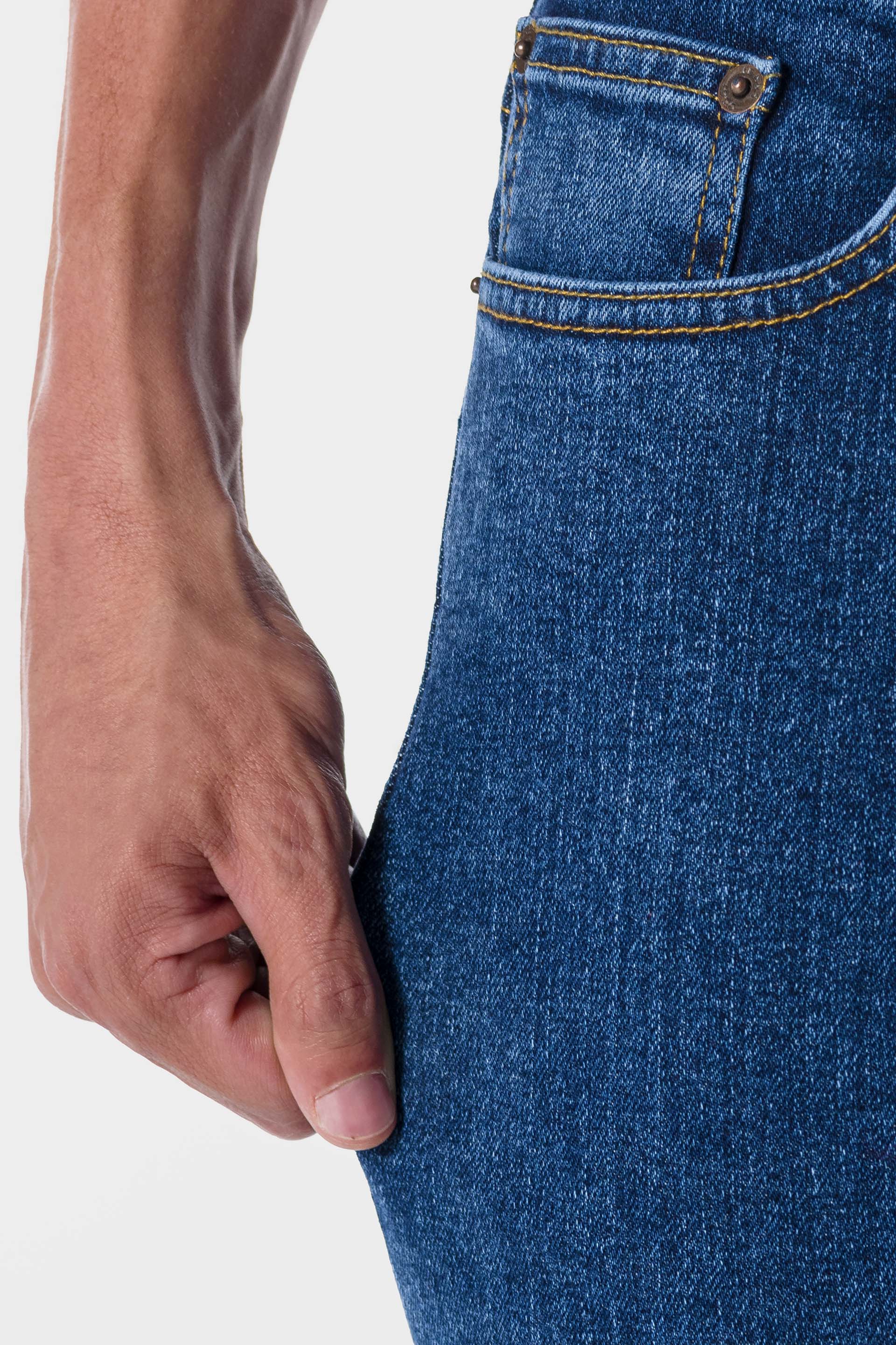 Corte Jeans Slim Straight Azul que equilibra estilo y adaptabilidad