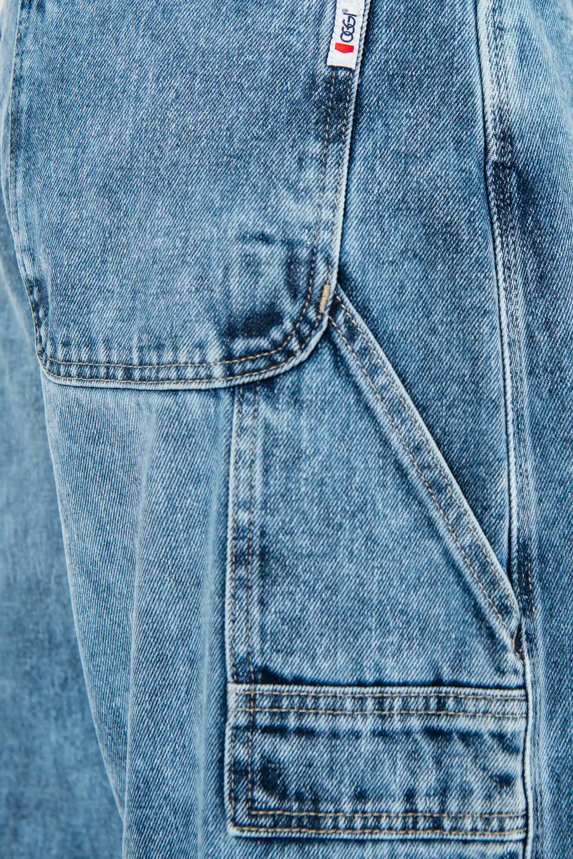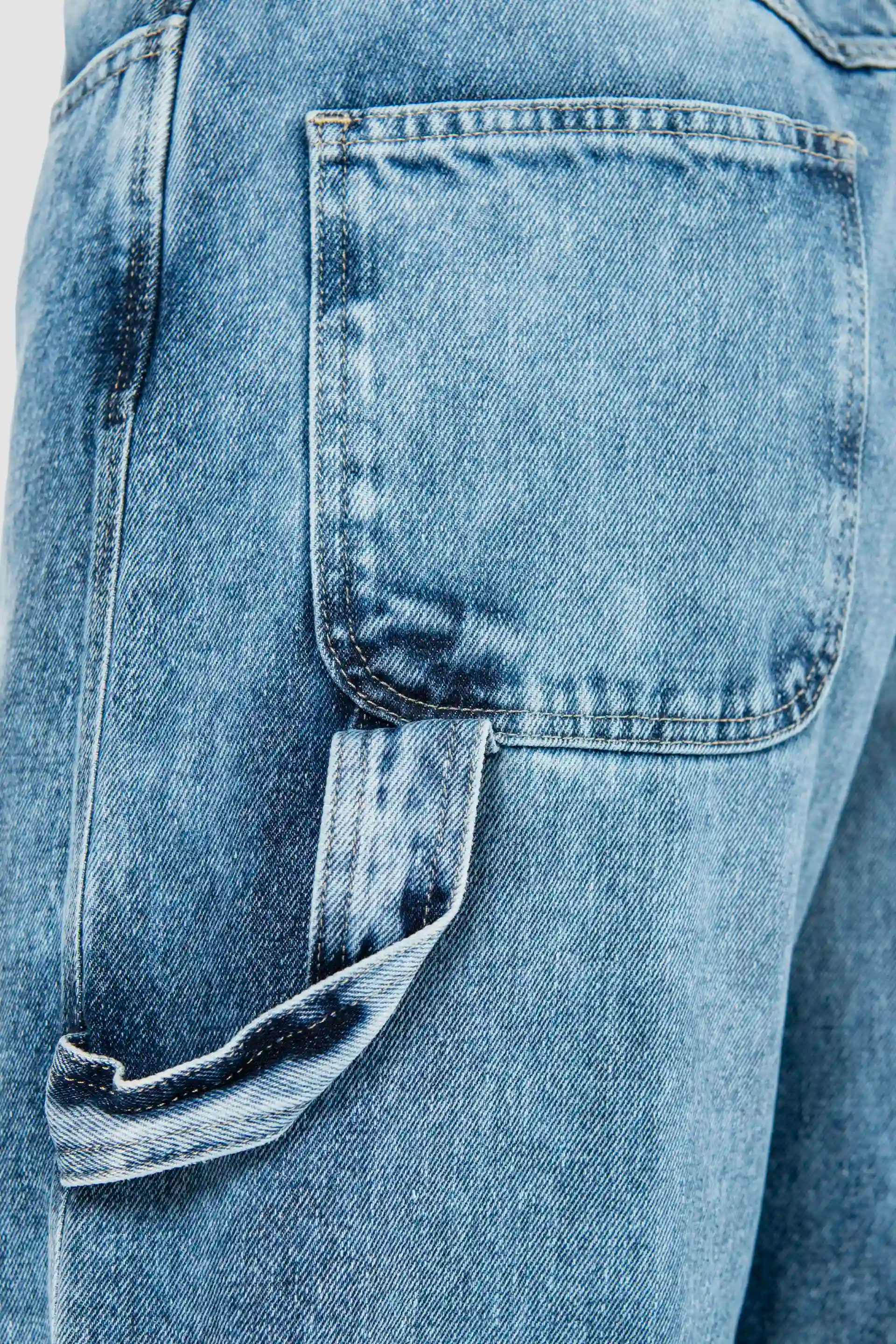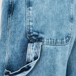 Confeccionados en mezclilla confort, estos jeans carpintero ofrecen suavidad y resistencia gracias a su composición de 99% algodón y 1% elastano, que asegura un ajuste cómodo y flexible sin perder forma. Además, los detalles de diseño combinan estilo y practicidad: bolsillos delanteros diagonales, bolsillos traseros grandes, aplicación para herramientas en la pierna derecha y bucle de utilidad en el costado.