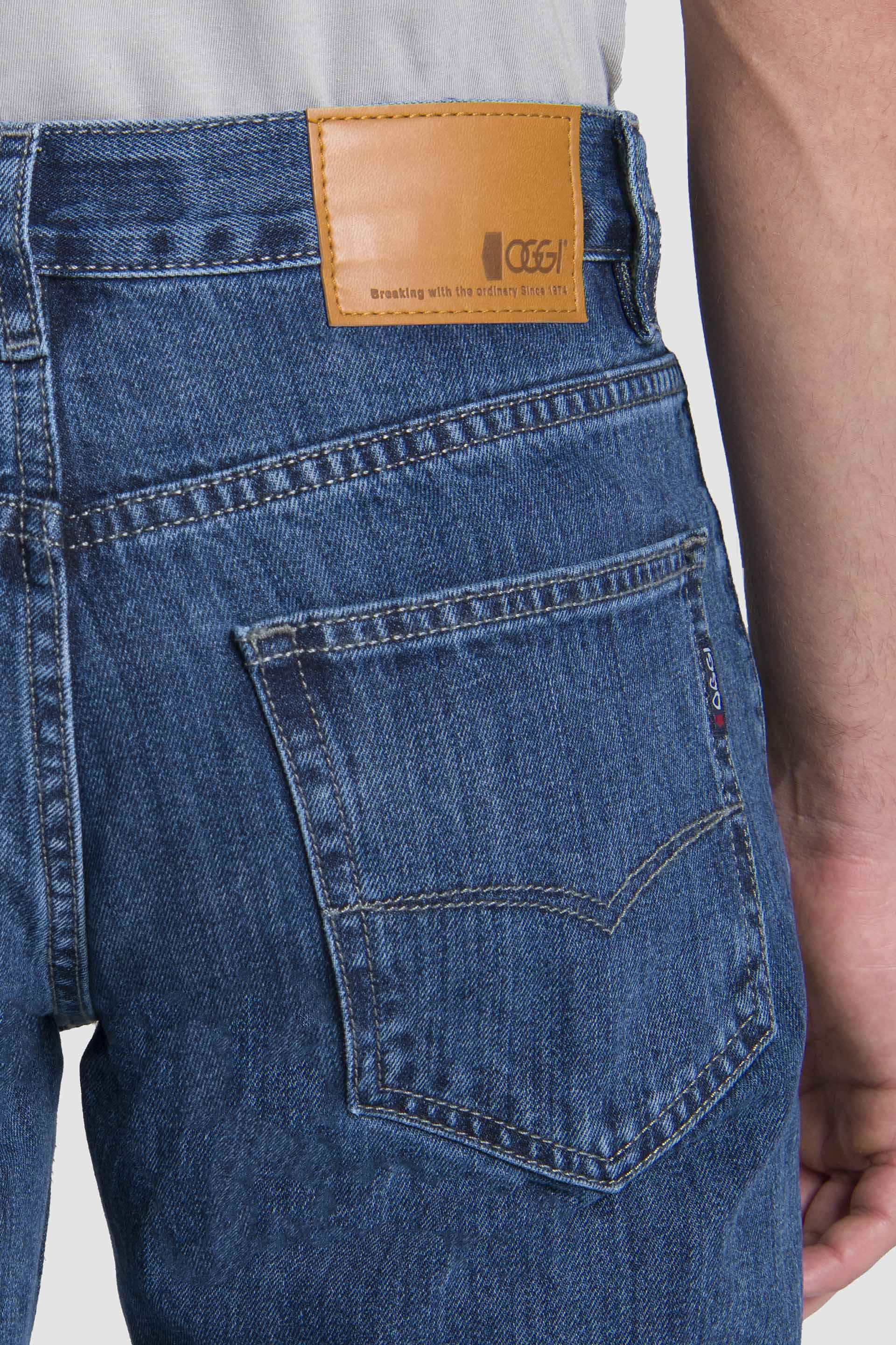 La mezclilla rígida realza tu look con textura auténtica, mientras los detalles (remaches en bolsas delanteras, bordado trasero y etiqueta sintética) le suman identidad OGGI completa.
