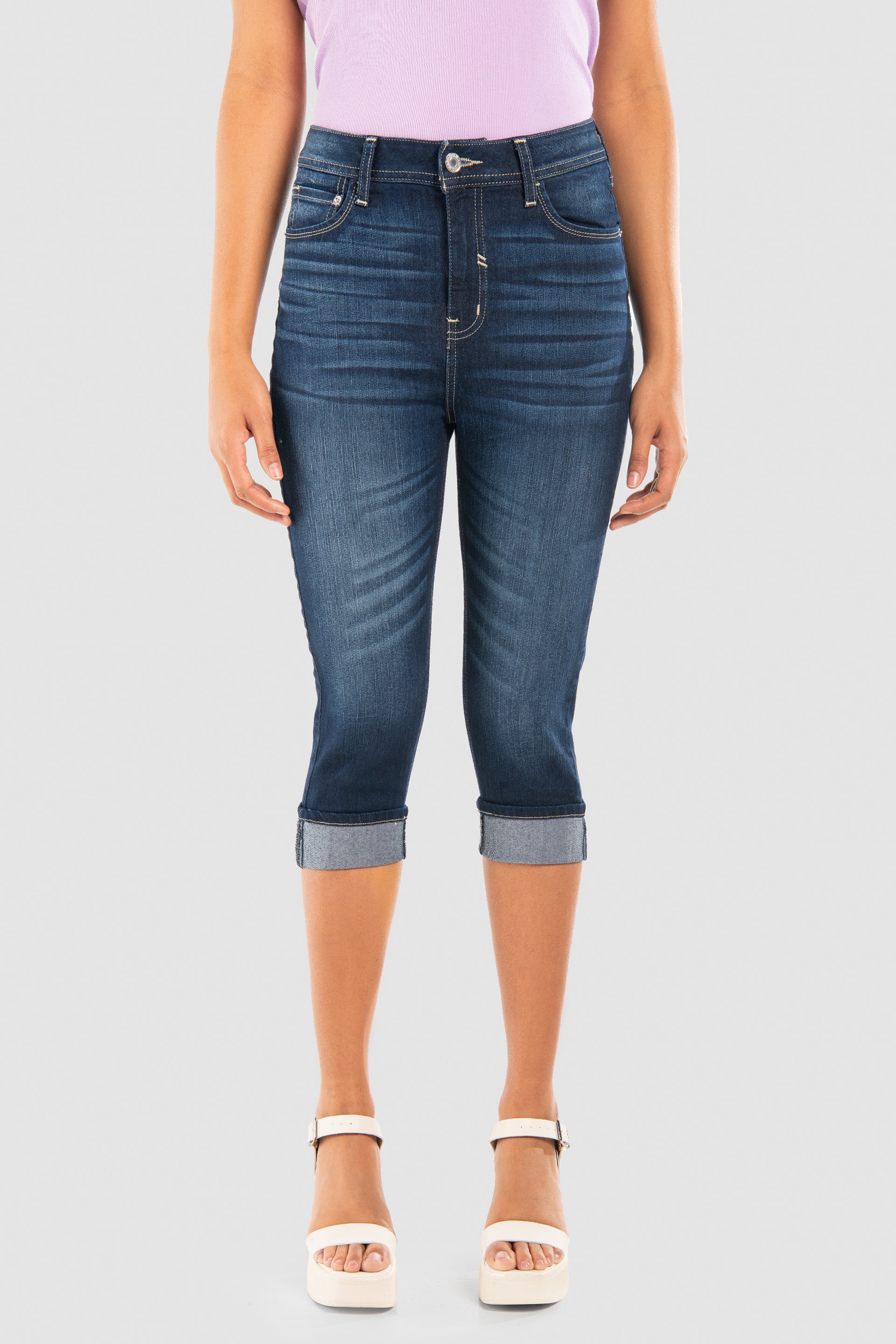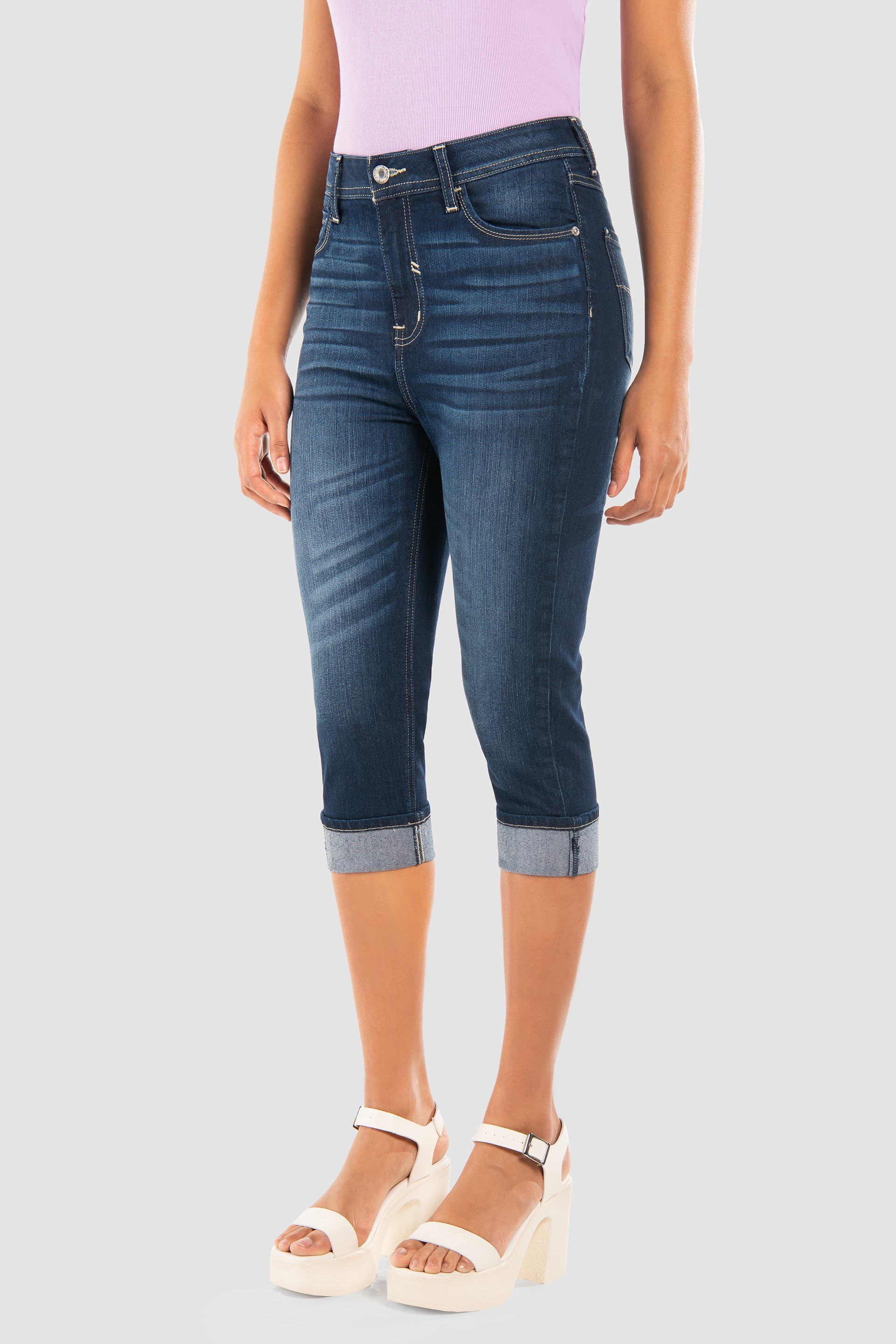 ¡No esperes más! Haz tuyos los Jeans Capri Slim Azul Oscuro y lleva tu estilo al siguiente nivel. 💥