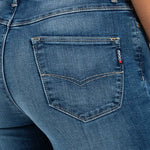 Mezclilla Stretch con proceso Dirty Sand, remaches en bolsillos delanteros, bolsillos traseros con bordado tradicional y etiqueta en pretina sintética.