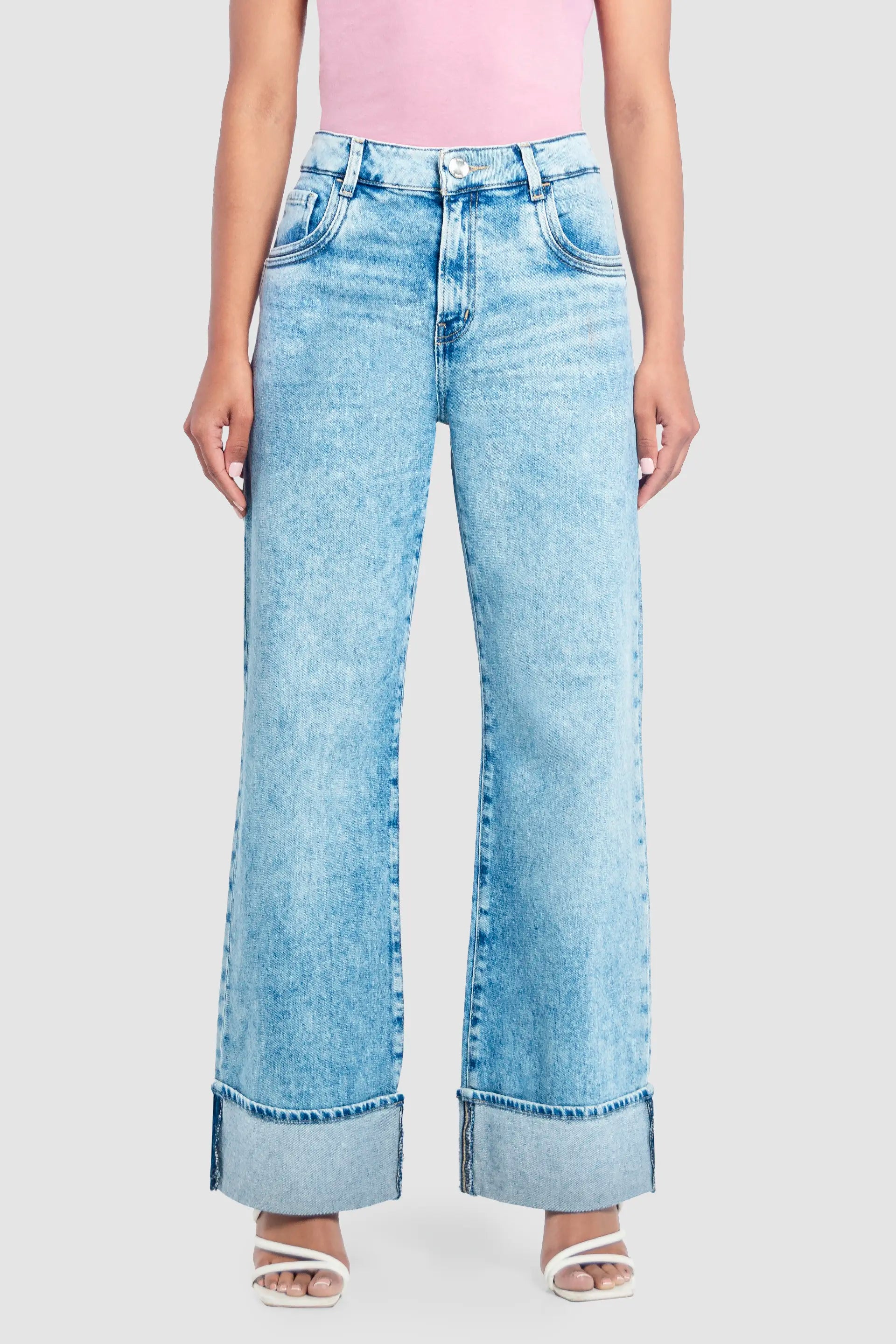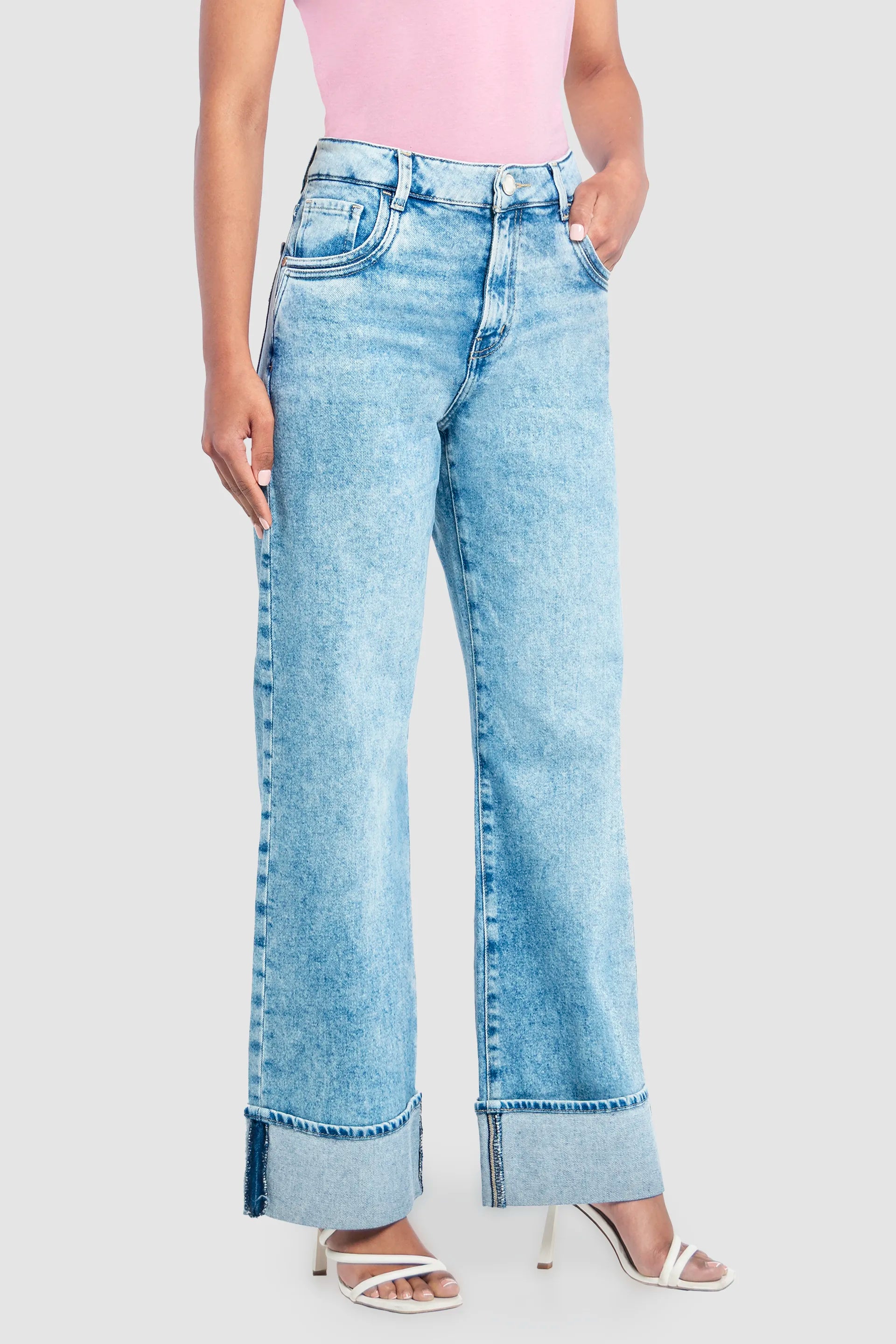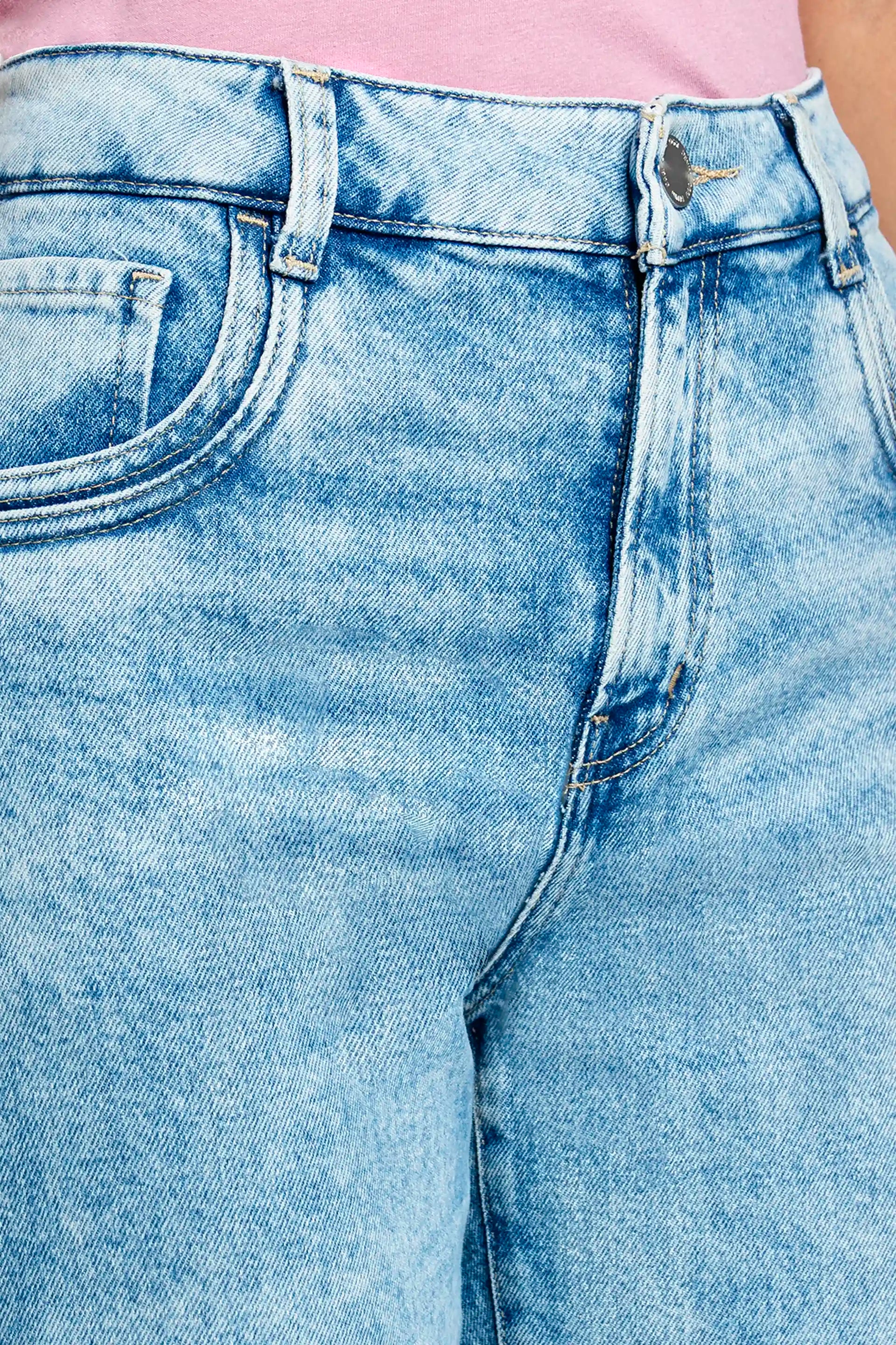 Jeans Recto Cintura Alta Azul Claro para Mujer - Amplio