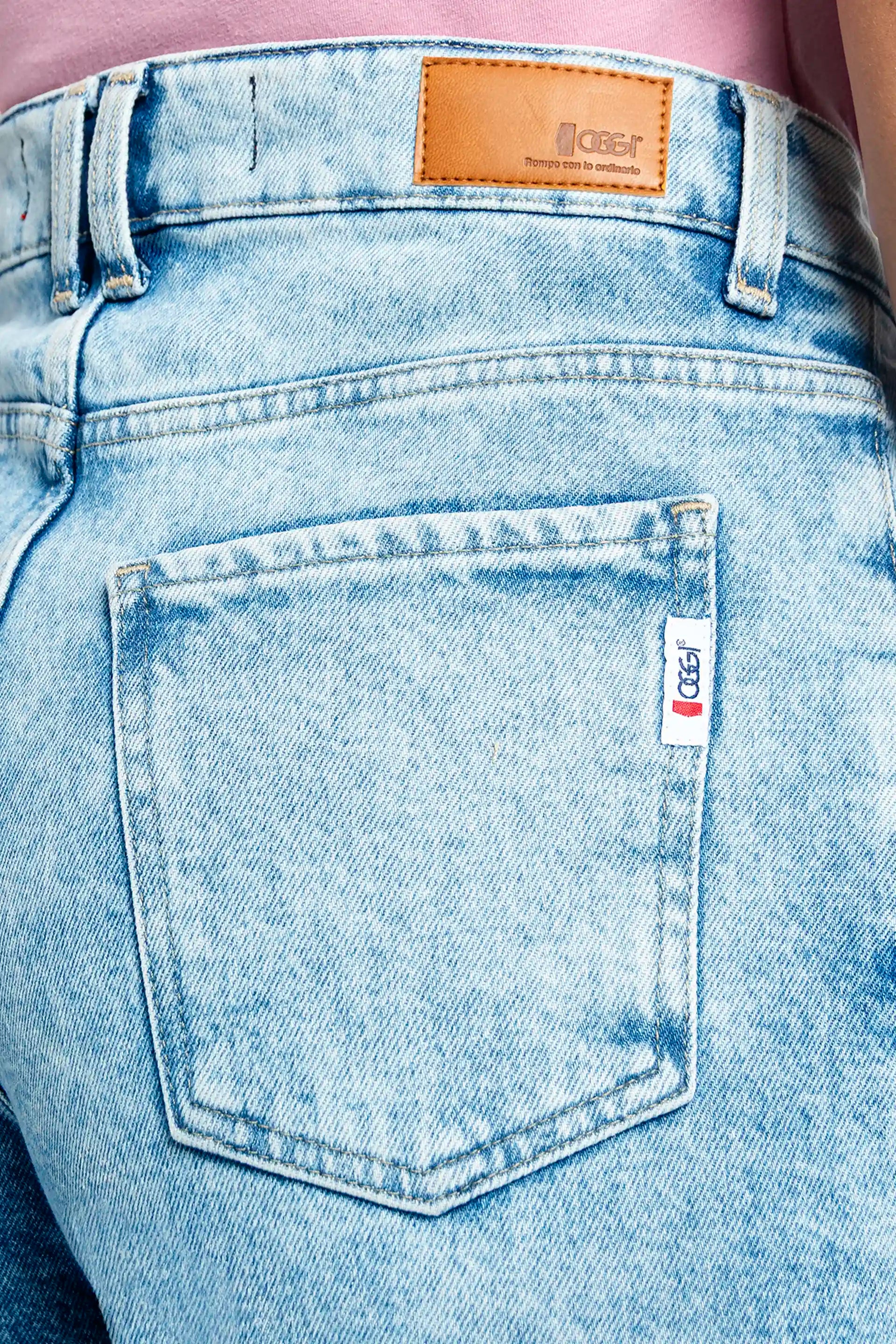 La mezclilla confort, con 99 % algodón y 1 % elastano, se adapta a tu ritmo sin sacrificar estructura ni actitud. Detalles como remaches en bolsillos delanteros, bordado en los traseros y etiqueta sintética en la pretina elevan esta prenda con identidad Oggi, desde el primer vistazo.