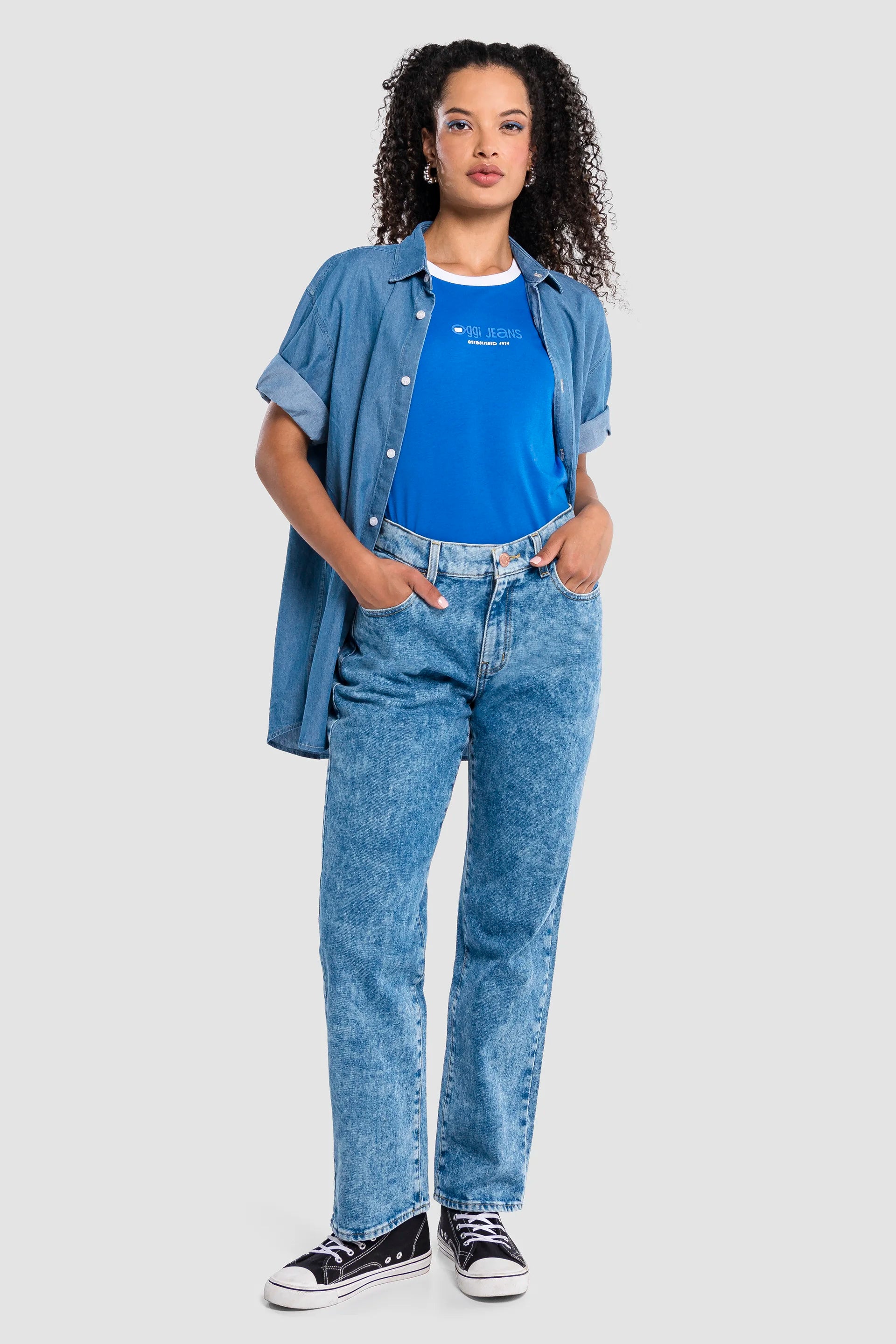 Jeans Mujer Mezclilla Confort Emotion Relajado Snow Oggi