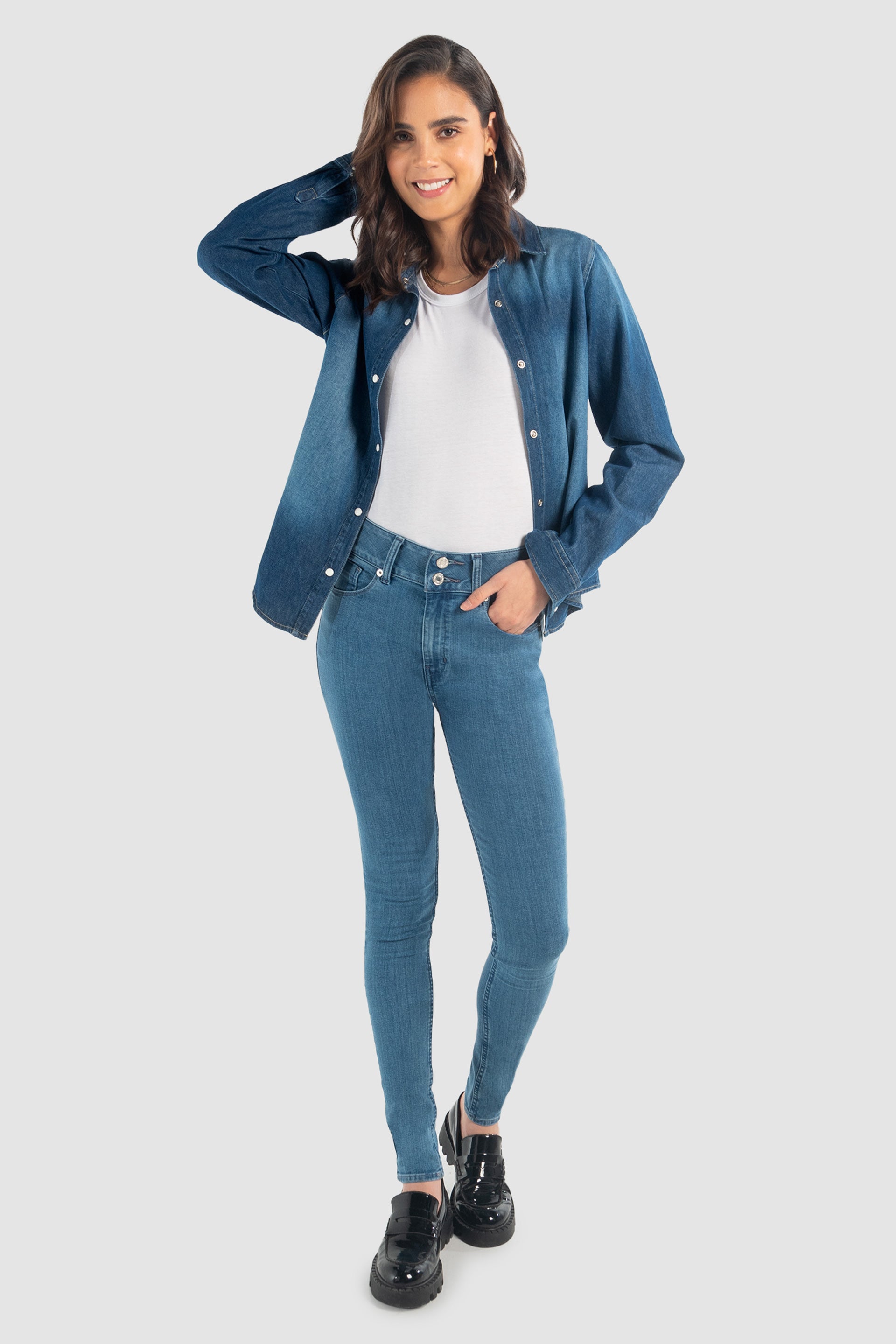 Vístelos, camina segura, muestra lo extraordinaria que eres. Los Jeans Súper Skinny Azul Claro no solo te visten: declaran quién eres con cada paso.