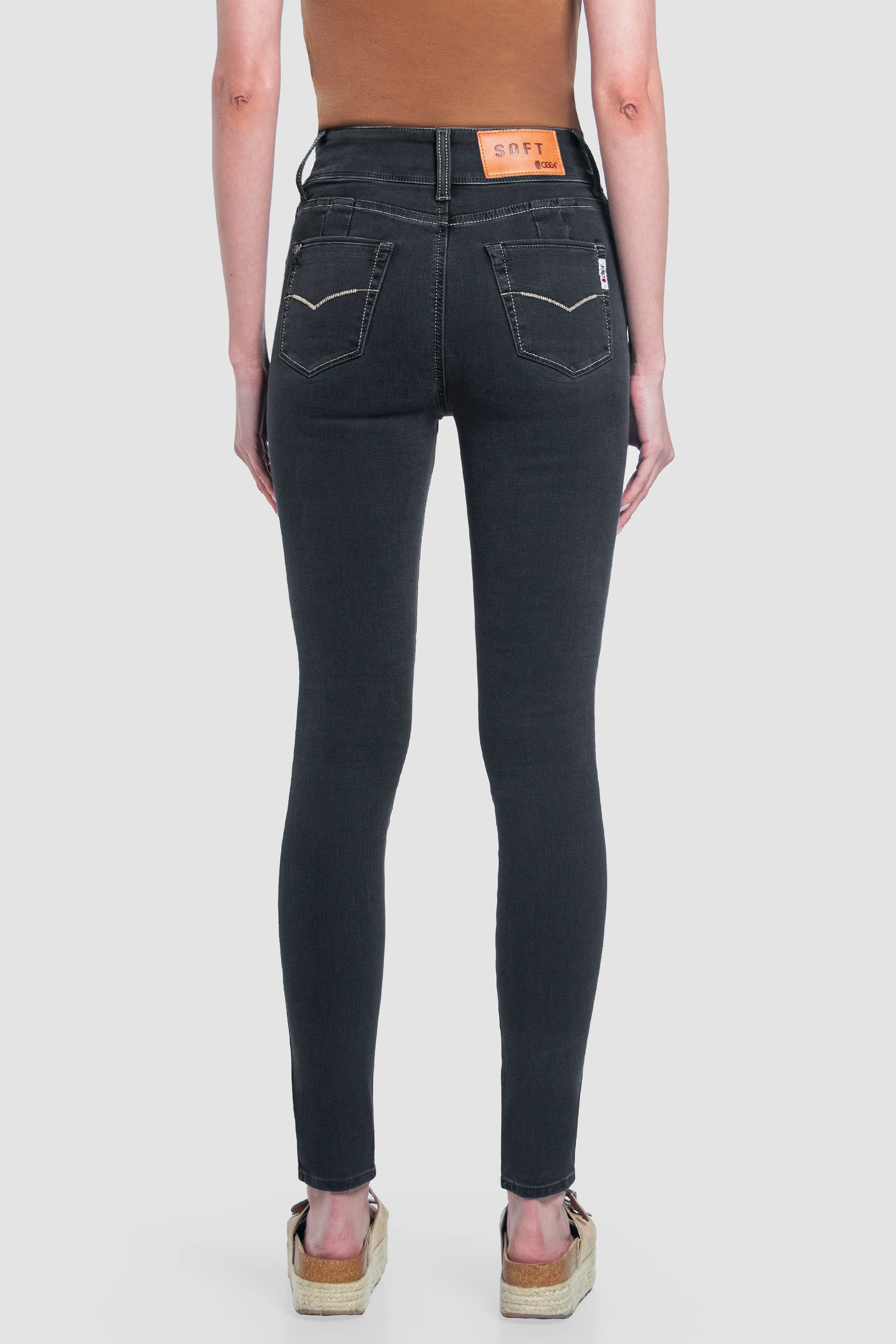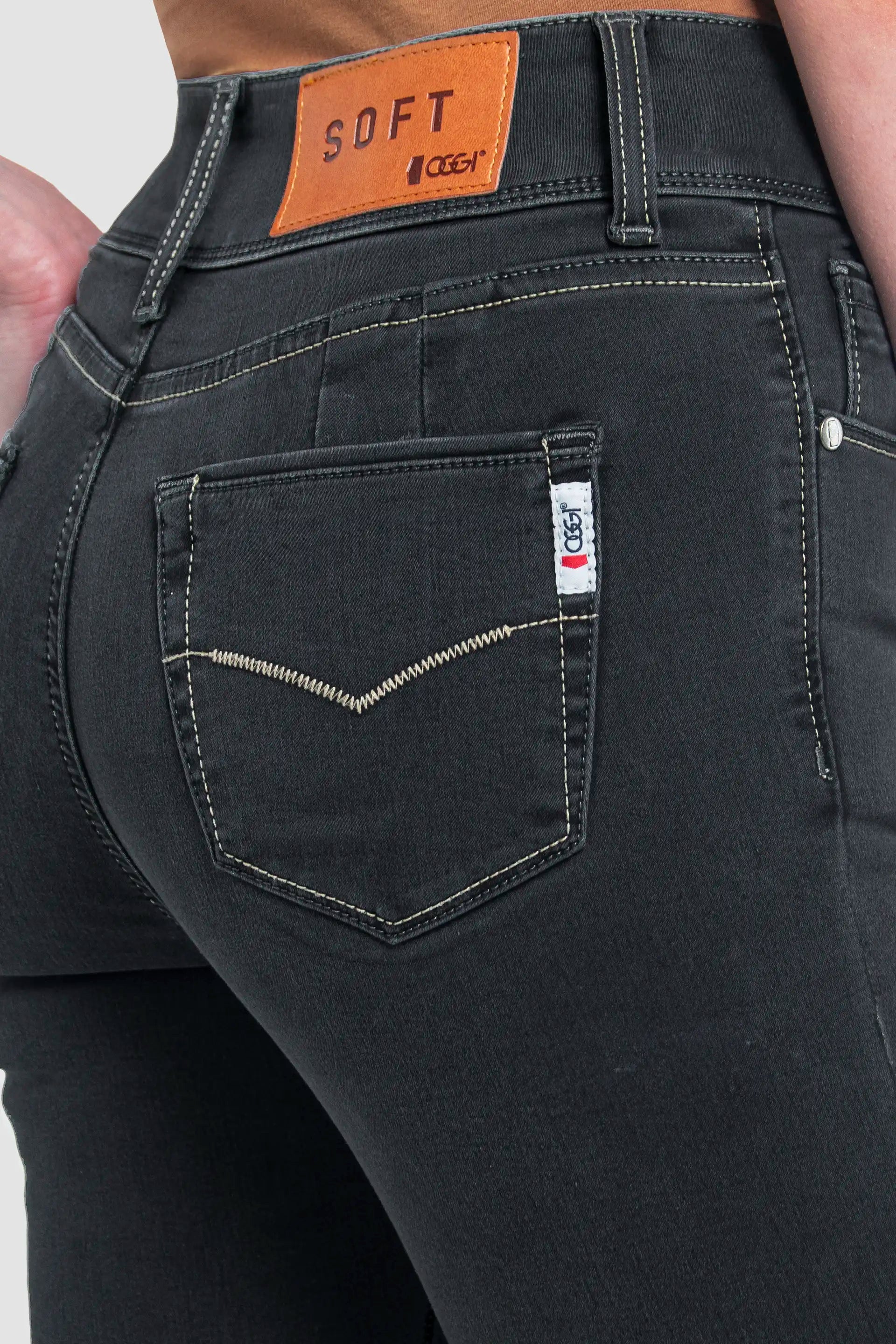 La mezclilla stretch color black fusiona firmeza y flexibilidad, adaptándose a tus movimientos y amplificando tu energía con cada paso. El cierre de doble botón, los remaches en bolsillos delanteros, los bolsillos traseros bordados y la etiqueta sintética en la pretina elevan la identidad Oggi en cada detalle.