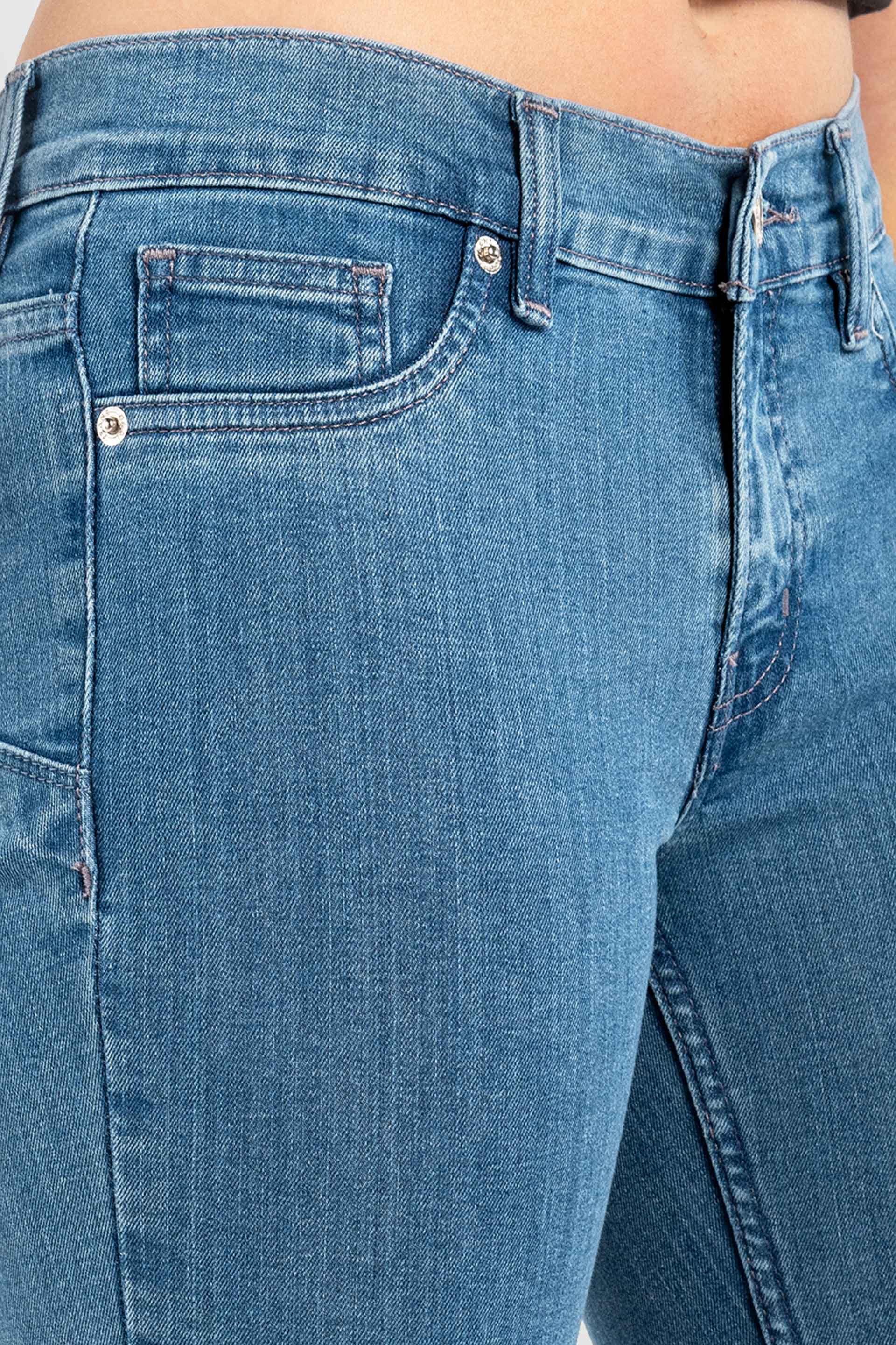 Mezclilla Stretch con proceso Ivy, remaches en bolsillos delanteros, bolsillos traseros con bordado y etiqueta en pretina sintética.