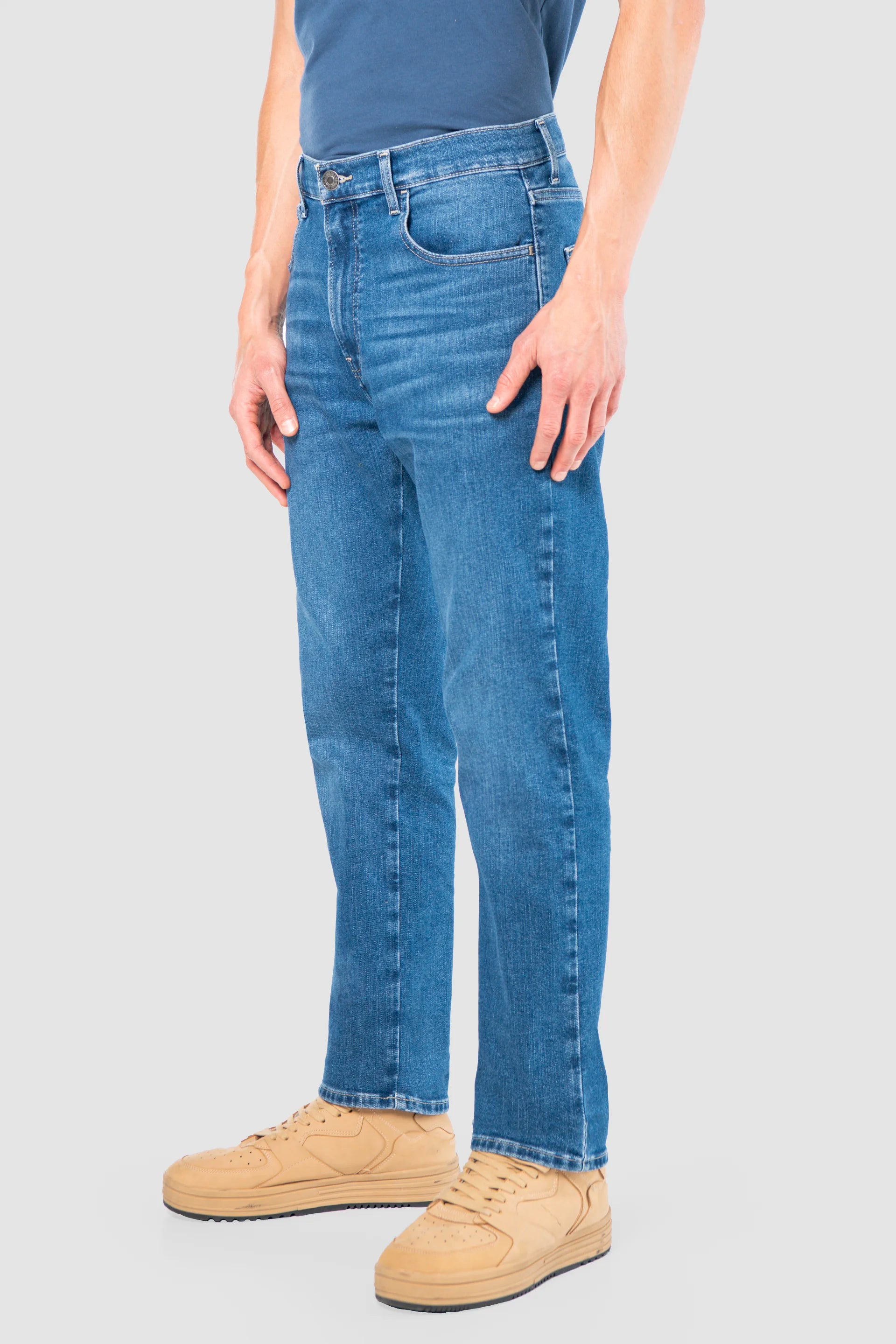 La mezclilla stretch es otro de sus grandes atributos. Gracias a su composición de 77% algodón, 22% poliéster y 1% elastano, el tejido ofrece suavidad, flexibilidad y buena resistencia. Además, los whiskers al frente añaden un efecto visual moderno que aporta carácter sin exagerar, elevando el diseño de forma sutil.