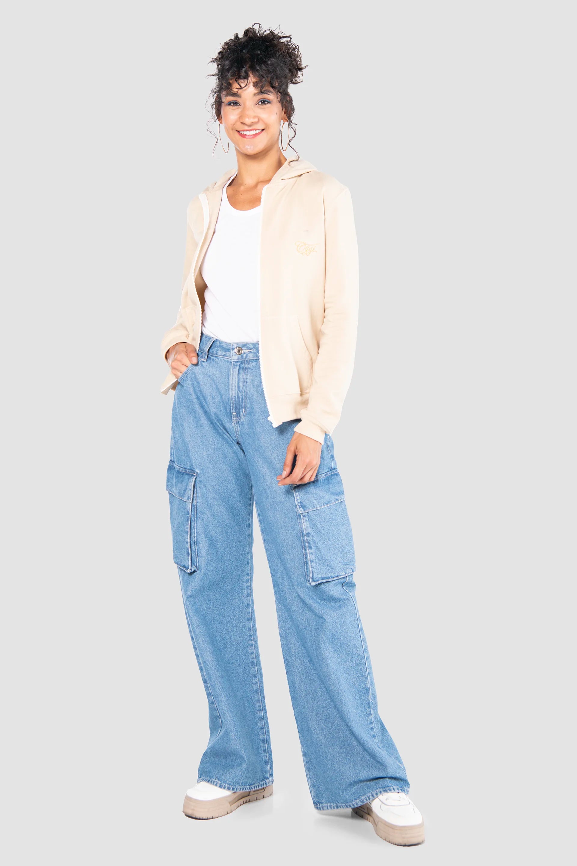 Por otro lado, estos jeans cargo relaxed se adaptan fácilmente a looks casuales. Puedes combinarlos con playeras, tops o chamarras para crear outfits cómodos y llenos de personalidad. Así, se convierten en una prenda clave para un estilo relajado y funcional.