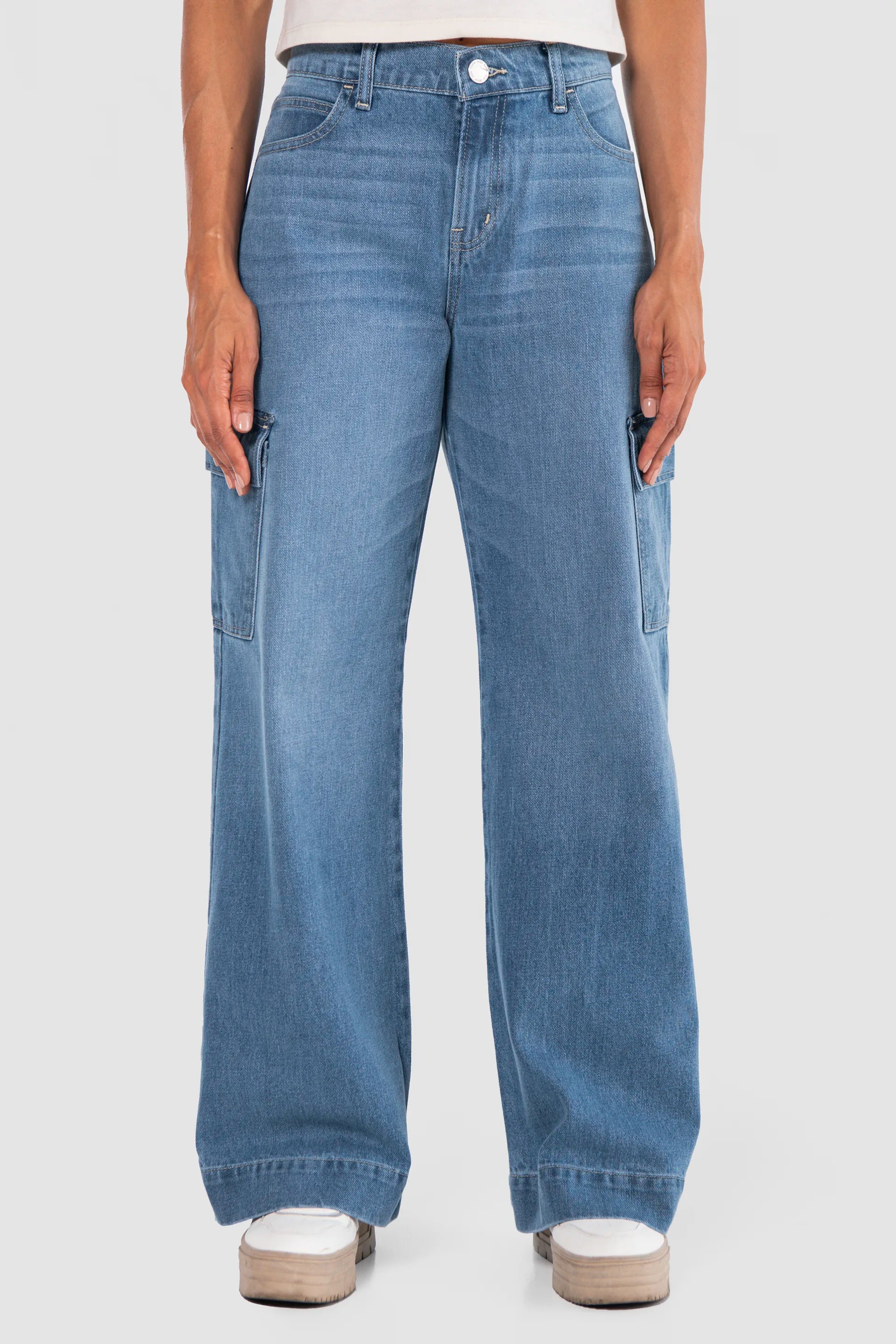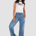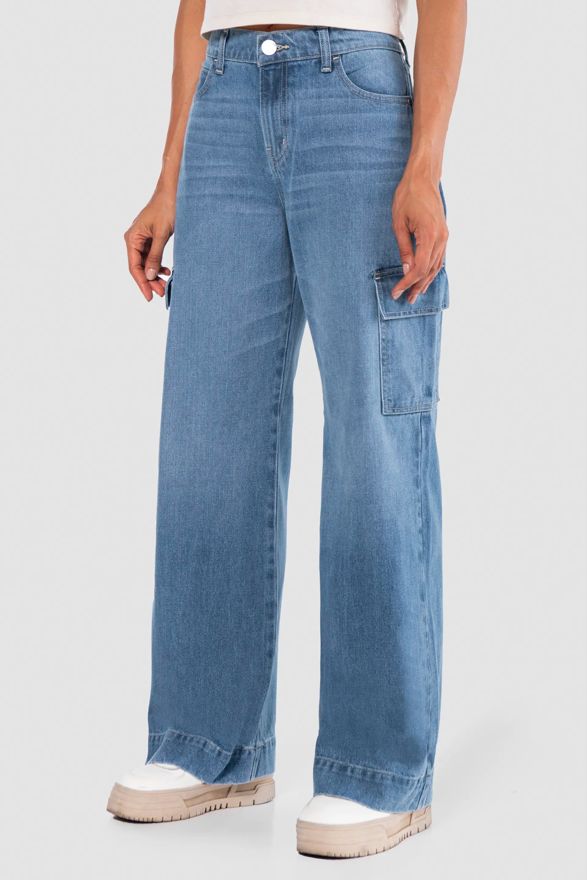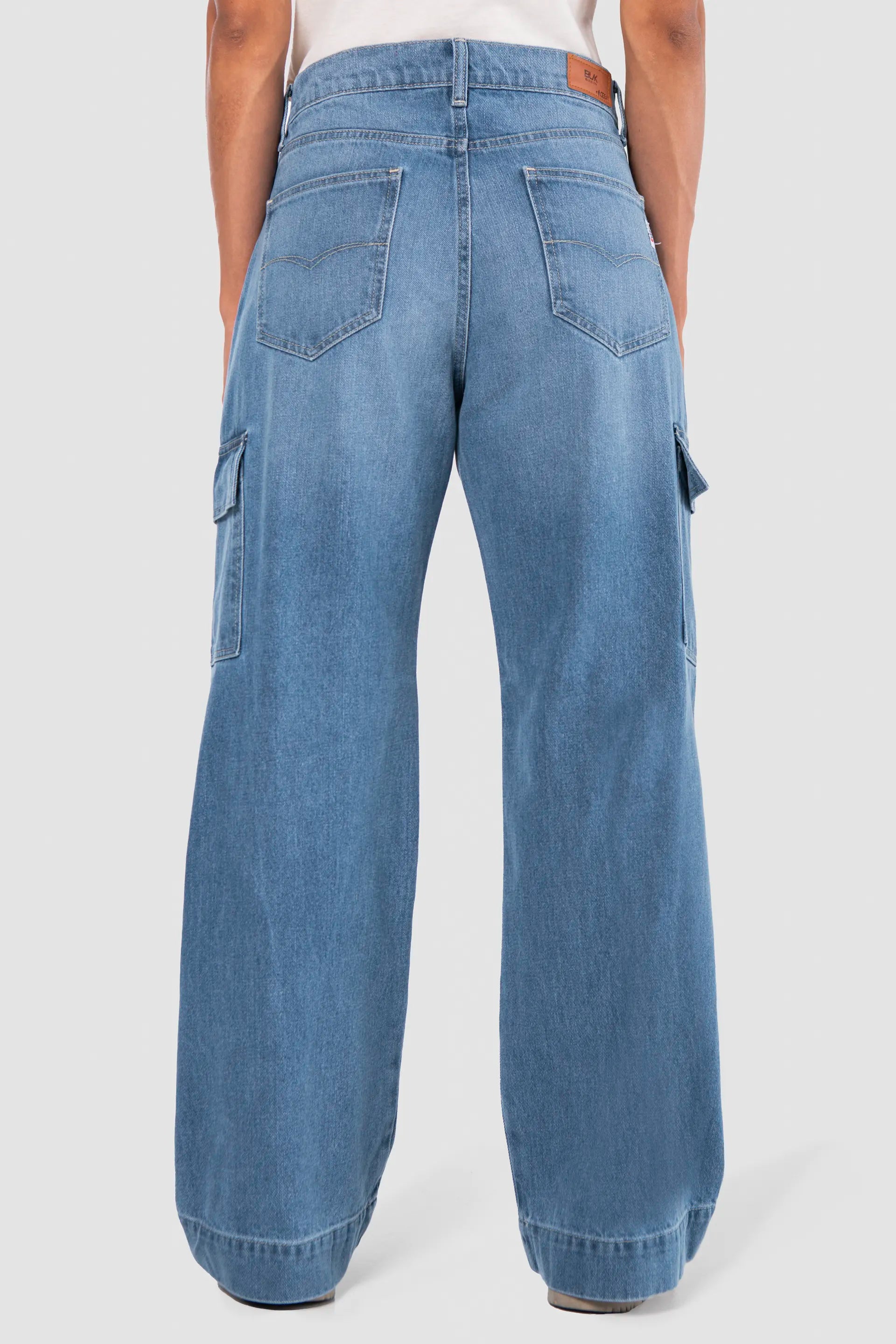 Por otro lado, estos Jeans Relaxed Azul Claro para Mujer - Cintura Alta destacan por sus bolsas tipo cargo, un detalle funcional que añade carácter al diseño.
