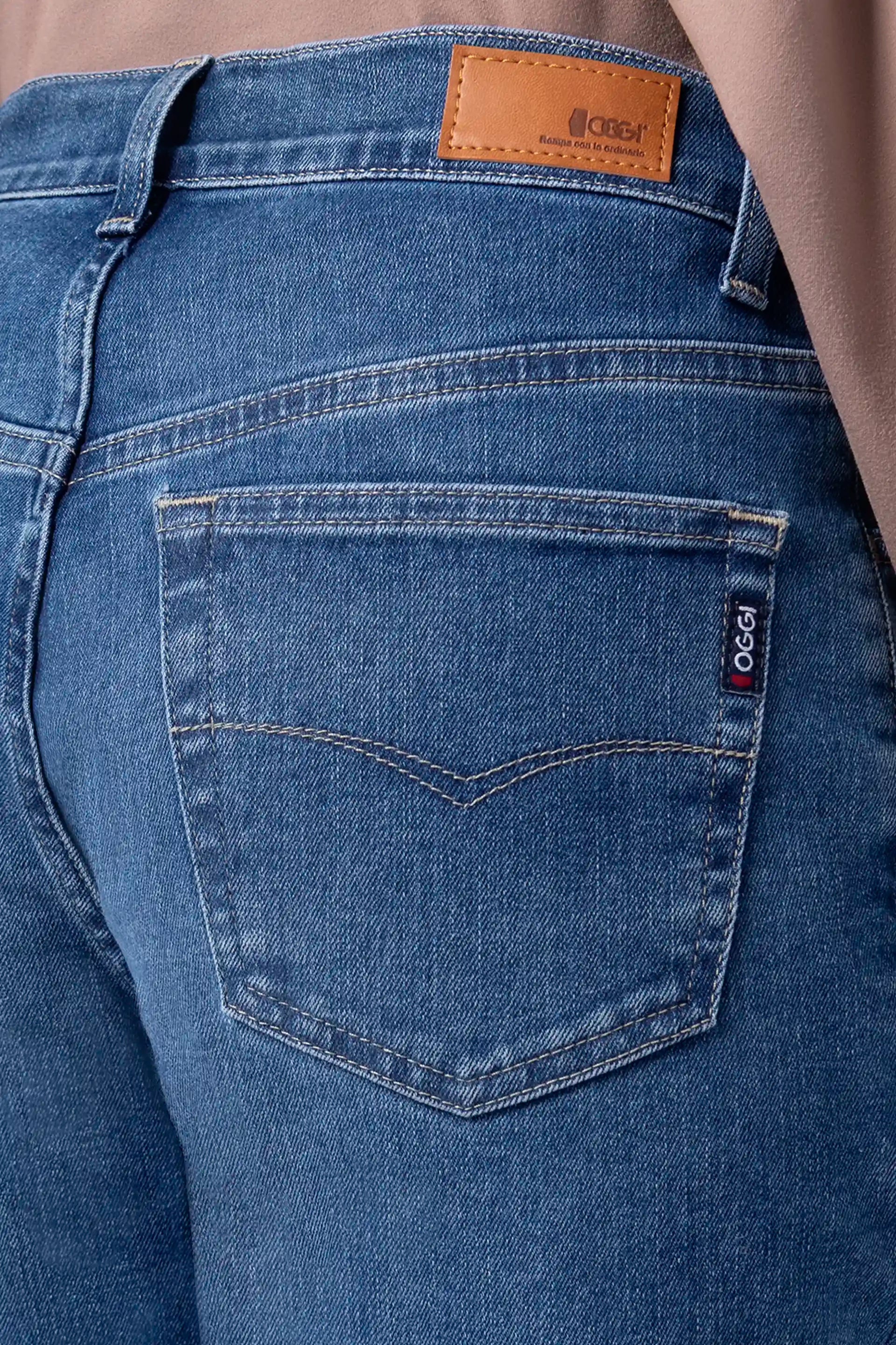 Además, estos jeans están confeccionados en mezclilla stretch, con 77% algodón, 22% poliéster y 1% elastano, lo que proporciona una textura suave, resistente y flexible. Asimismo, la cintura alta favorece la silueta, ofreciendo un ajuste cómodo y seguro durante todo el día. Por otro lado, su base relajada y valenciana recta aportan una caída fluida que estiliza la figura de manera natural.