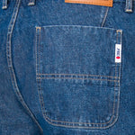 Mezclilla Rígida, hilos al mismo tono de la tela y etiqueta pretina sintética.