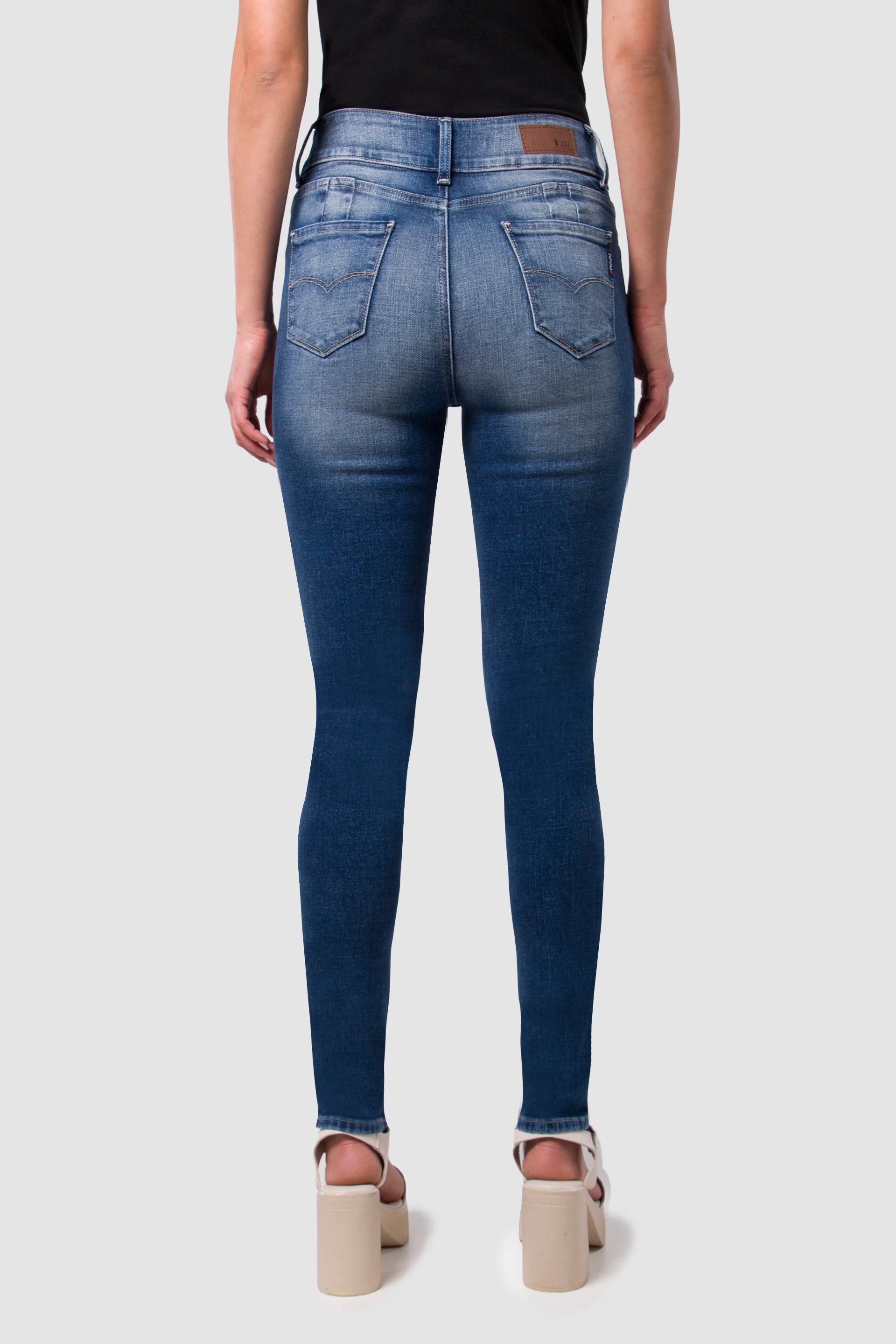 Los Jeans Súper Skinny Azul para Mujer - Katia son una prenda pensada para quienes buscan un ajuste definido y un estilo actual. Su tono azul aporta un look versátil que, además, combina fácilmente con blusas, tops o playeras. Por eso, son ideales para crear outfits casuales con un toque moderno.