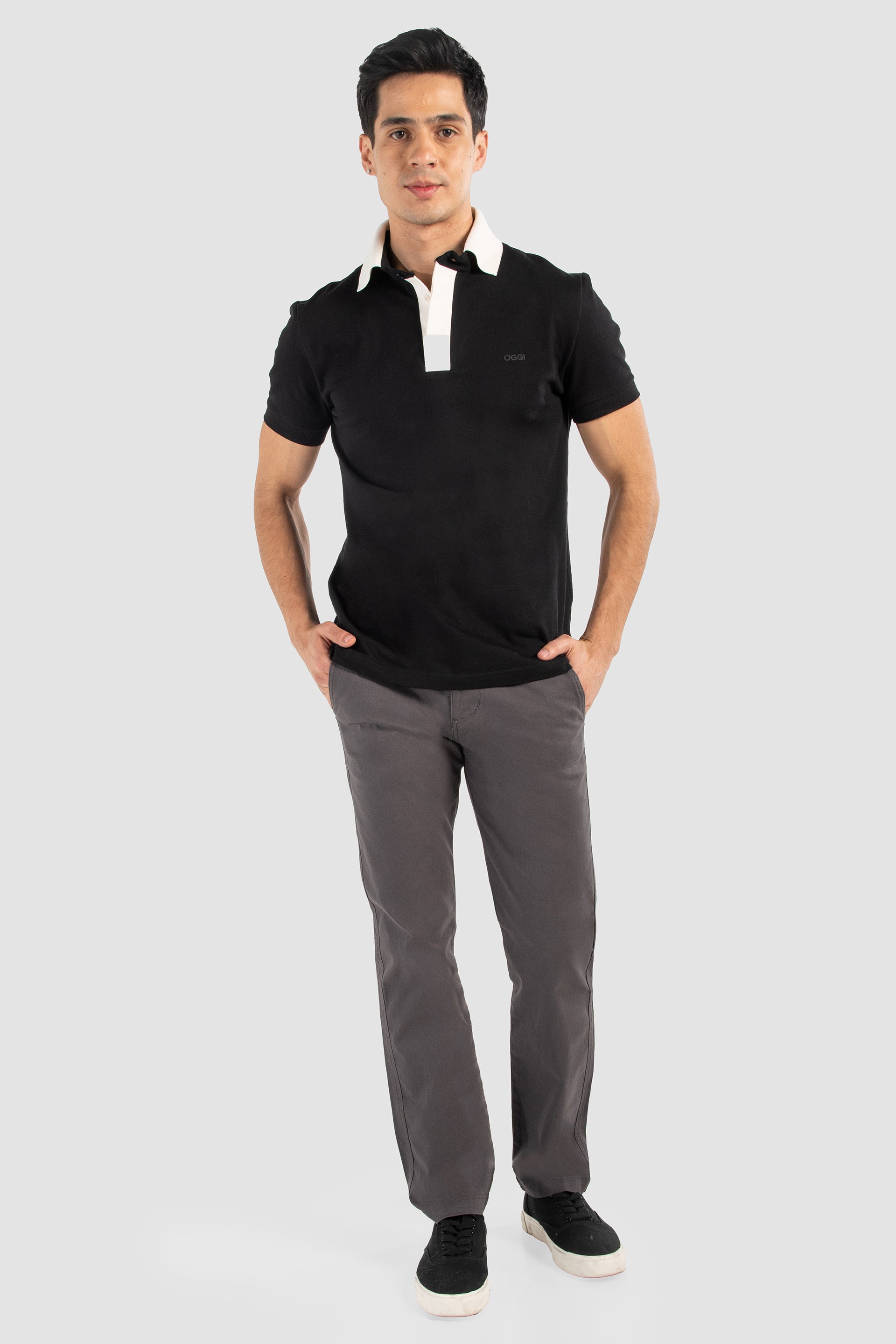 El color gris combina con todo: usa sneaker blanco, camisa estampada o una t-shirt básica, siempre vas a verte como alguien que cuida cada detalle. Además, los bolsillos frontales diagonales y los traseros estilo ojal, junto con remaches metálicos y etiqueta sintética refuerzan el sello de calidad OGGI. Por eso, este pantalón no solo luce bien, también se siente bien.