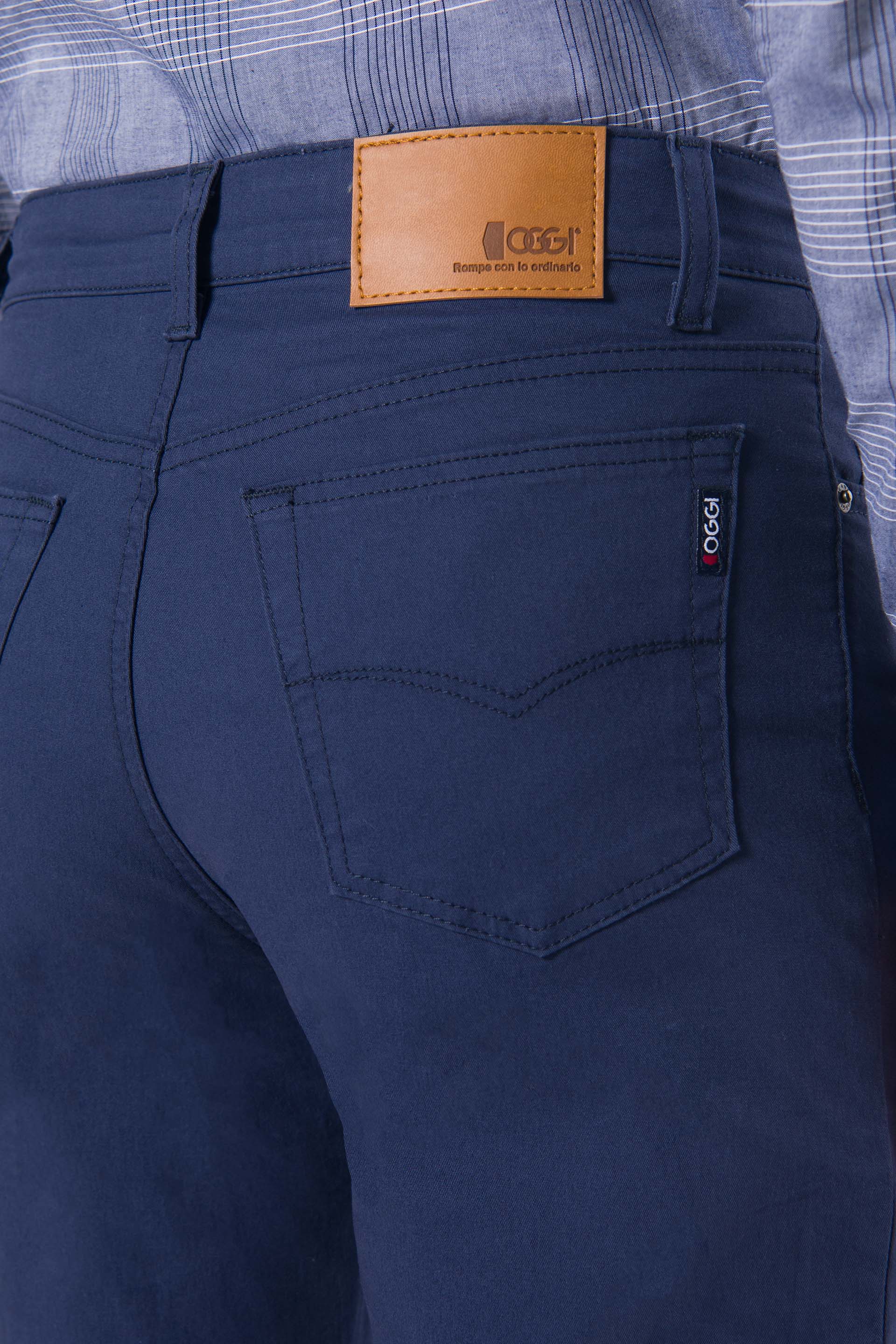 También destacan los detalles que le dan carácter: remaches metálicos en los bolsillos delanteros, bordado trasero con el sello OGGI y etiqueta sintética en la pretina. Esos elementos sutiles pero poderosos elevan tu look desde lo cotidiano hasta lo extraordinario. Gracias al tono azul marino, combinas fácil con camisetas claras, sneakers o botas, adaptándote a cualquier plan con confianza.
