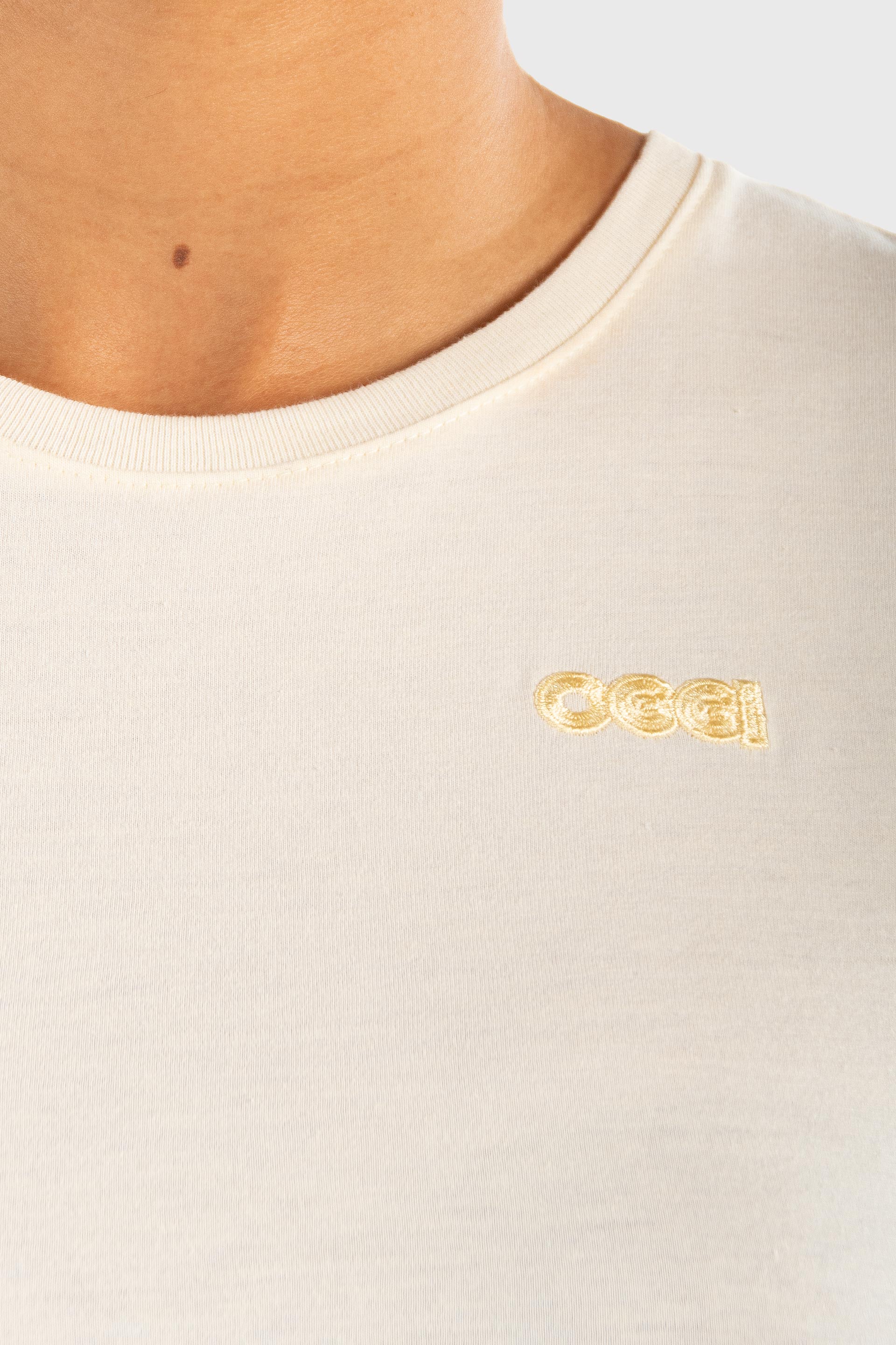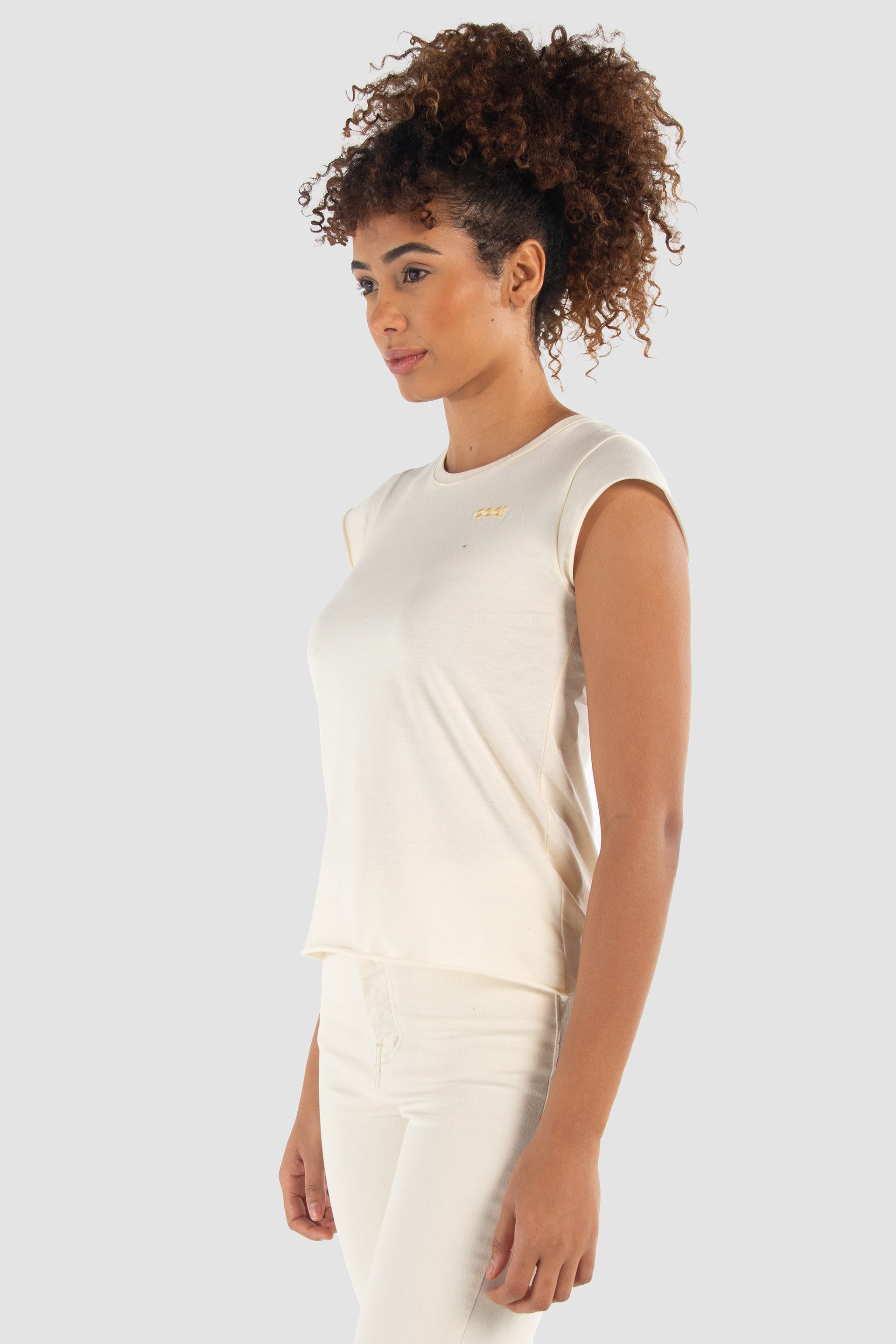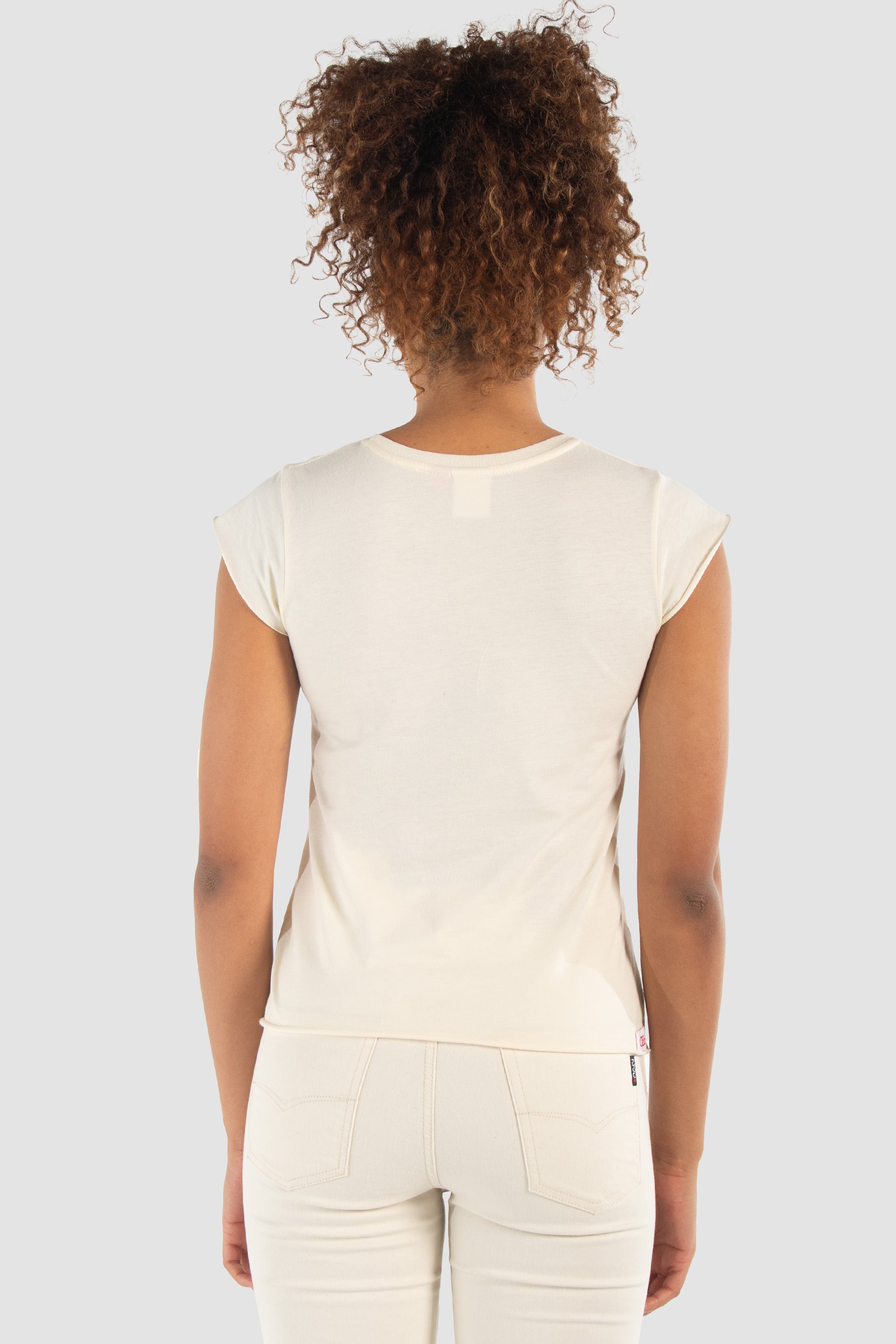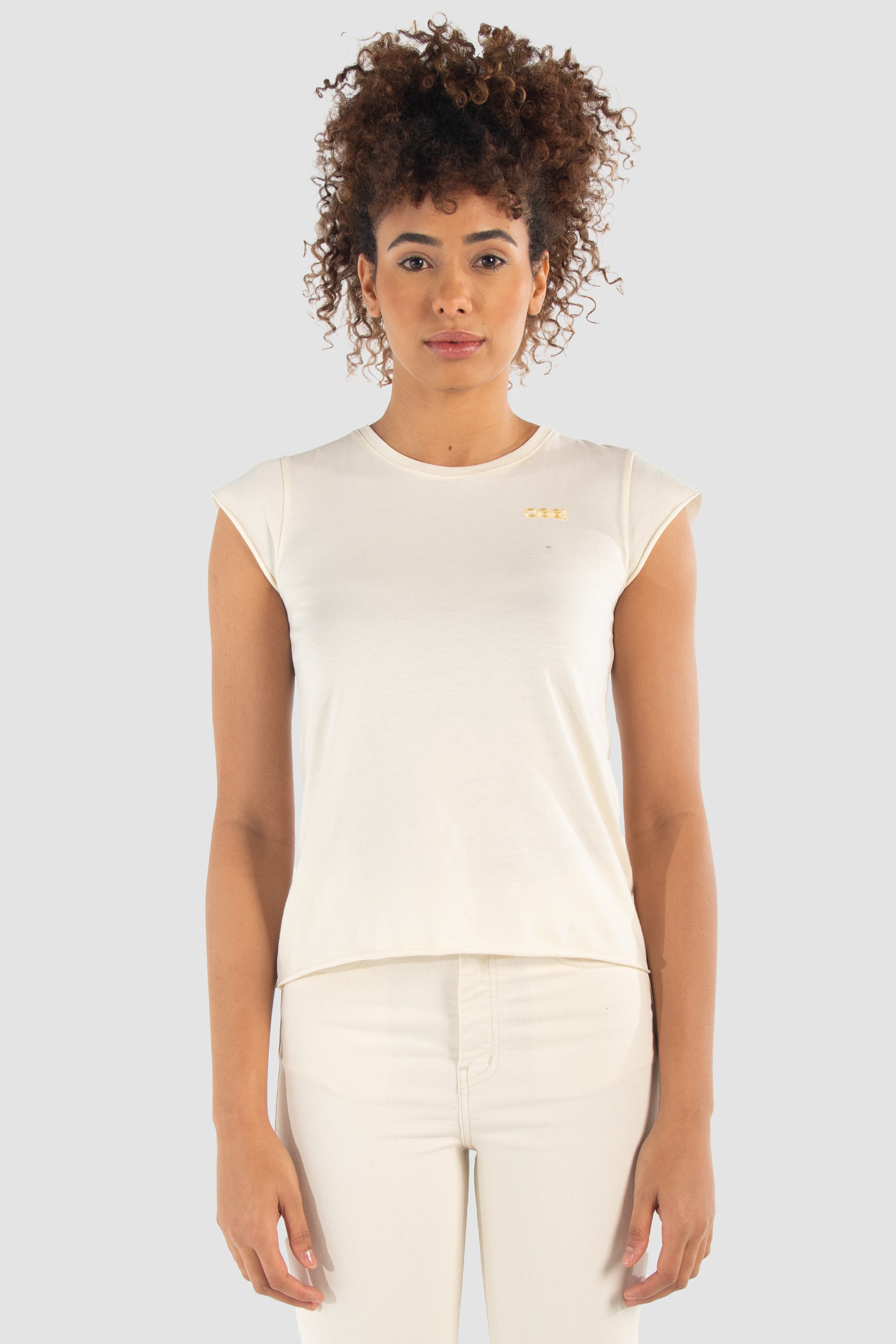Playera Beige Slim para Mujer - Rib Manga Corta