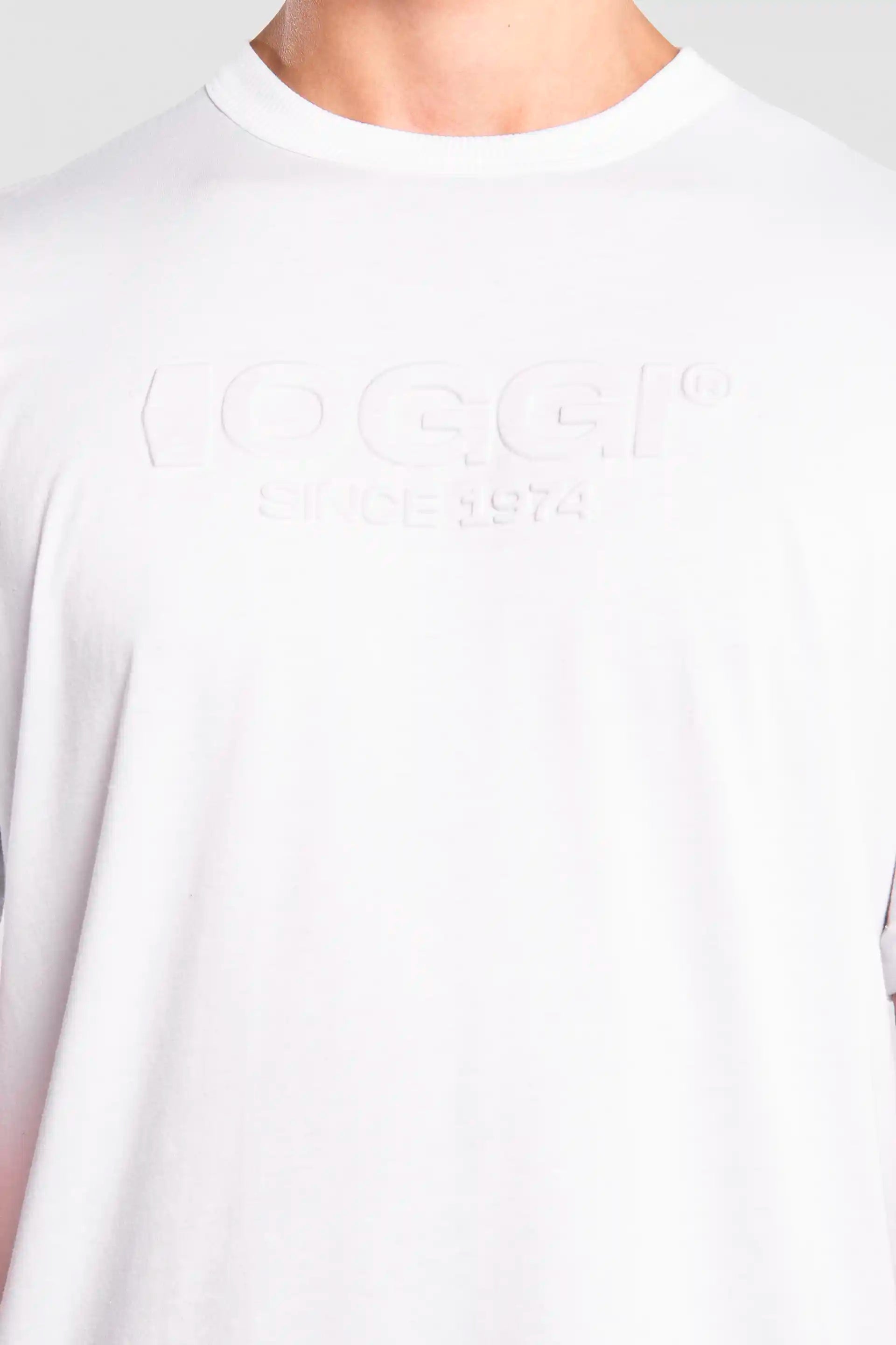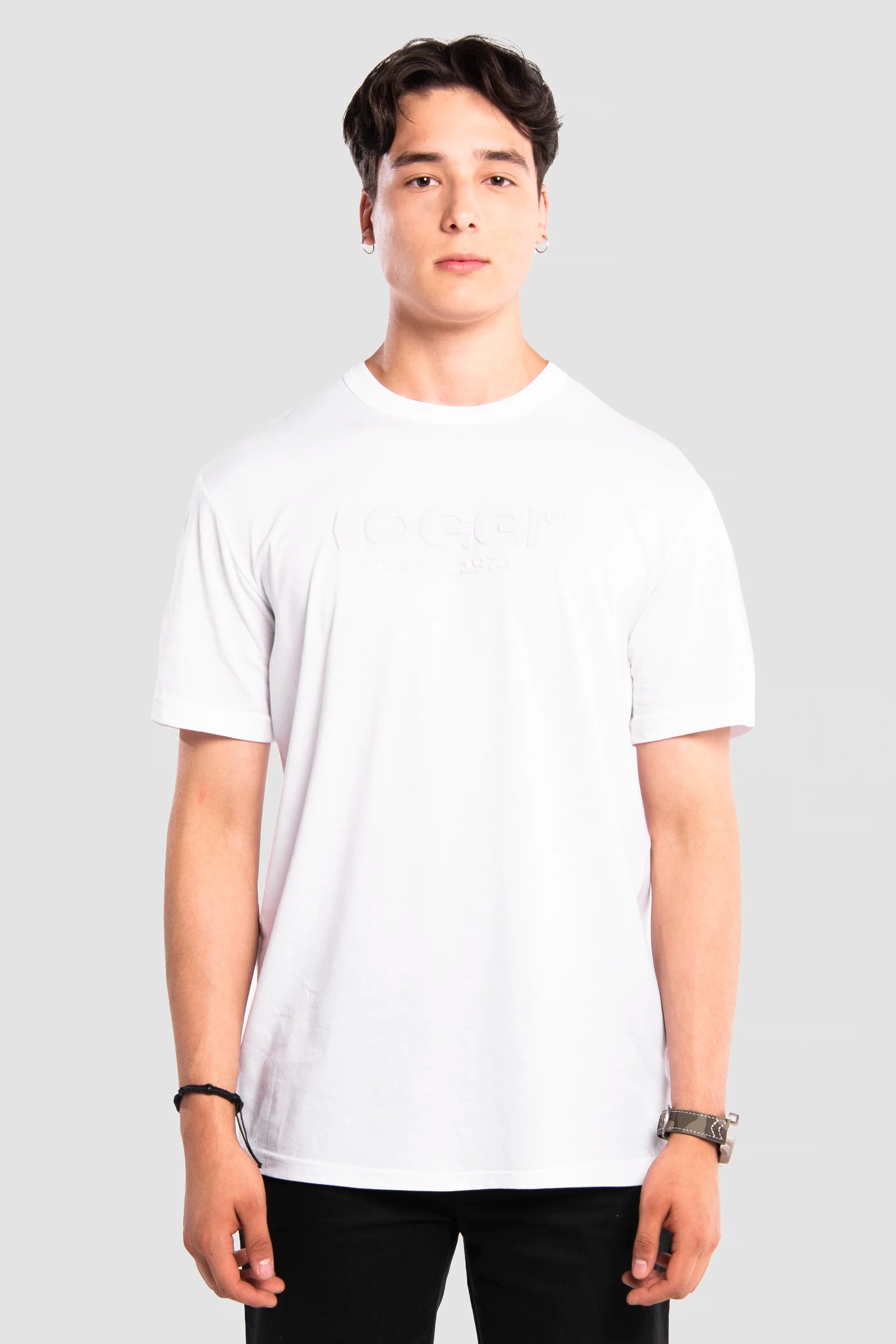 Playera manga corta Regular Fit cuello redondo, estampado frontal en relieve.
