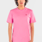 Playera manga corta Slim Fit cuello redondo, bordado en parte superior izquierdo y rib en contraste.