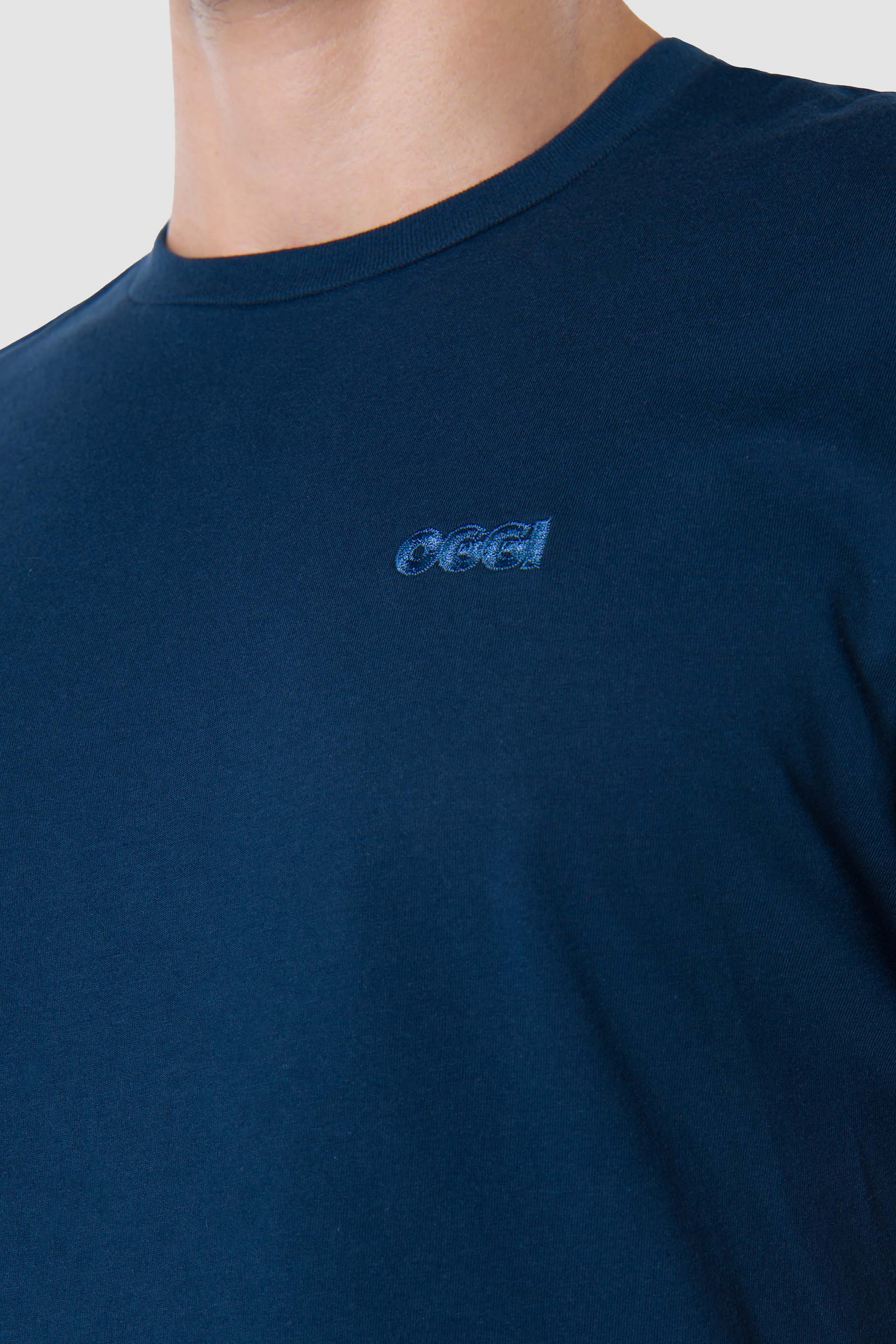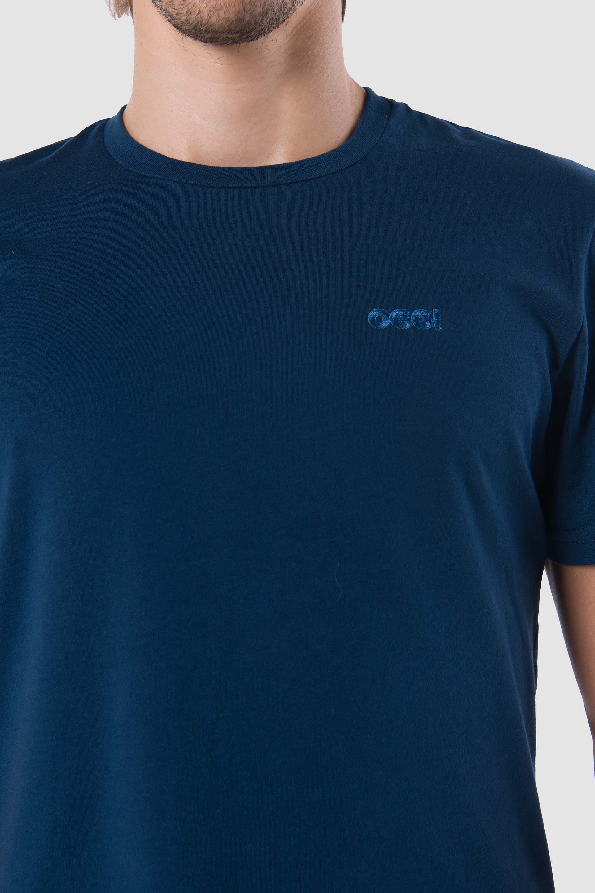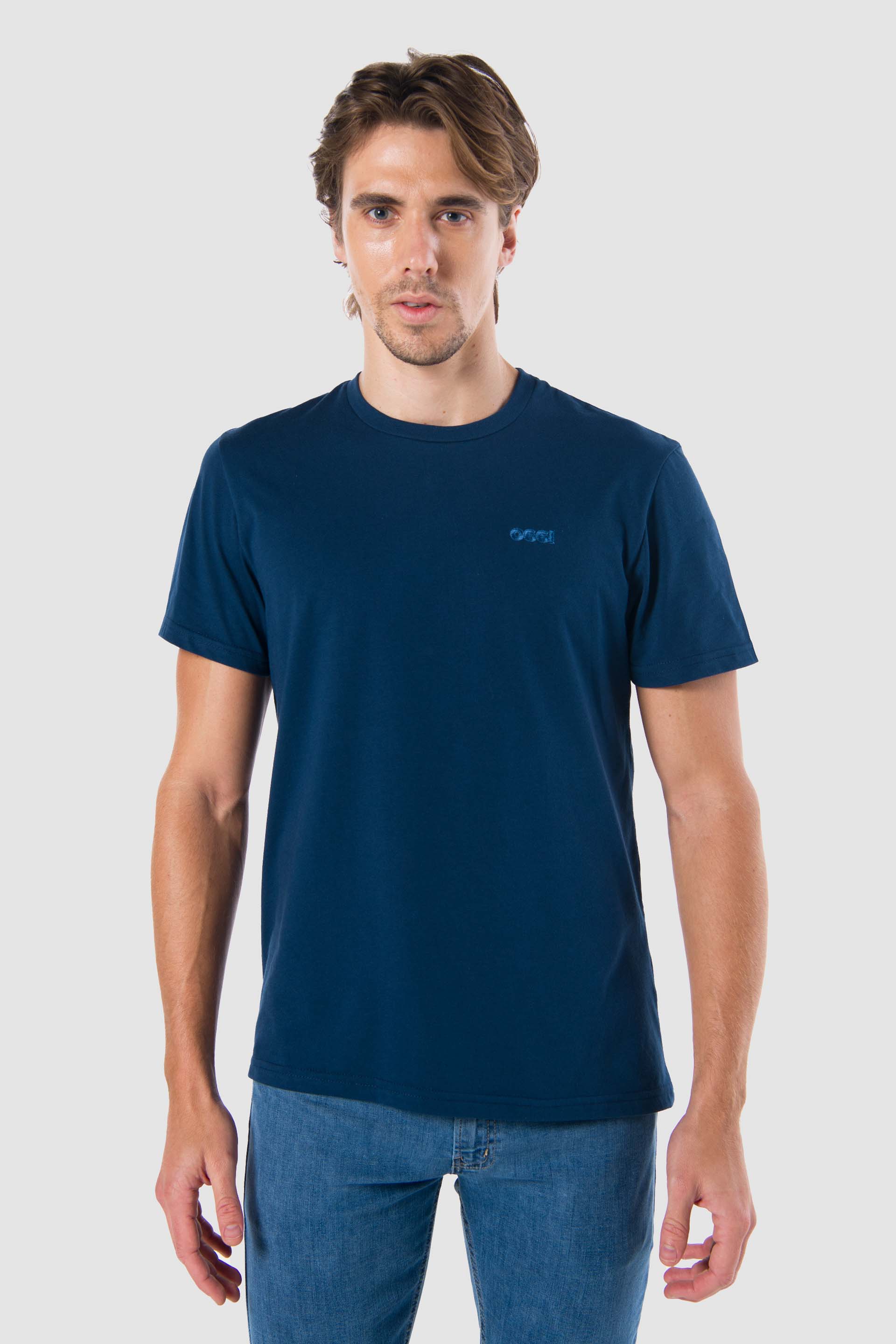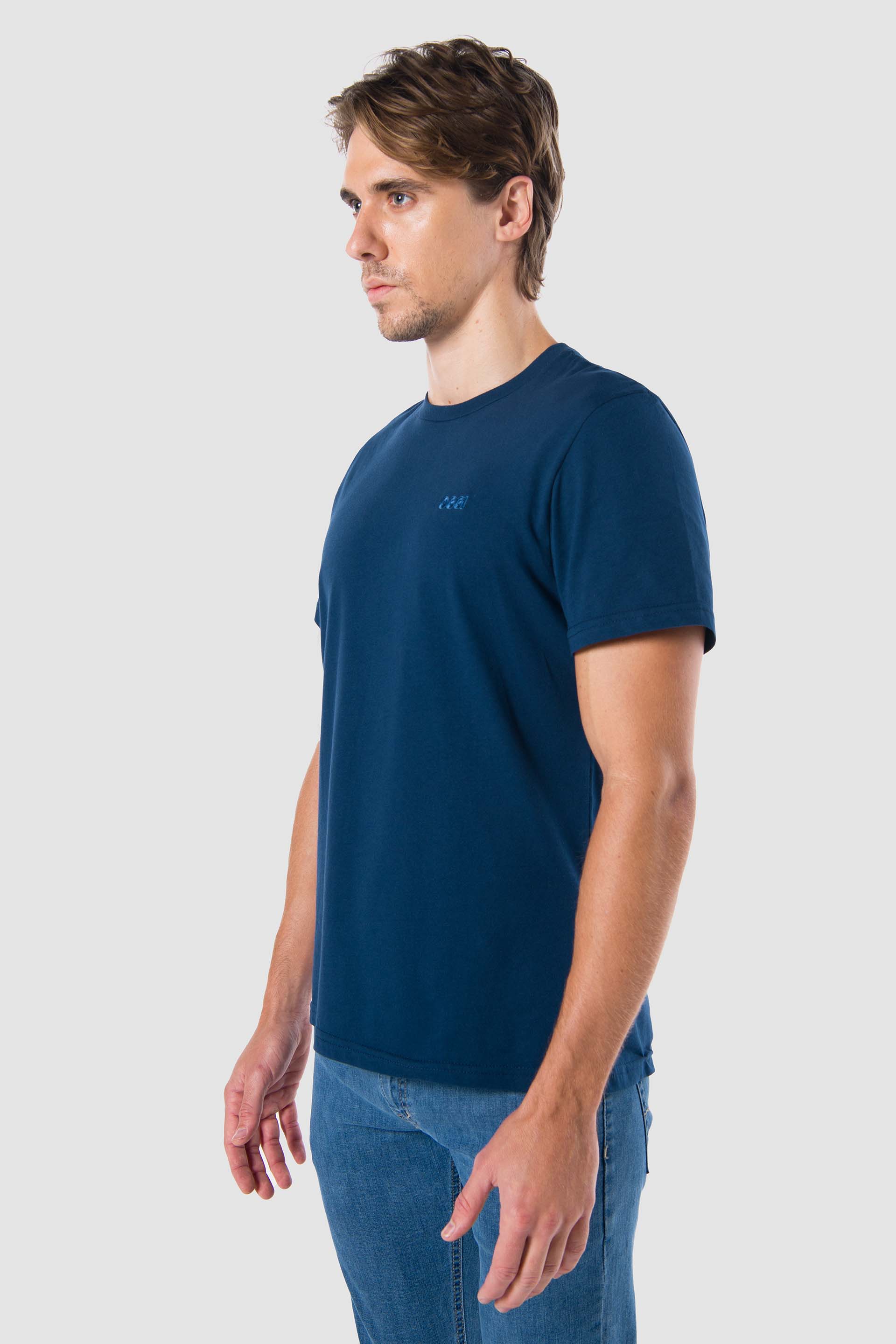 Playera básica manga corta cuello redondo Fit Regular, con bordado en el frente izquierdo.
