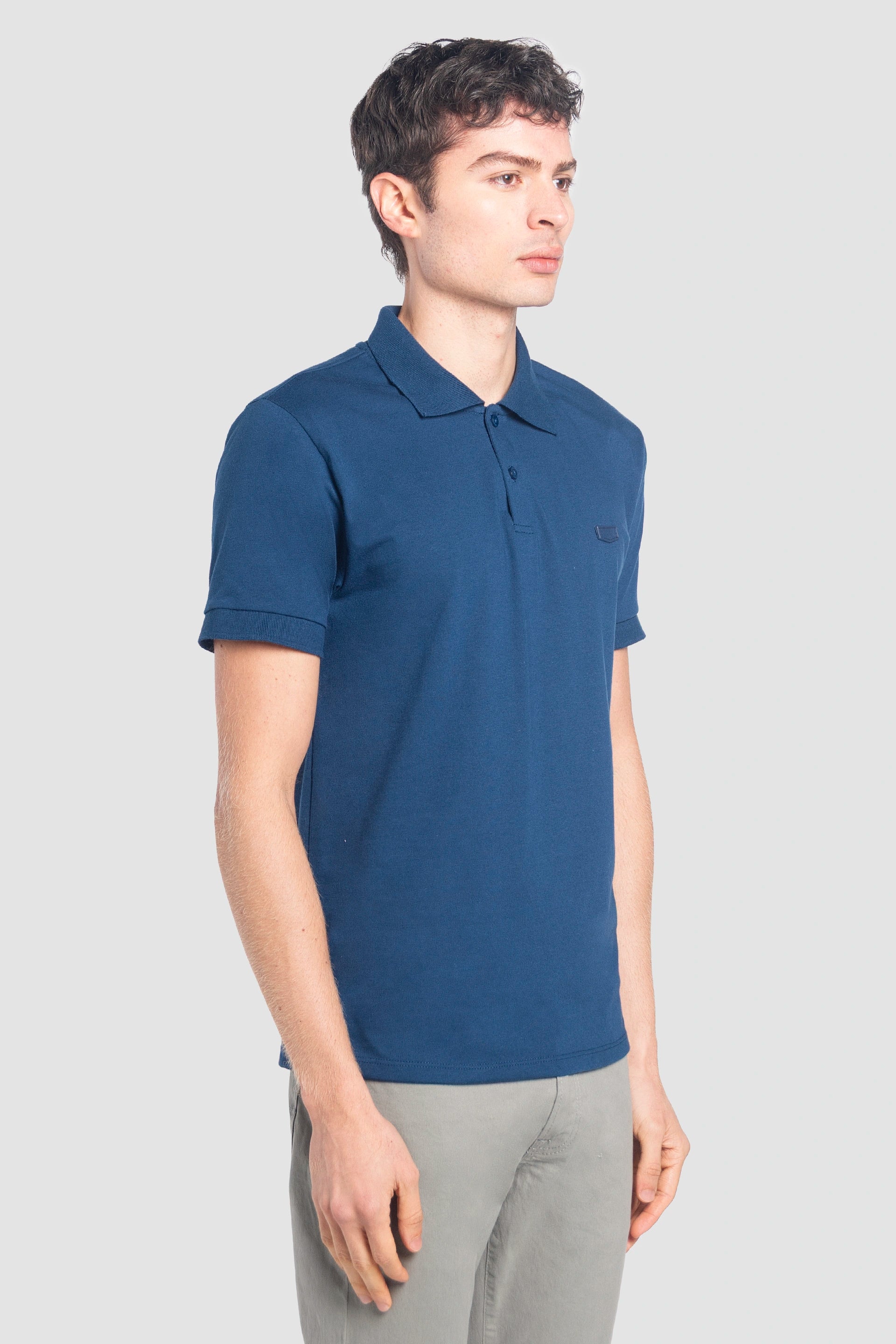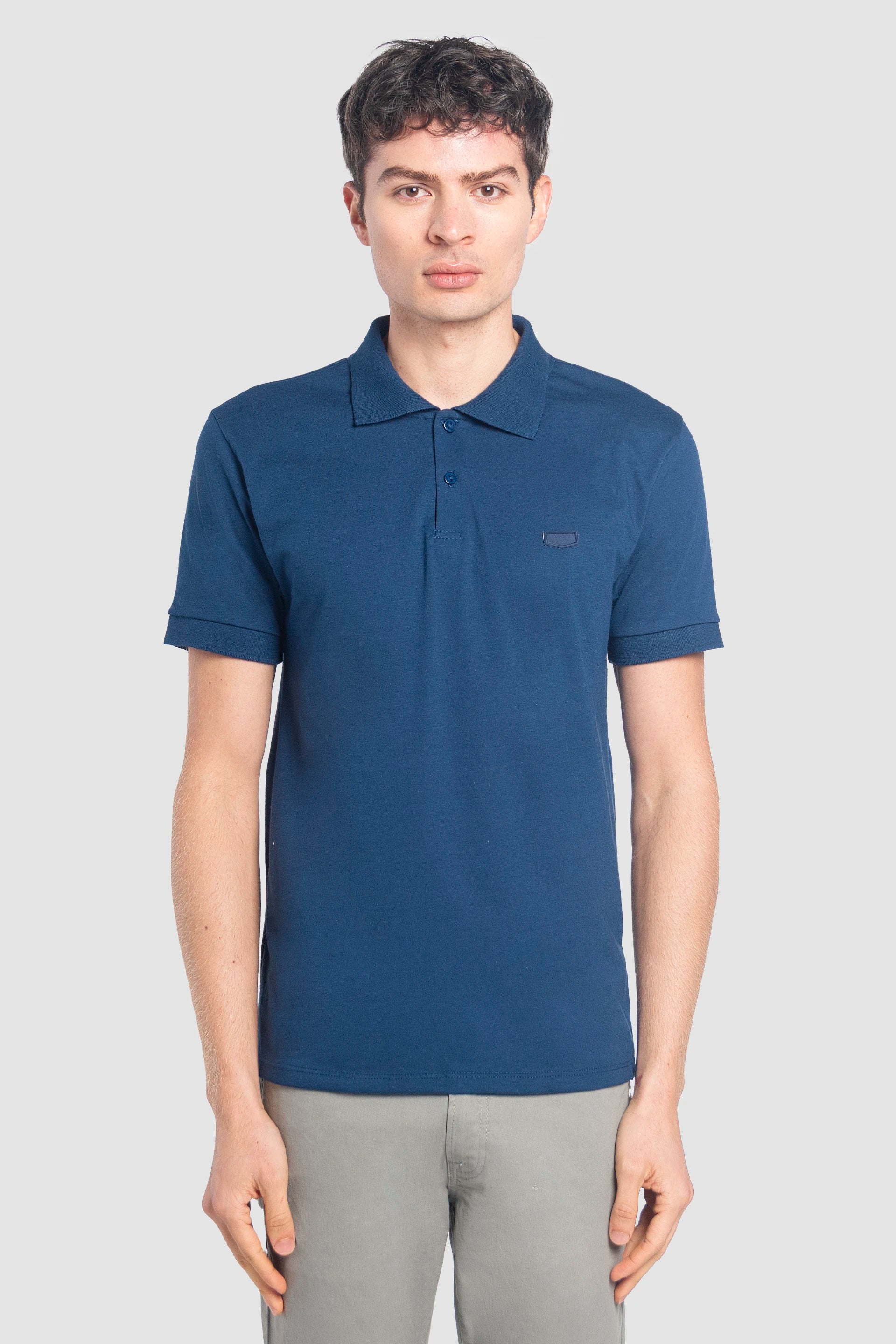 Playera tipo polo manga corta Regular Fit cuello clásico y pequeño bordado de goma en parte superior izquierda.