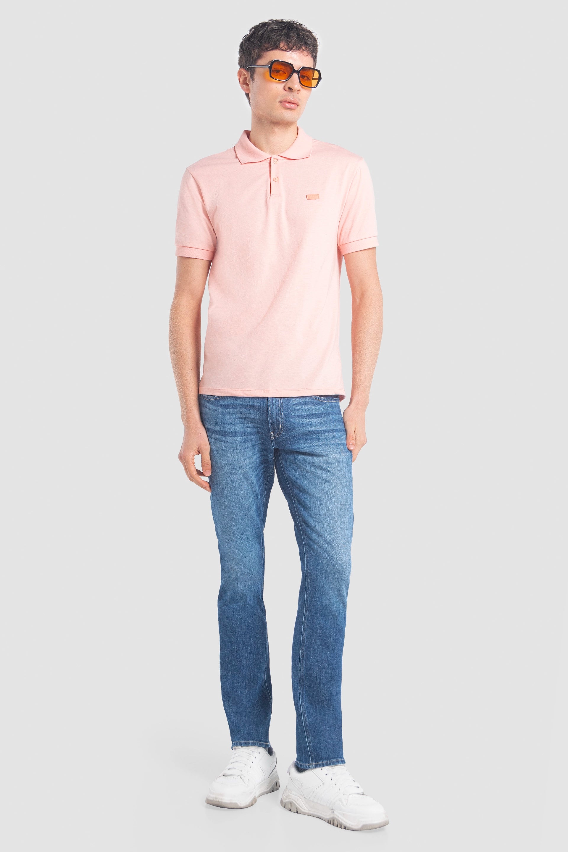 Playera tipo polo manga corta Regular Fit cuello clásico y pequeño bordado de goma en parte superior izquierda.